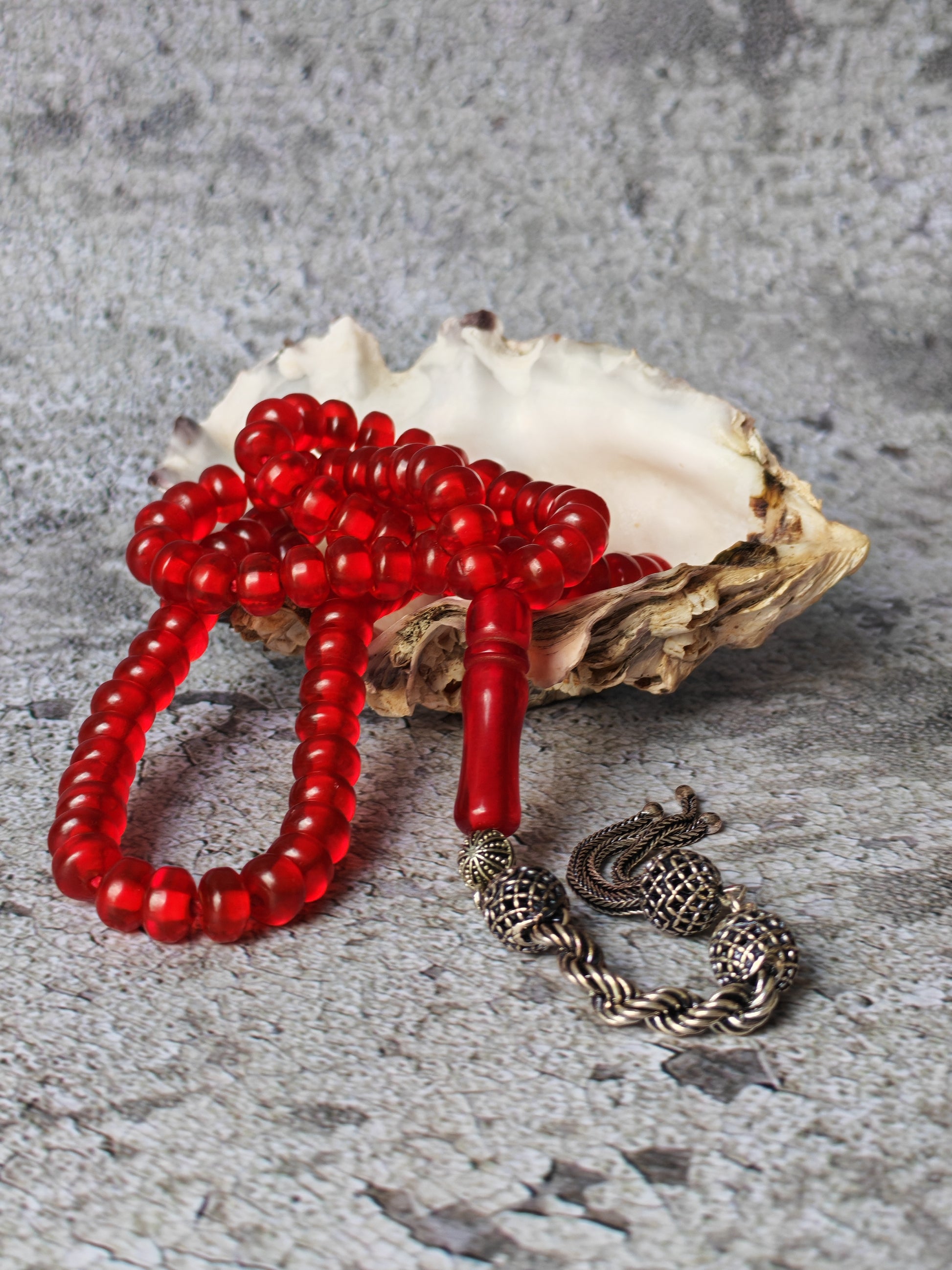 Crafted by Najaf, this tasbih reflects traditional craftsmanship paired with well-aged Bakelite material, showing a rich red tone that has matured beautifully over time. The rosary is completed with a silver tassel, adding a classic and elegant finish without overpowering the simplicity of the design.