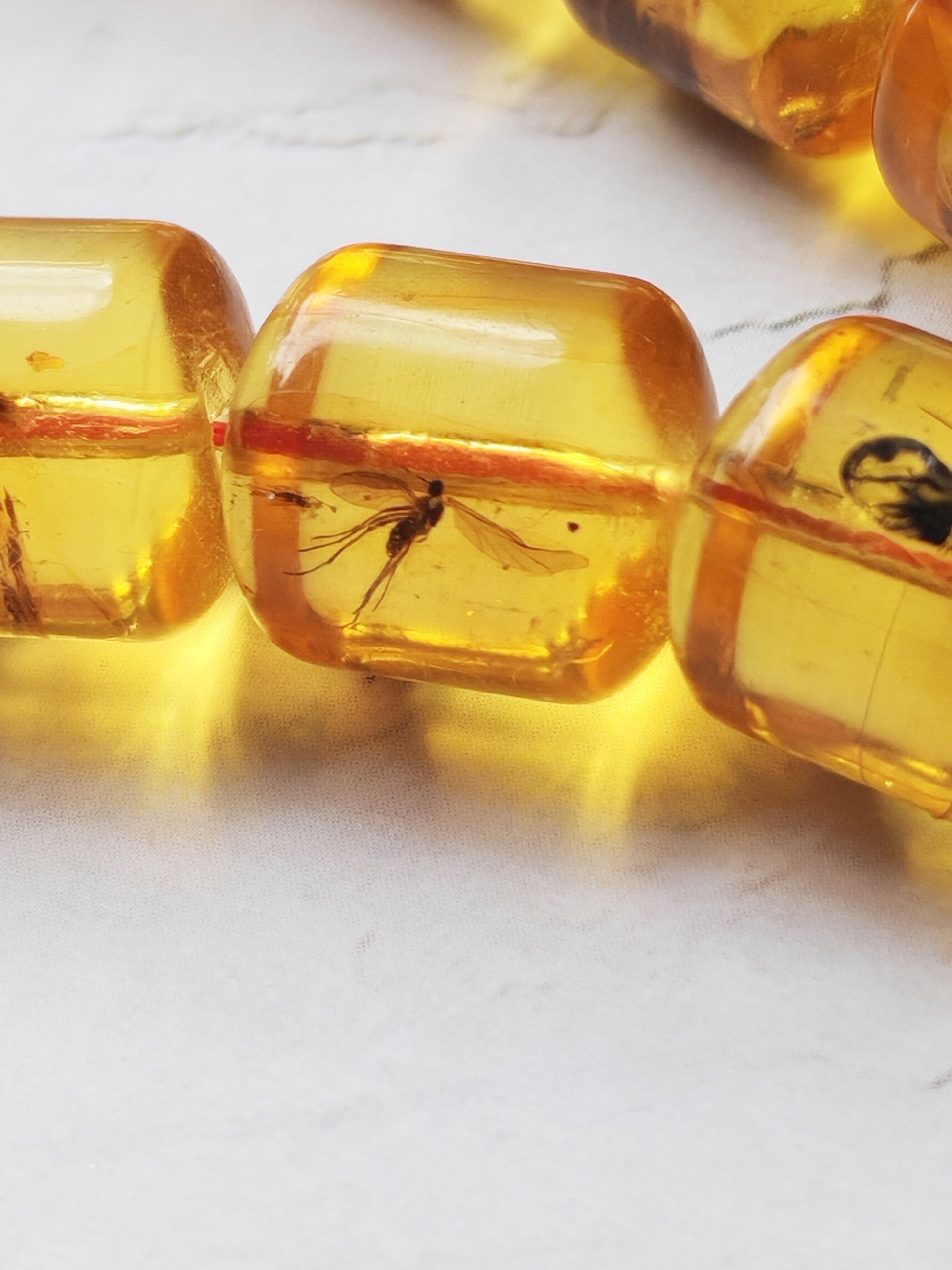A truly extraordinary and museum-level rarity—a full rosary carved from authentic Kaliningrad Baltic amber, featuring insect inclusions in every single bead and in the imam.