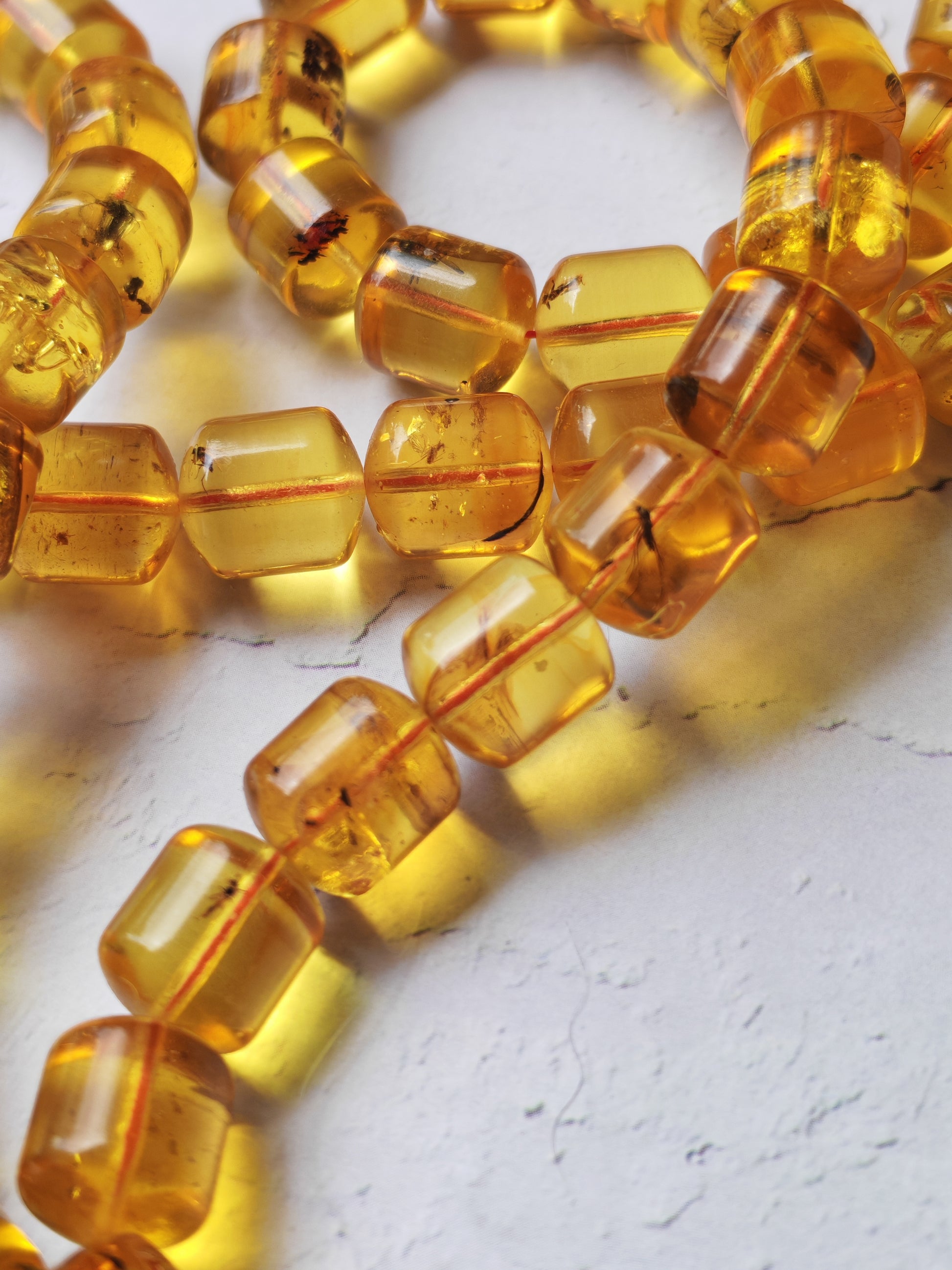 Kaliningrad Amber Rosary – 66 Barrel Beads | Citron Tones with Insect Inclusions