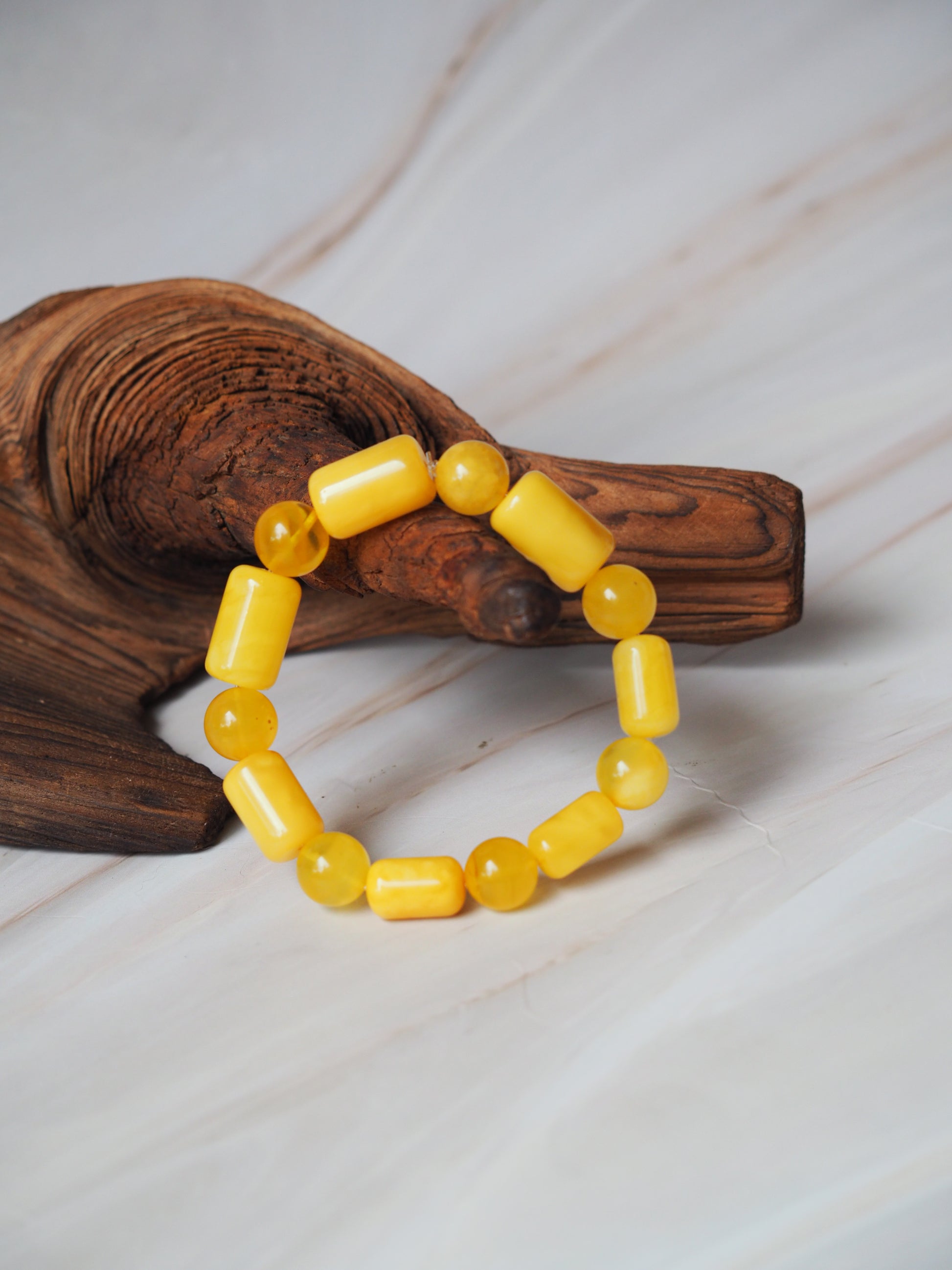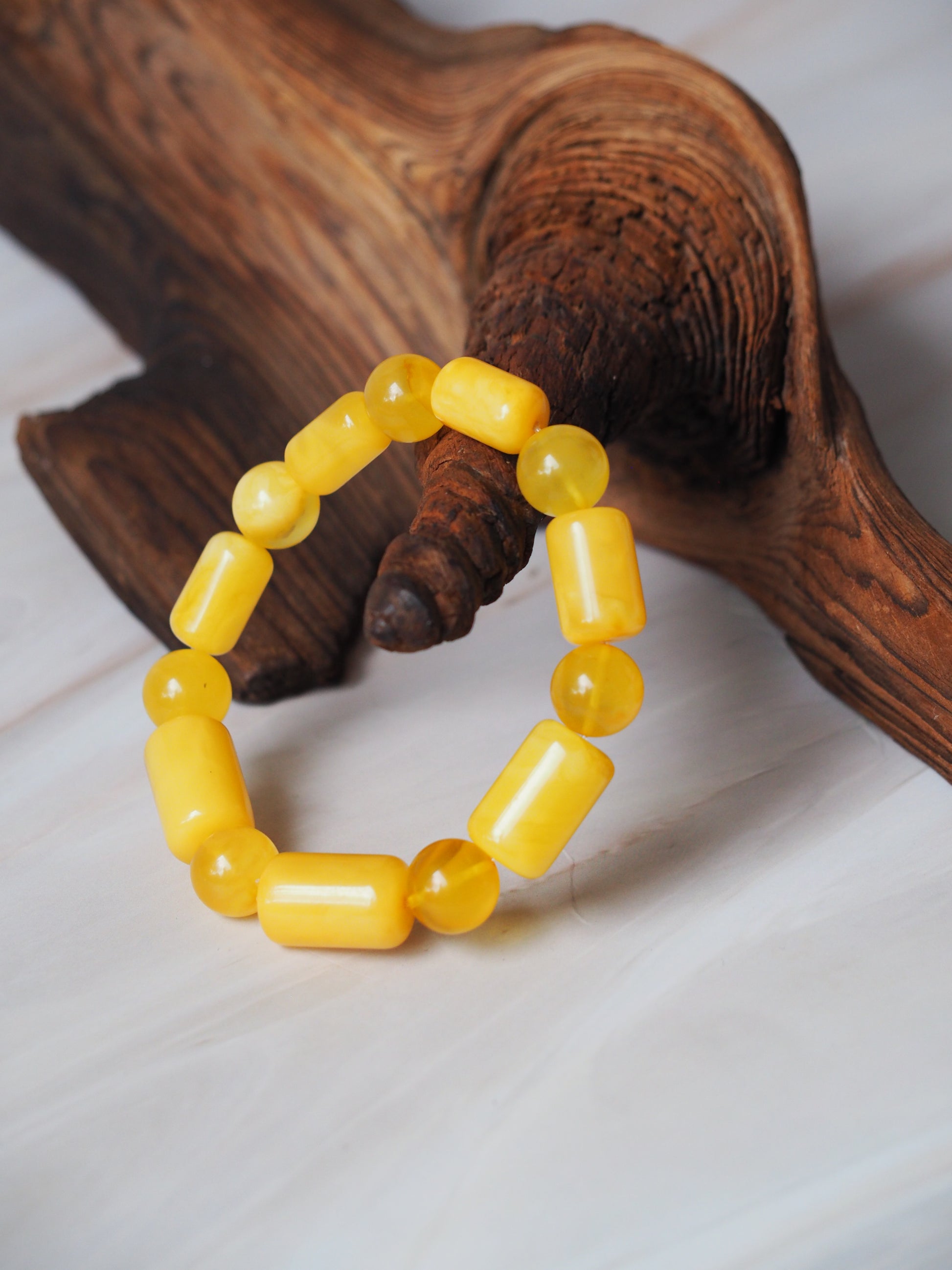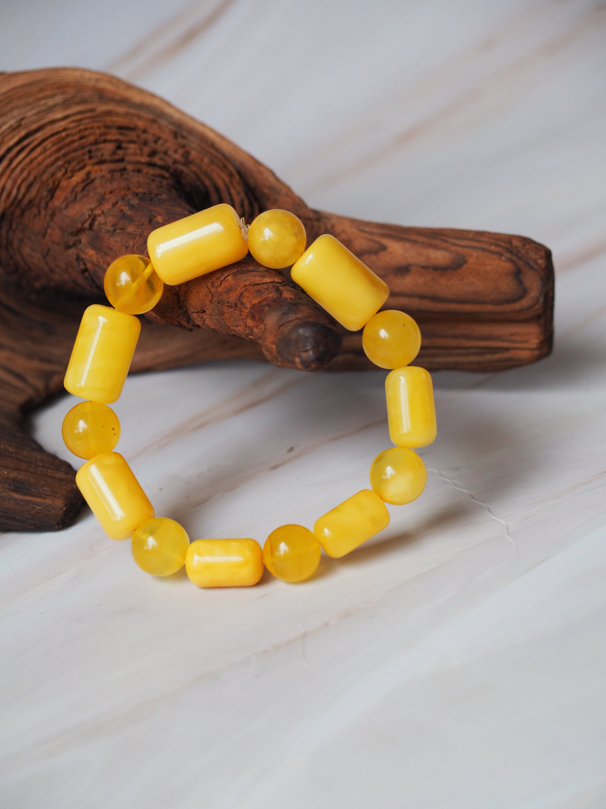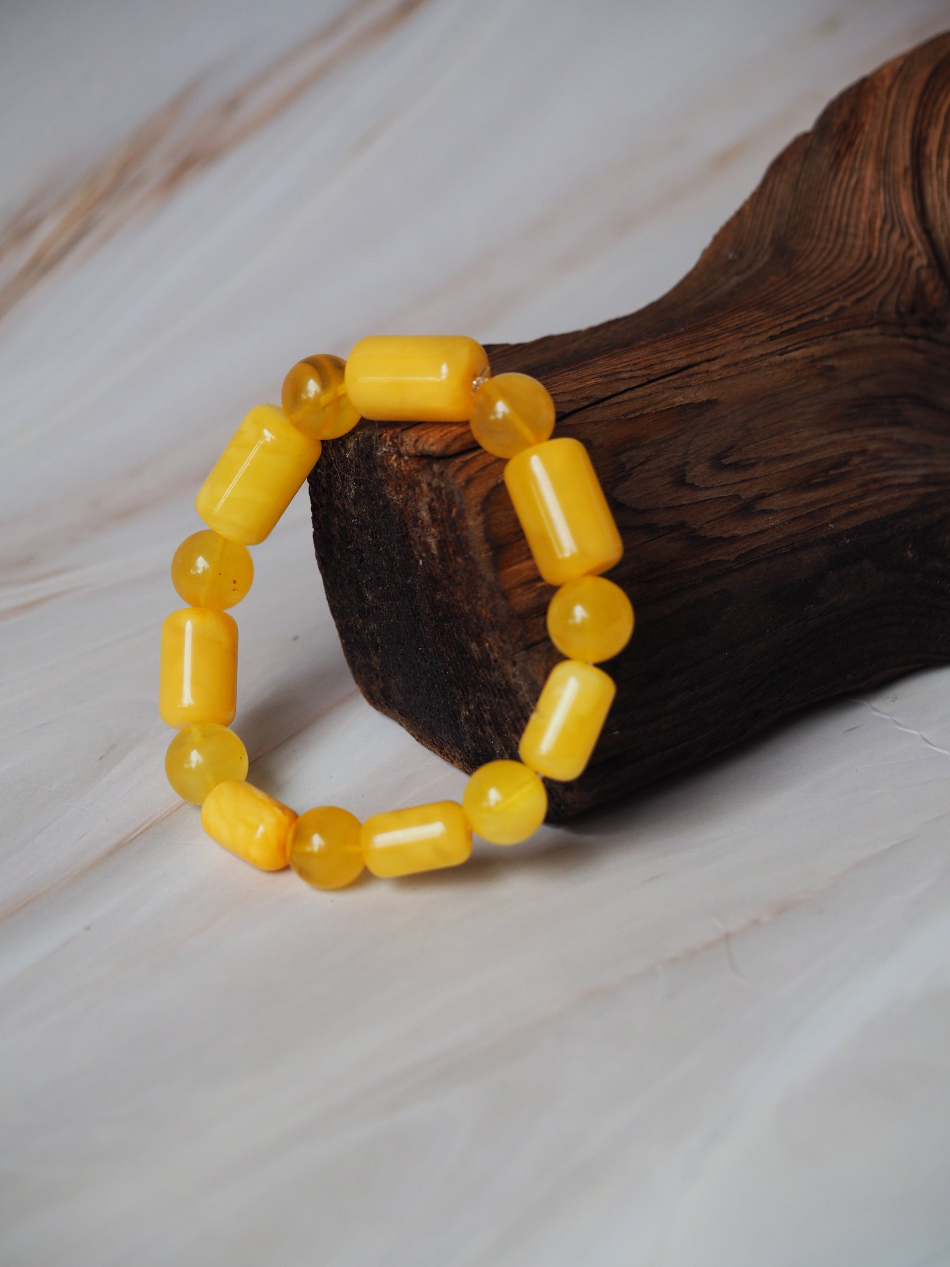 Natural Butterscotch Amber Cylinder and Round Beaded Bracelet
