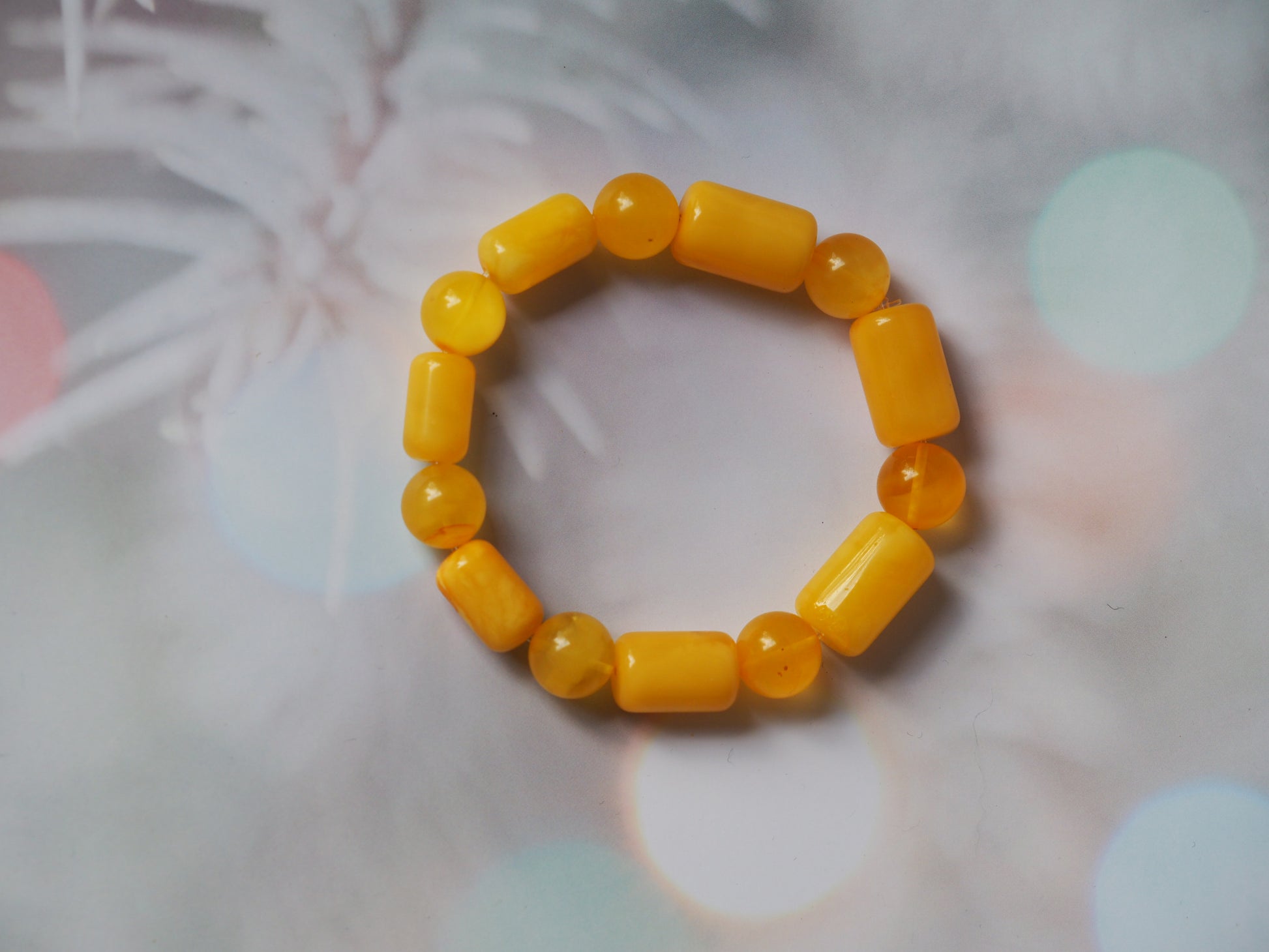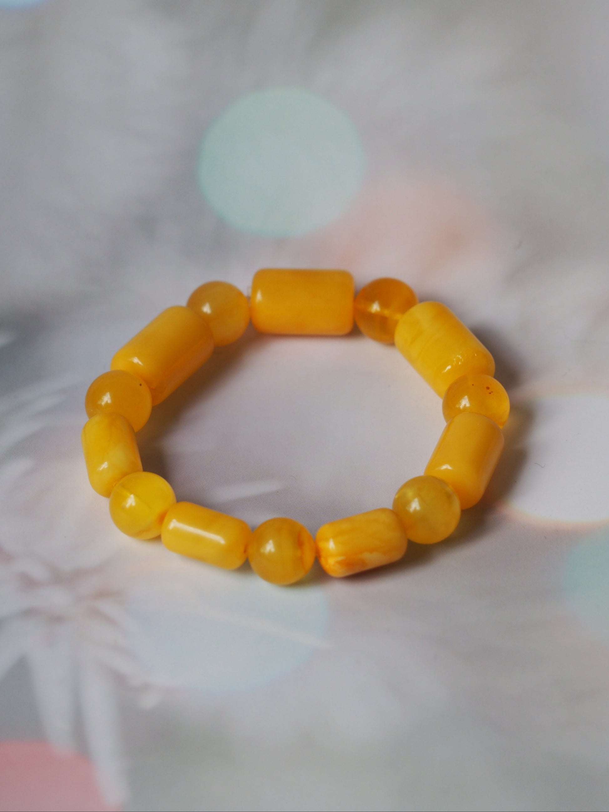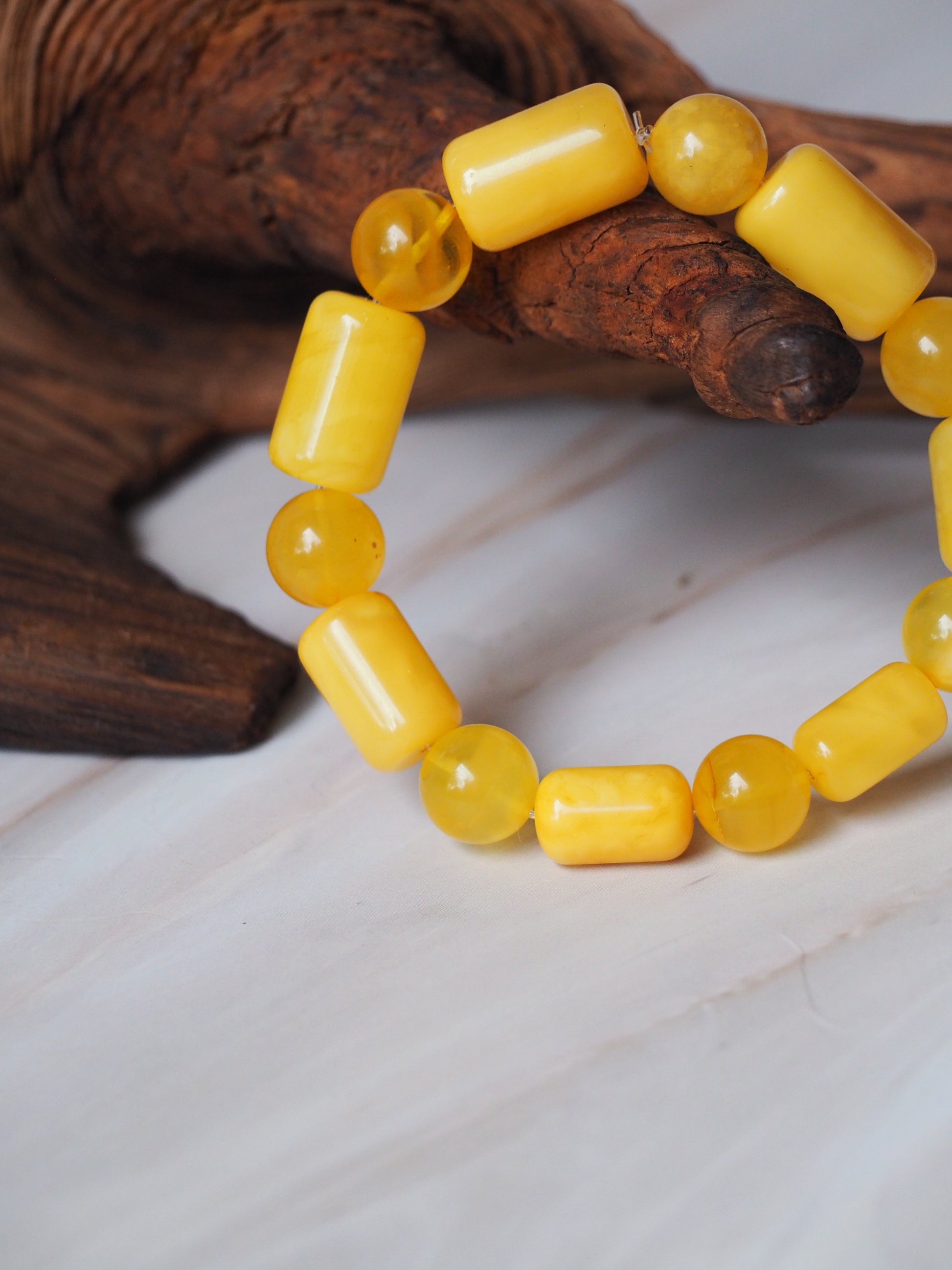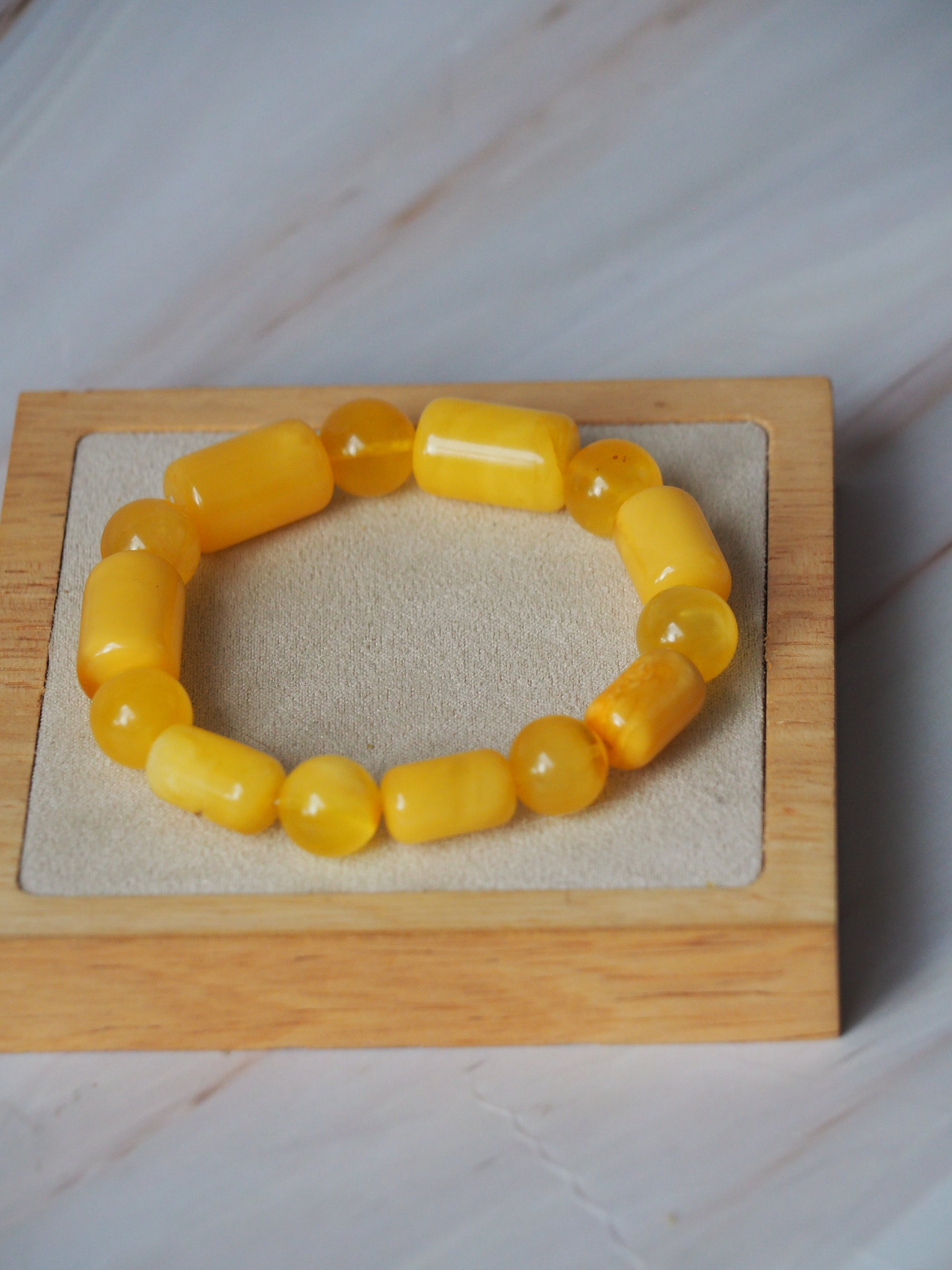Natural Butterscotch Amber Cylinder and Round Beaded Bracelet