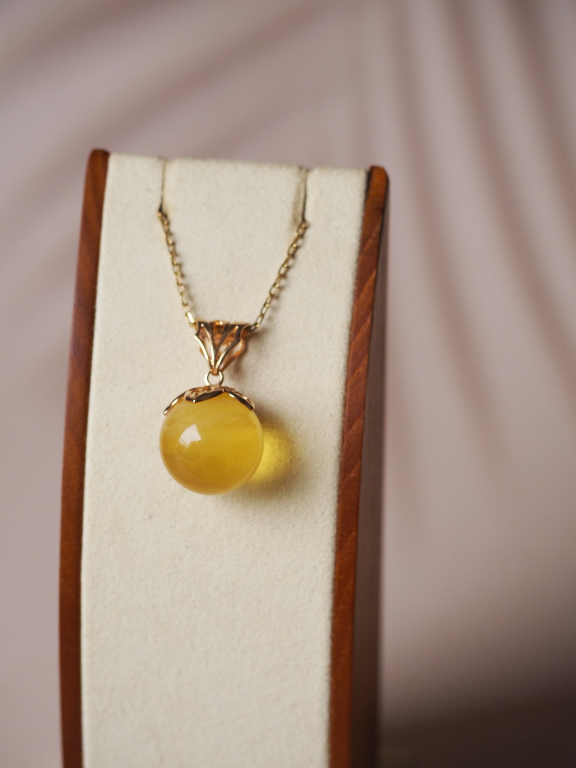 Natural Butterscotch Cloudy Amber Ball Pendant 19,5mm