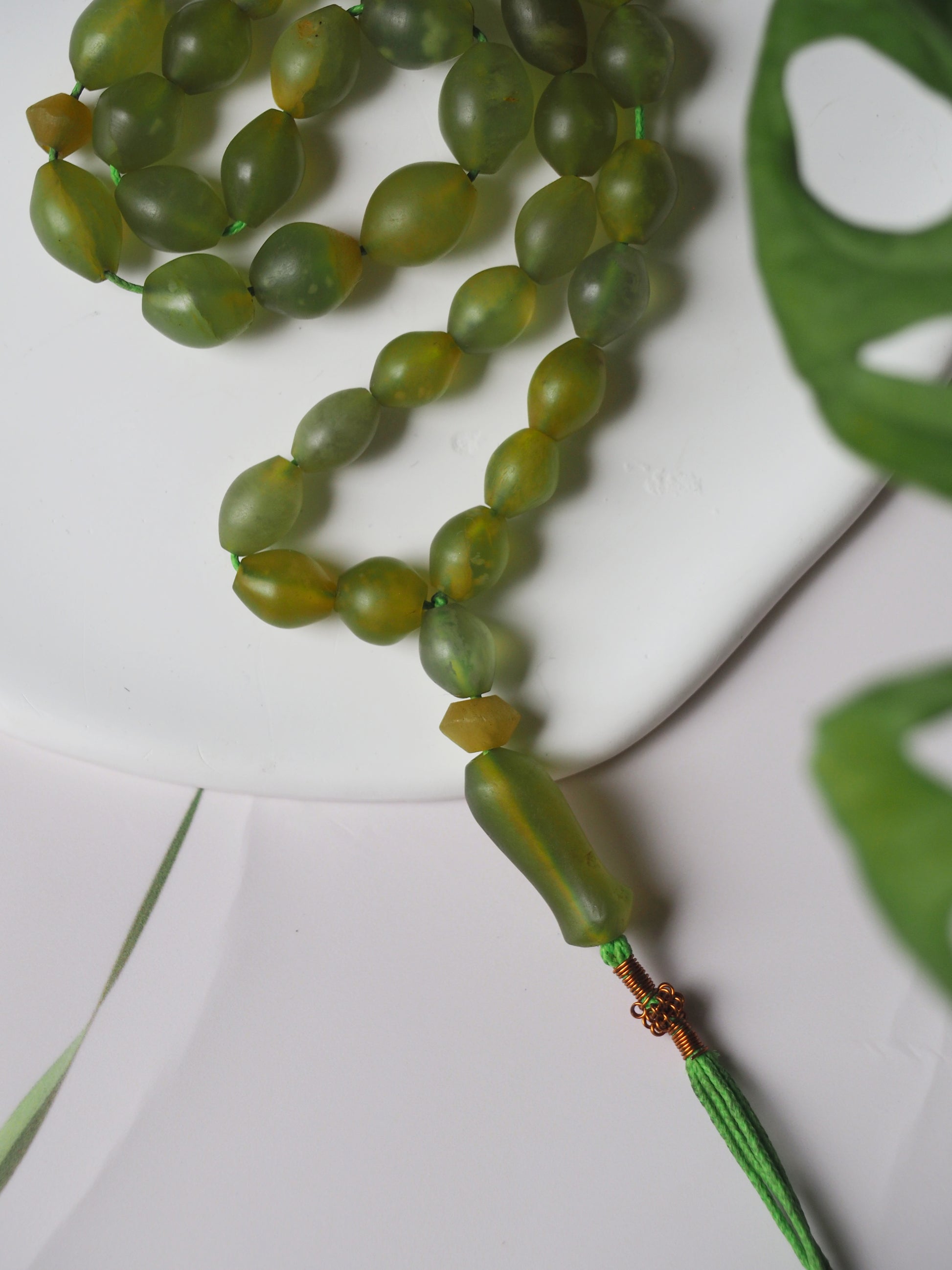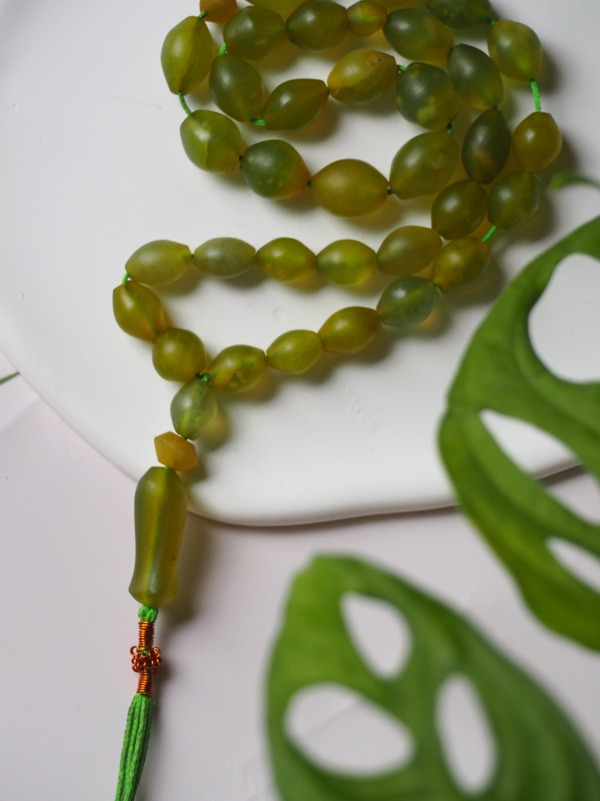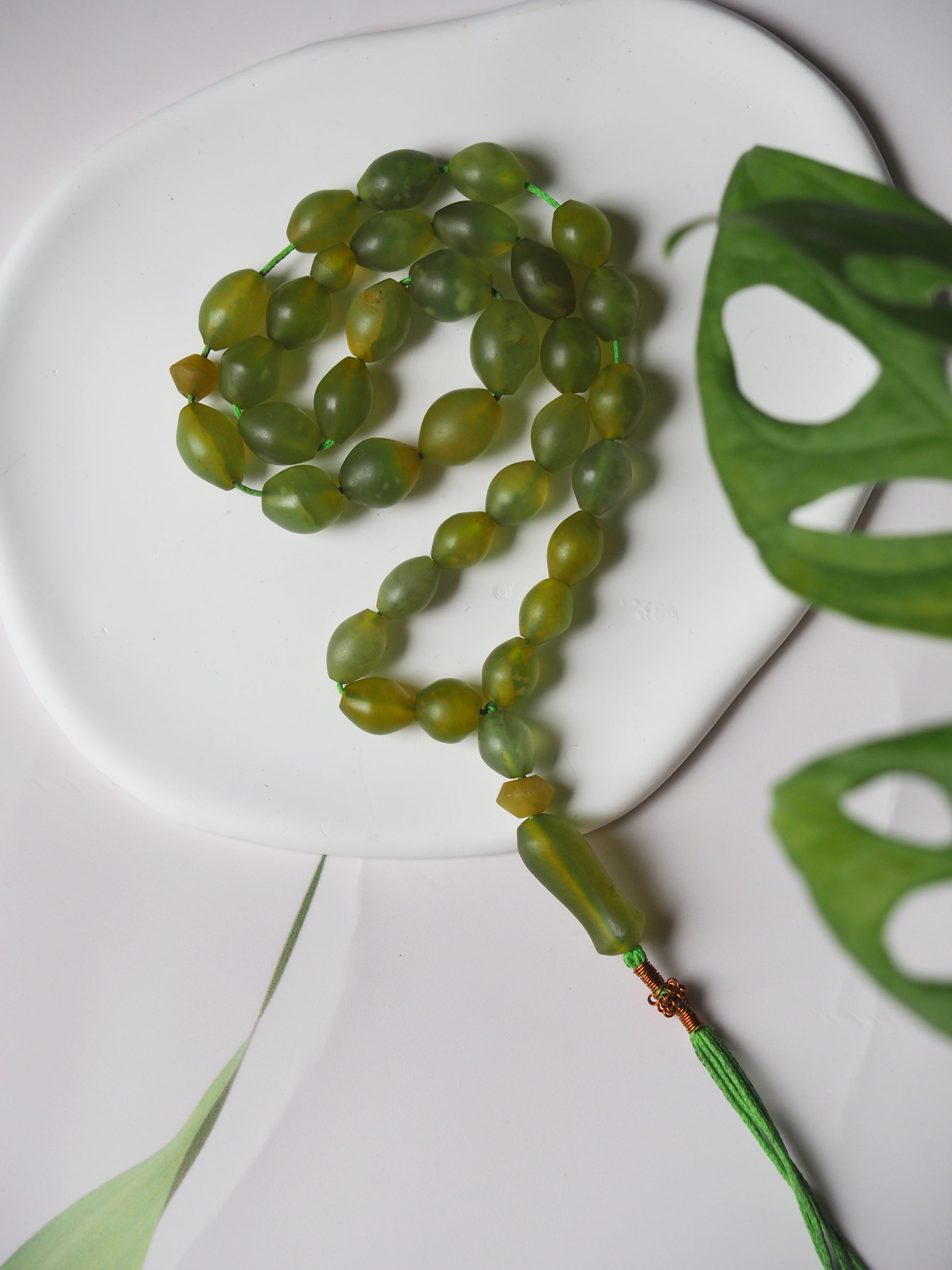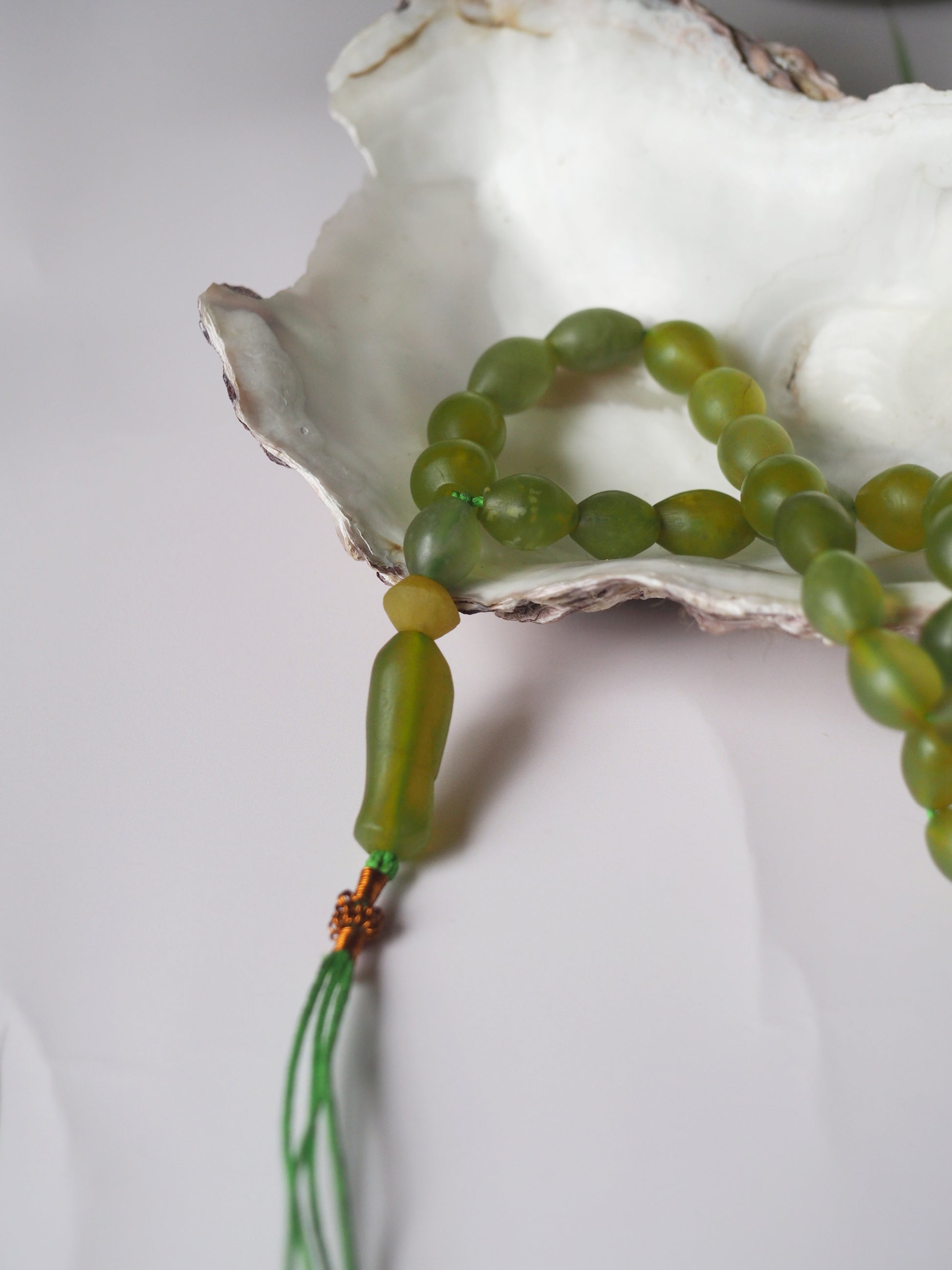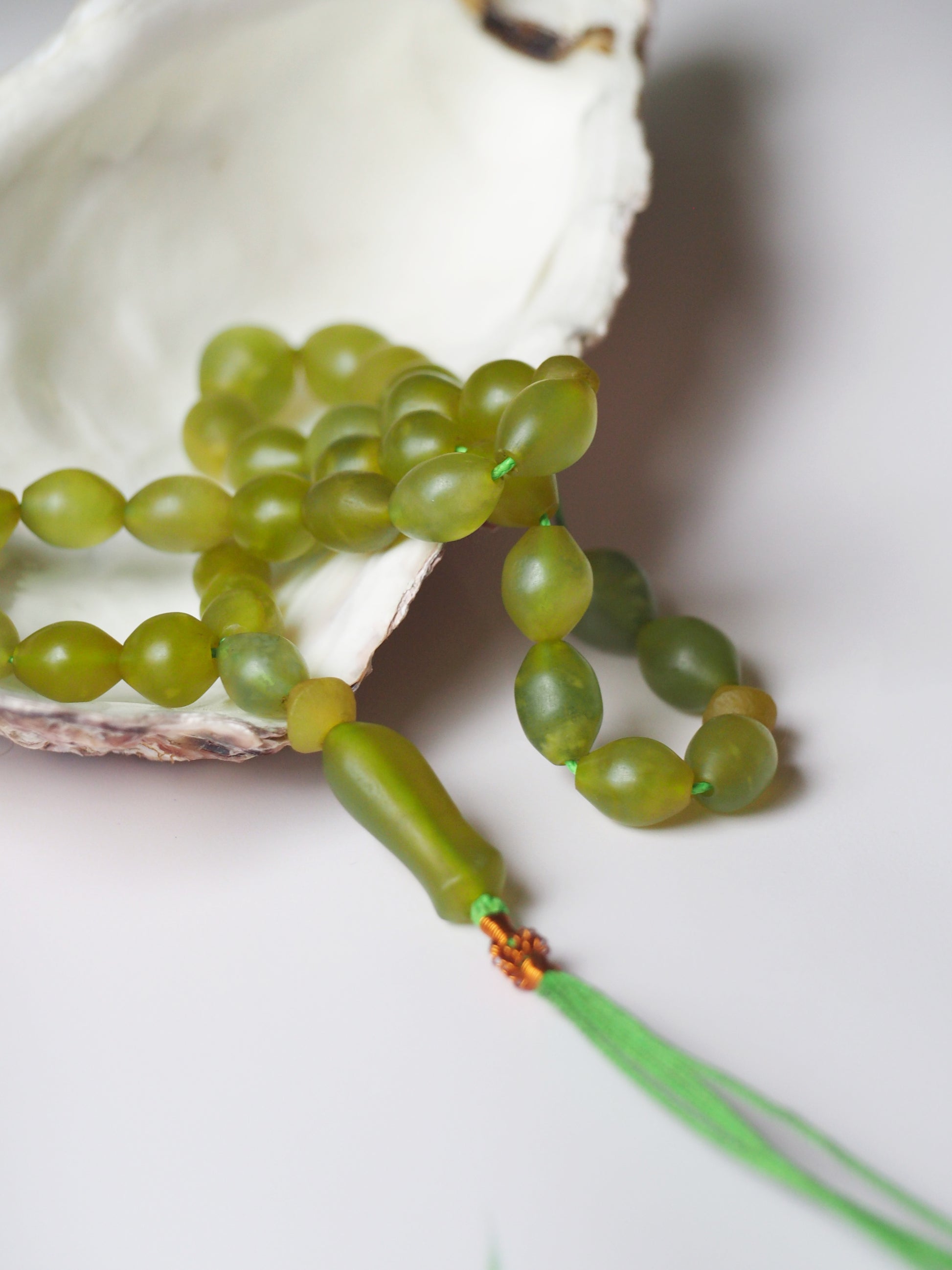 Small, irregular beads in olive shape. Pocket size tasbih - available in few different colors.