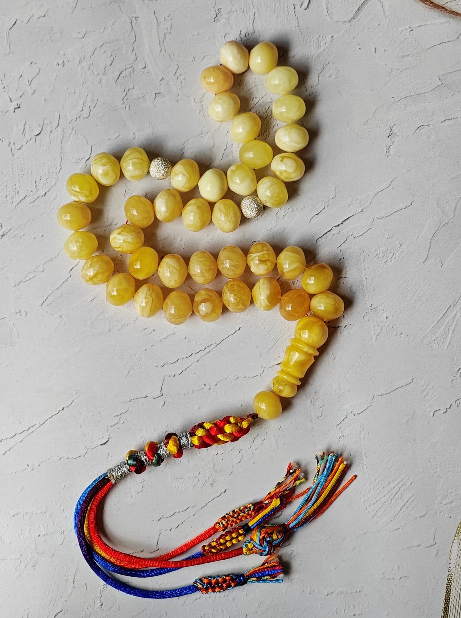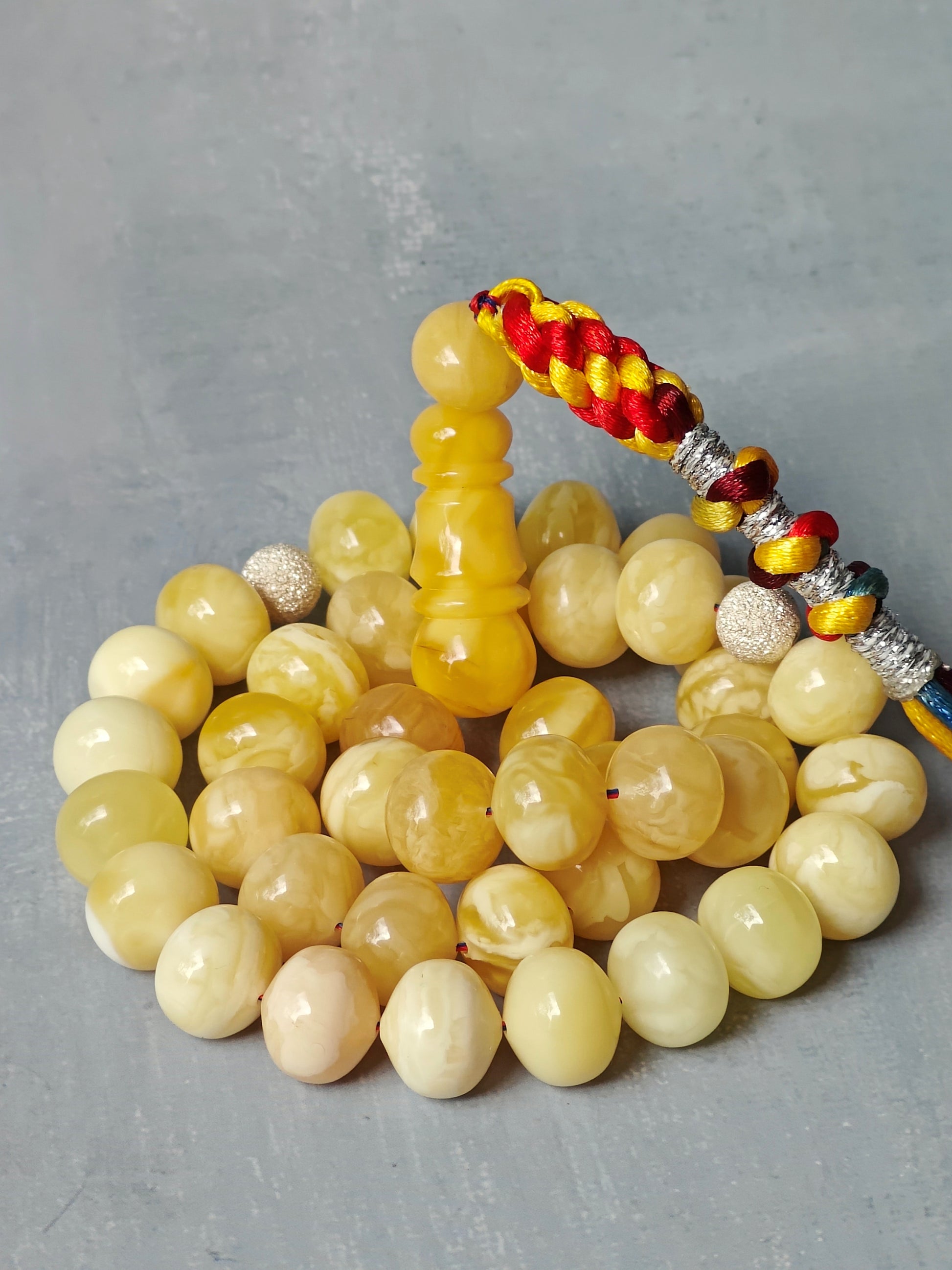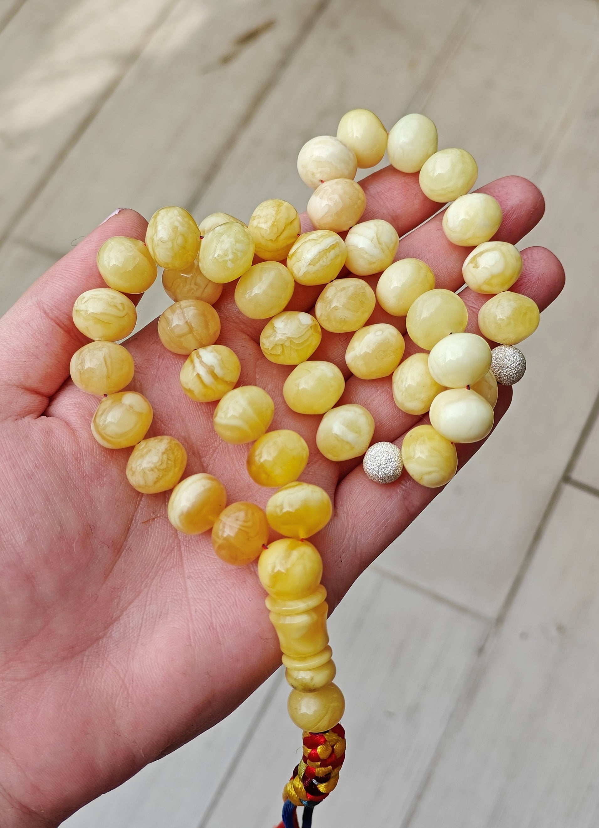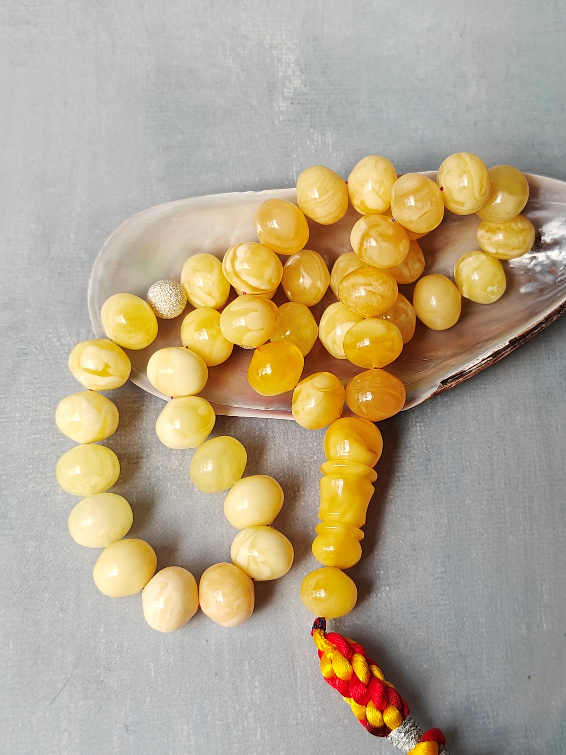 Natural Gradient Butterscotch, Royal White and Tiger Amber Istanbul Shape Misbah 40 Beads