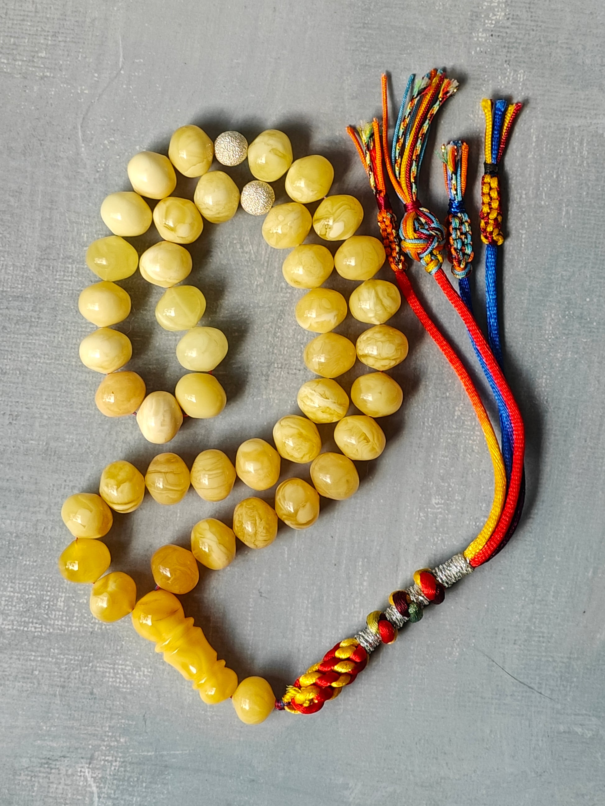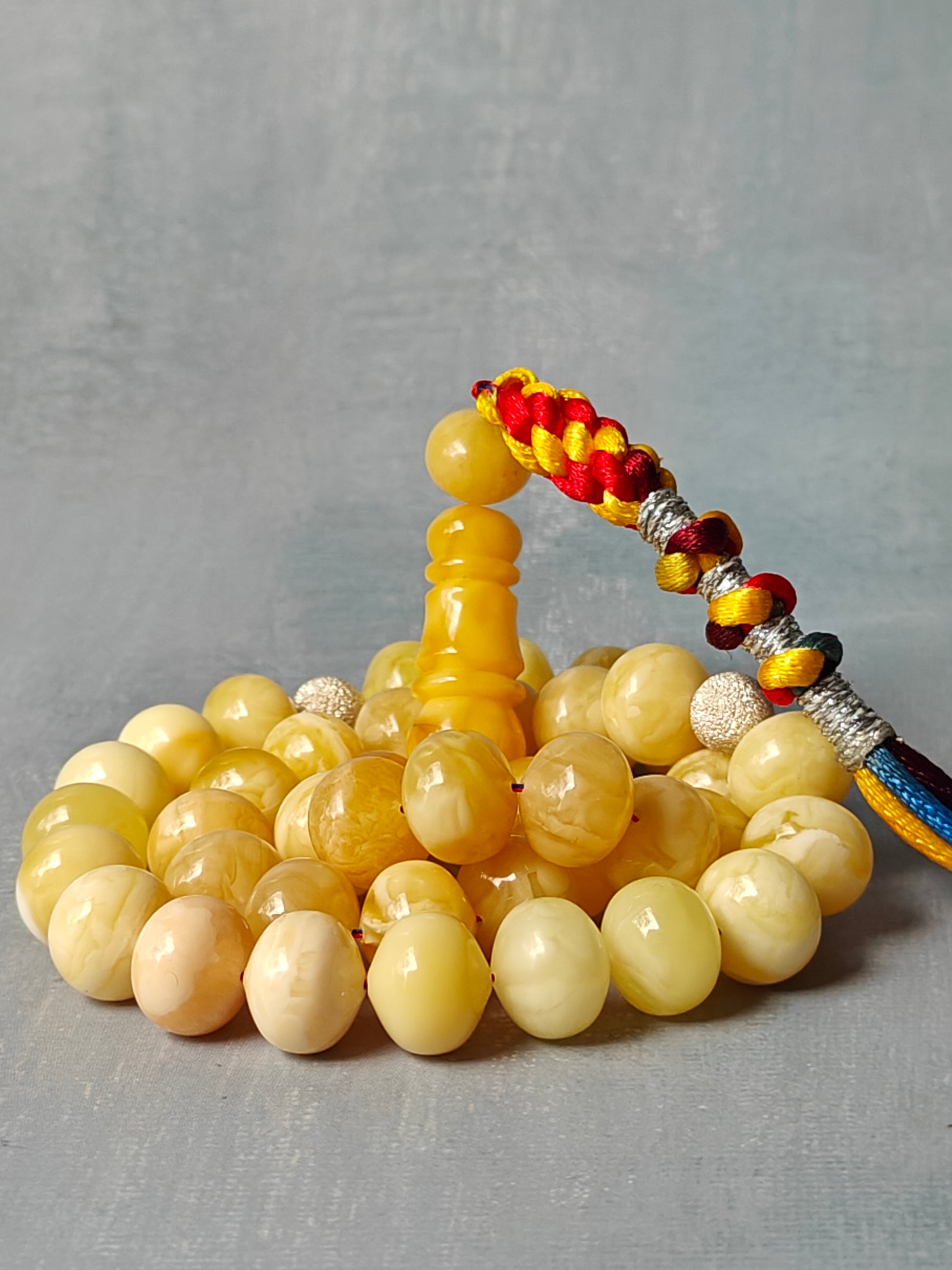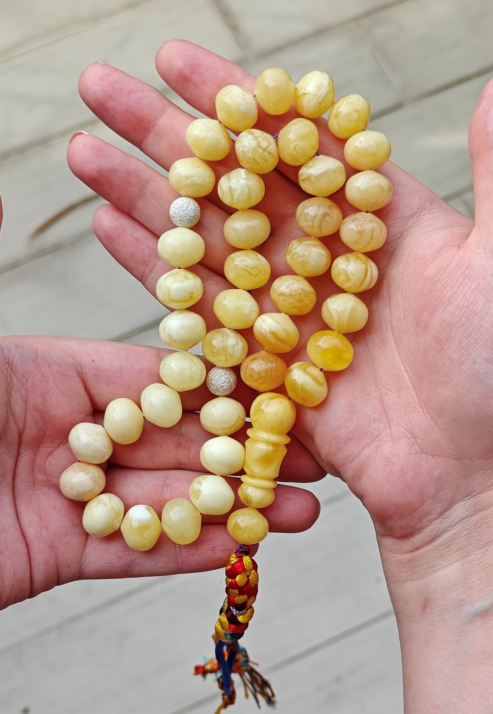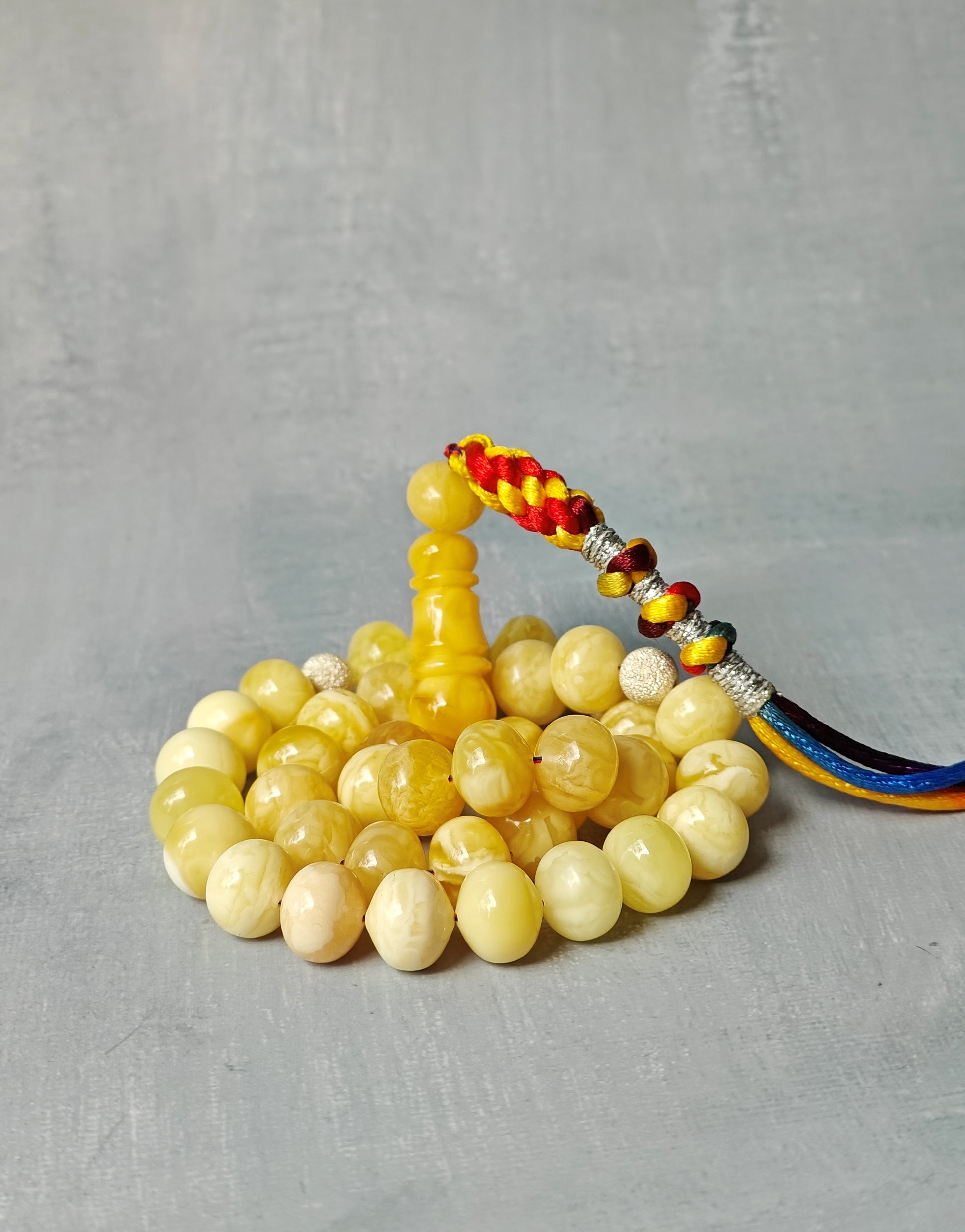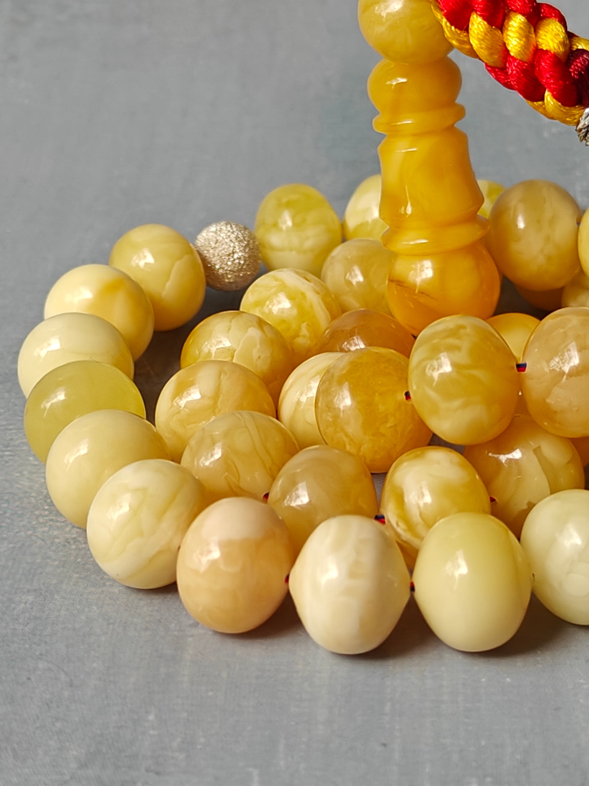 Natural Gradient Butterscotch, Royal White and Tiger Amber Istanbul Shape Misbah 40 Beads