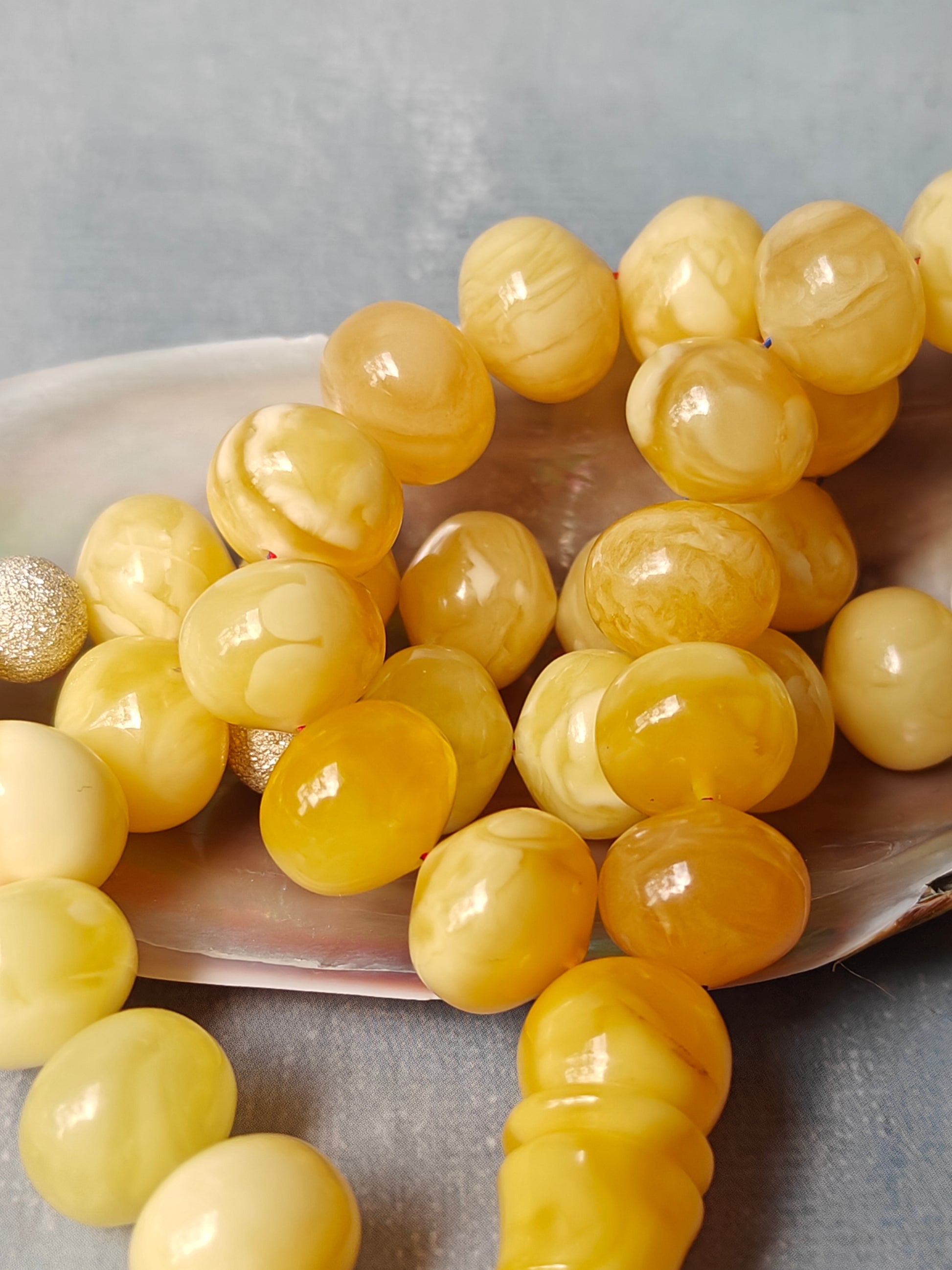 100% Natural Baltic Amber with no treatment or heat. Mix of Royal White / Milk and Butterscotch Tiger colors.