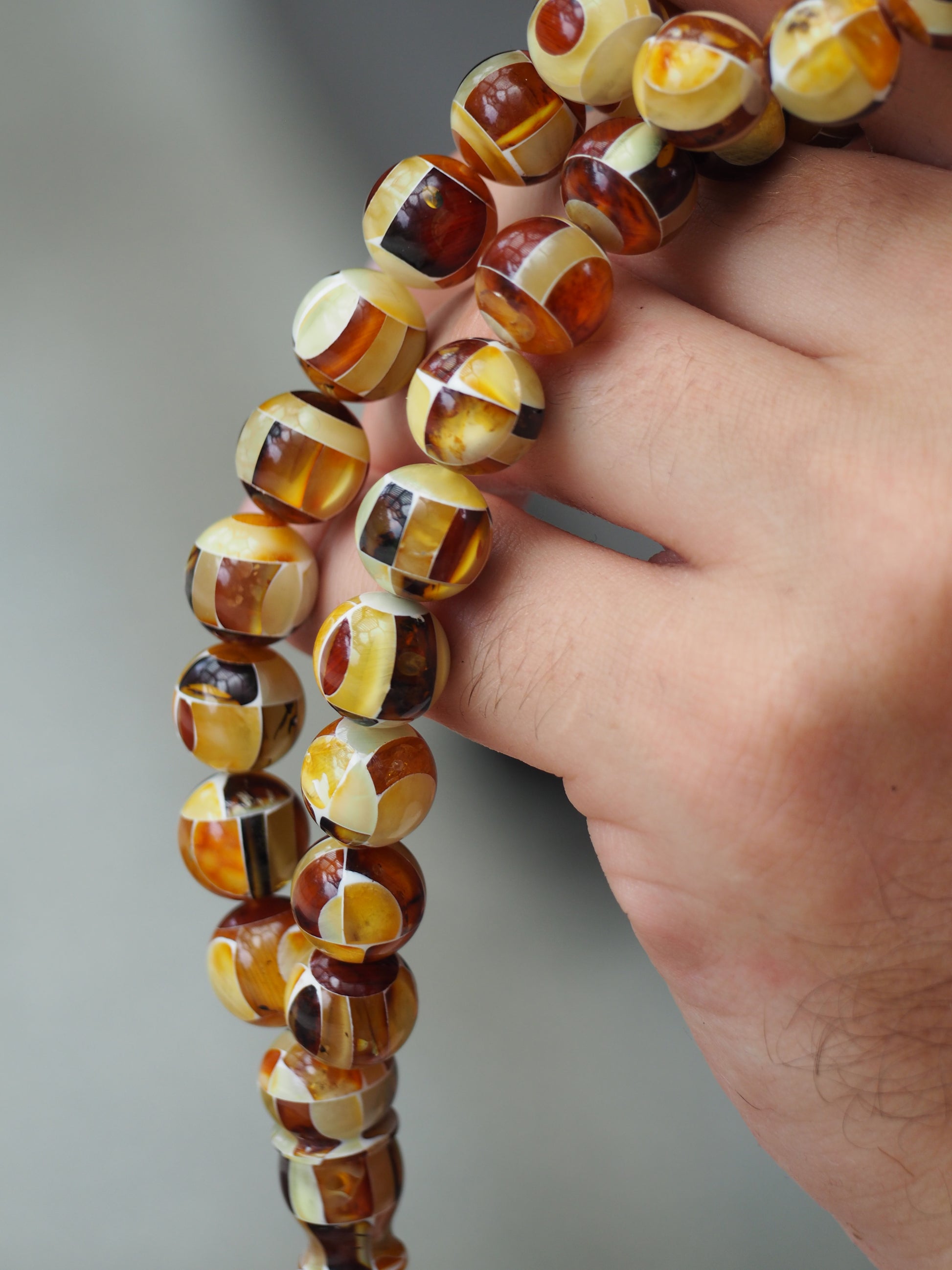 Natural Mozaic Multicolor Amber Rosary 12mm