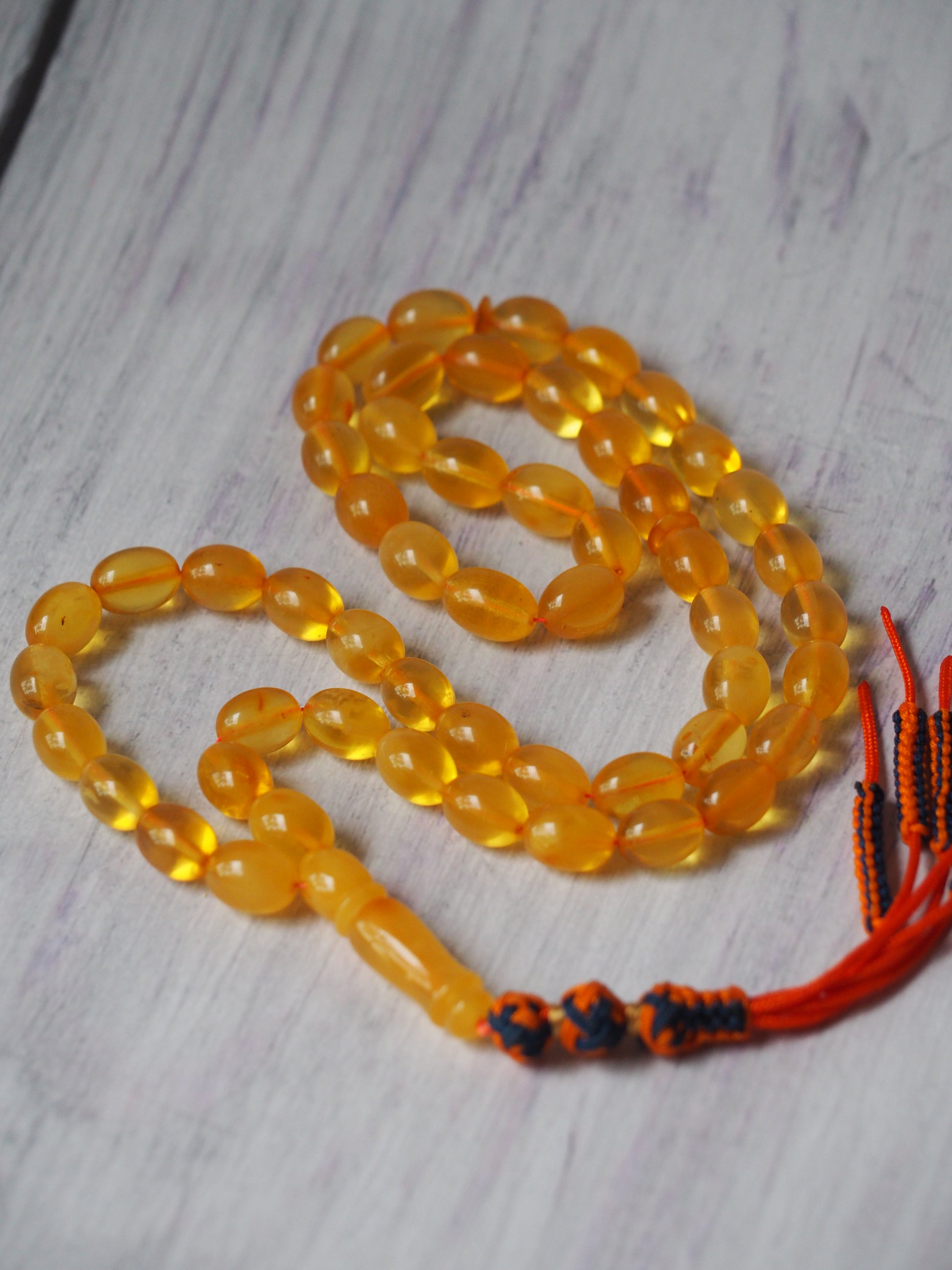 Natural Pocket Size Cloudy Honey Olive Shape Amber Rosary 53 Beads