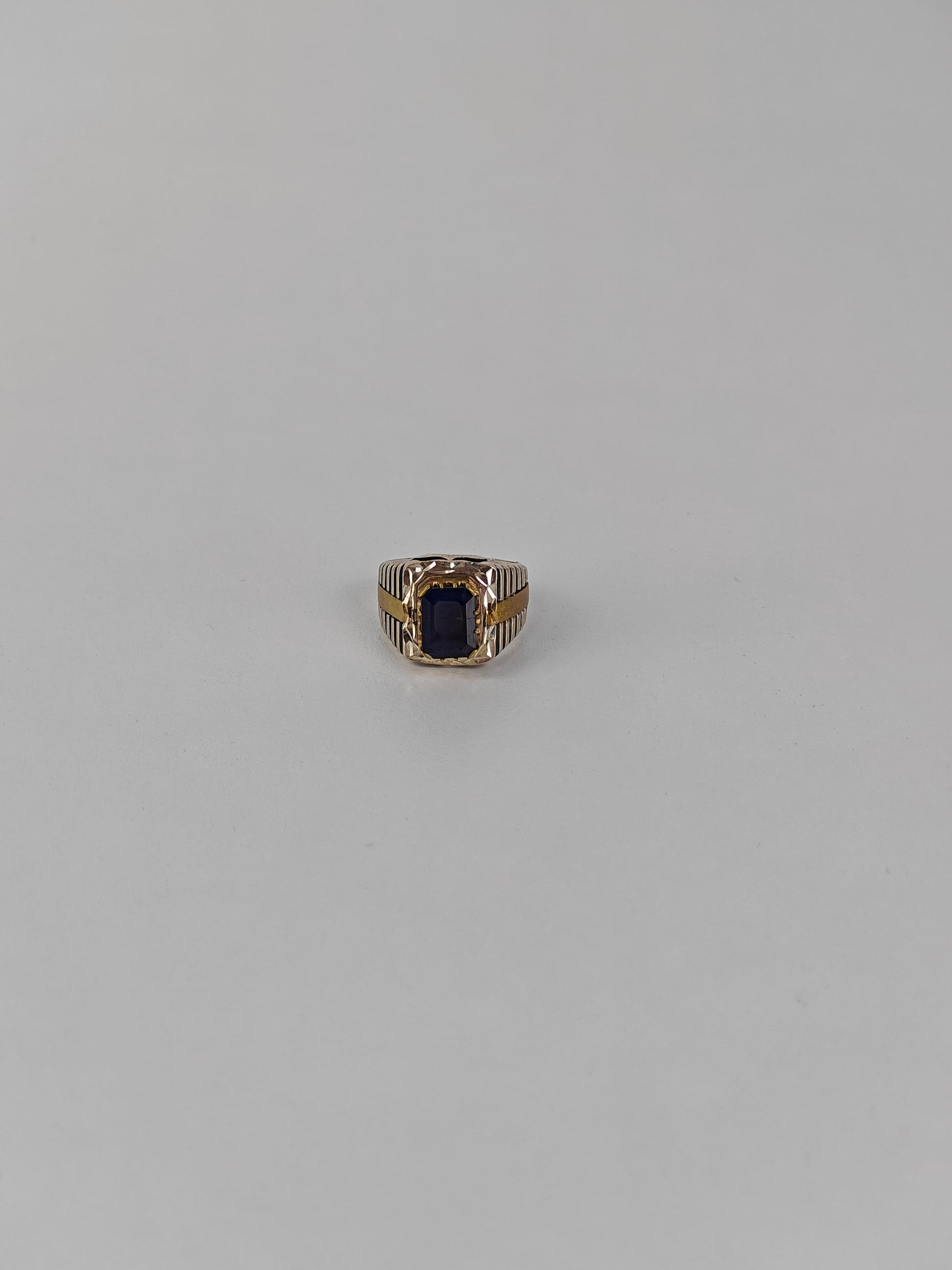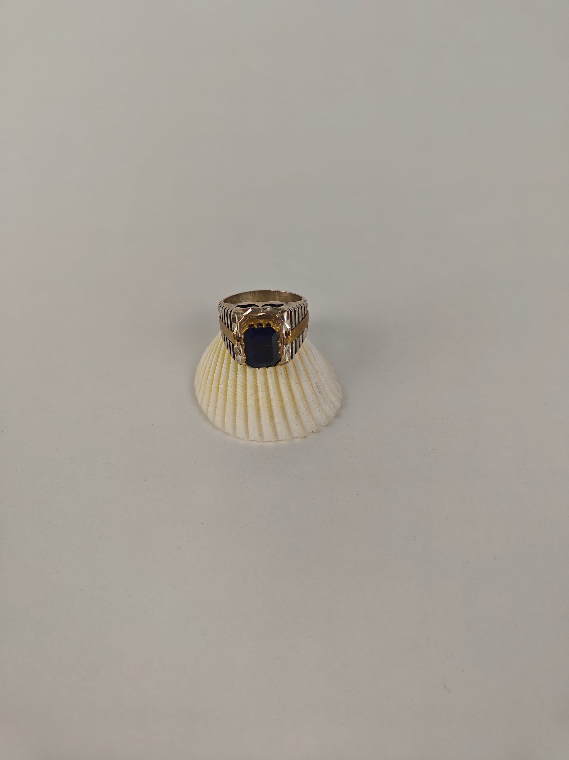 925 Silver ring, dark colored sapphire in embossed silver ring frame.