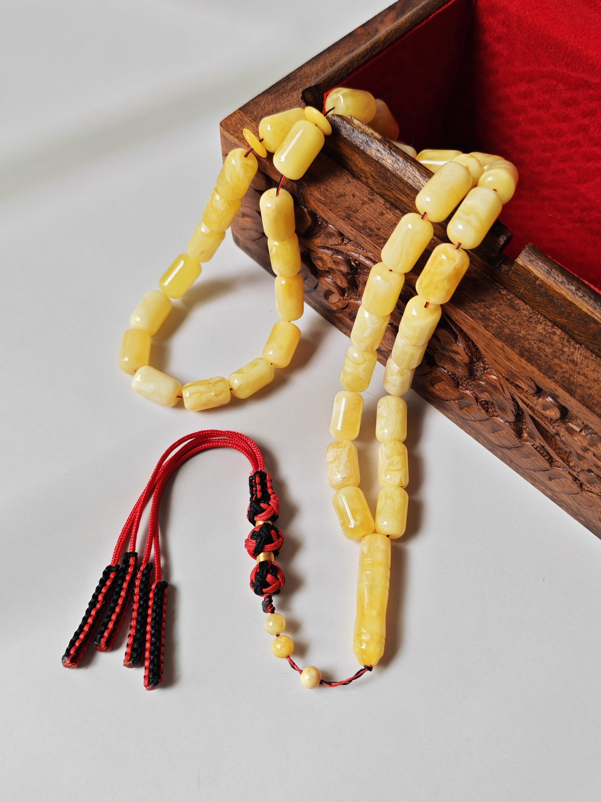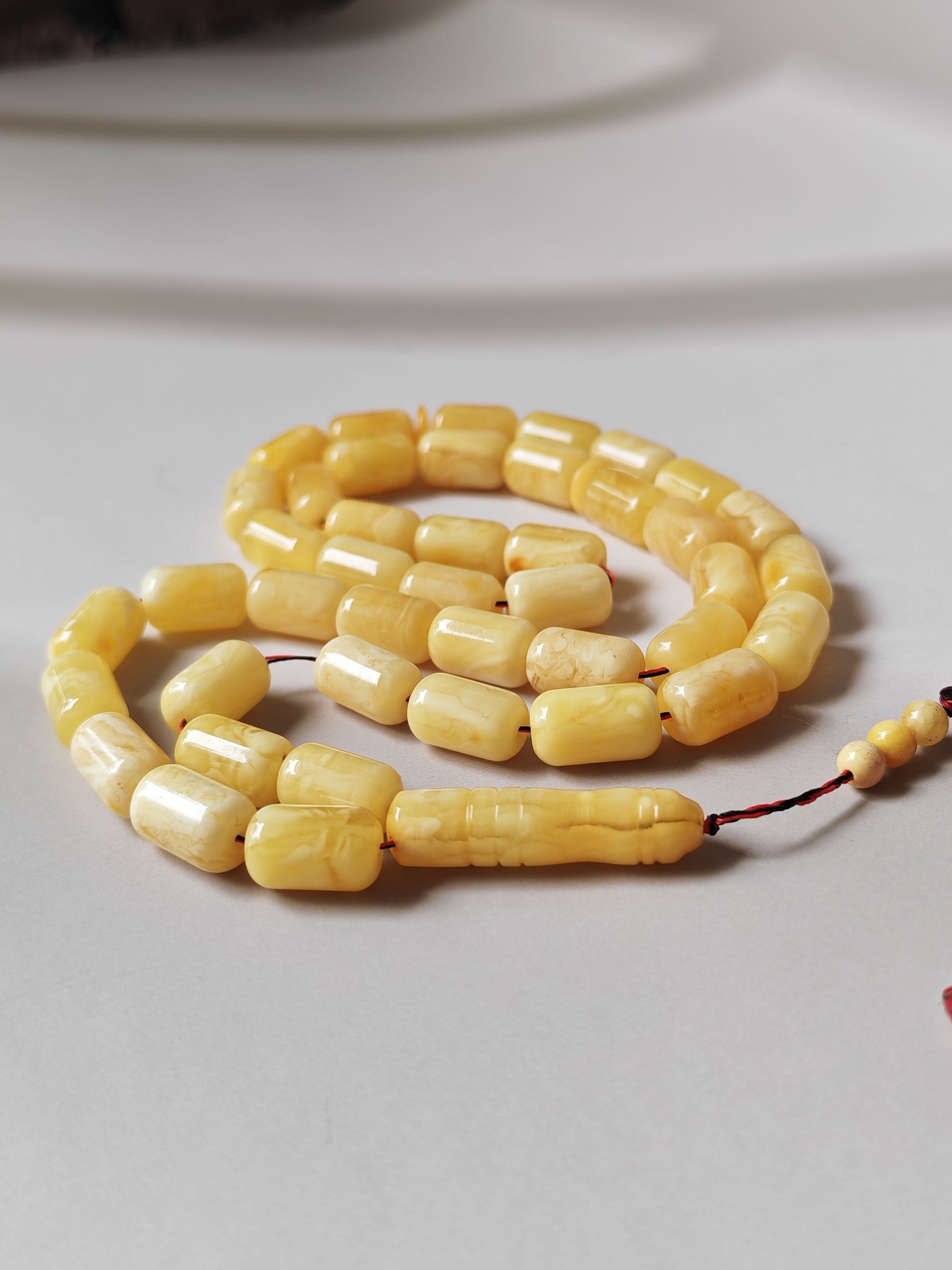 Natural Tiger Pattern Barrel Shape Pocket Size Amber Misbah | 42 Beads