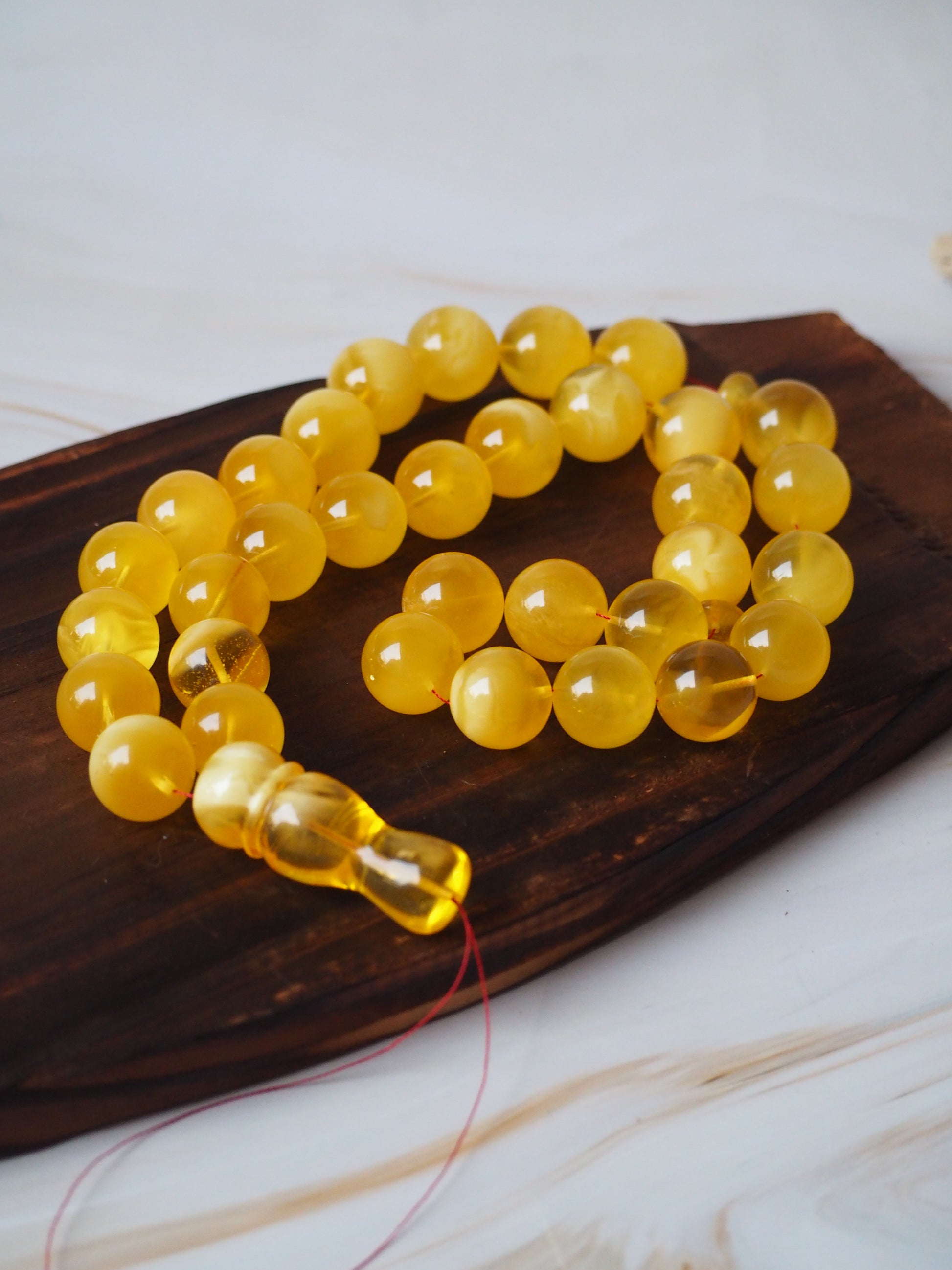 Natural Unheated Honey Amber Misbaha Prayer Beads 16,5mm + Certificate