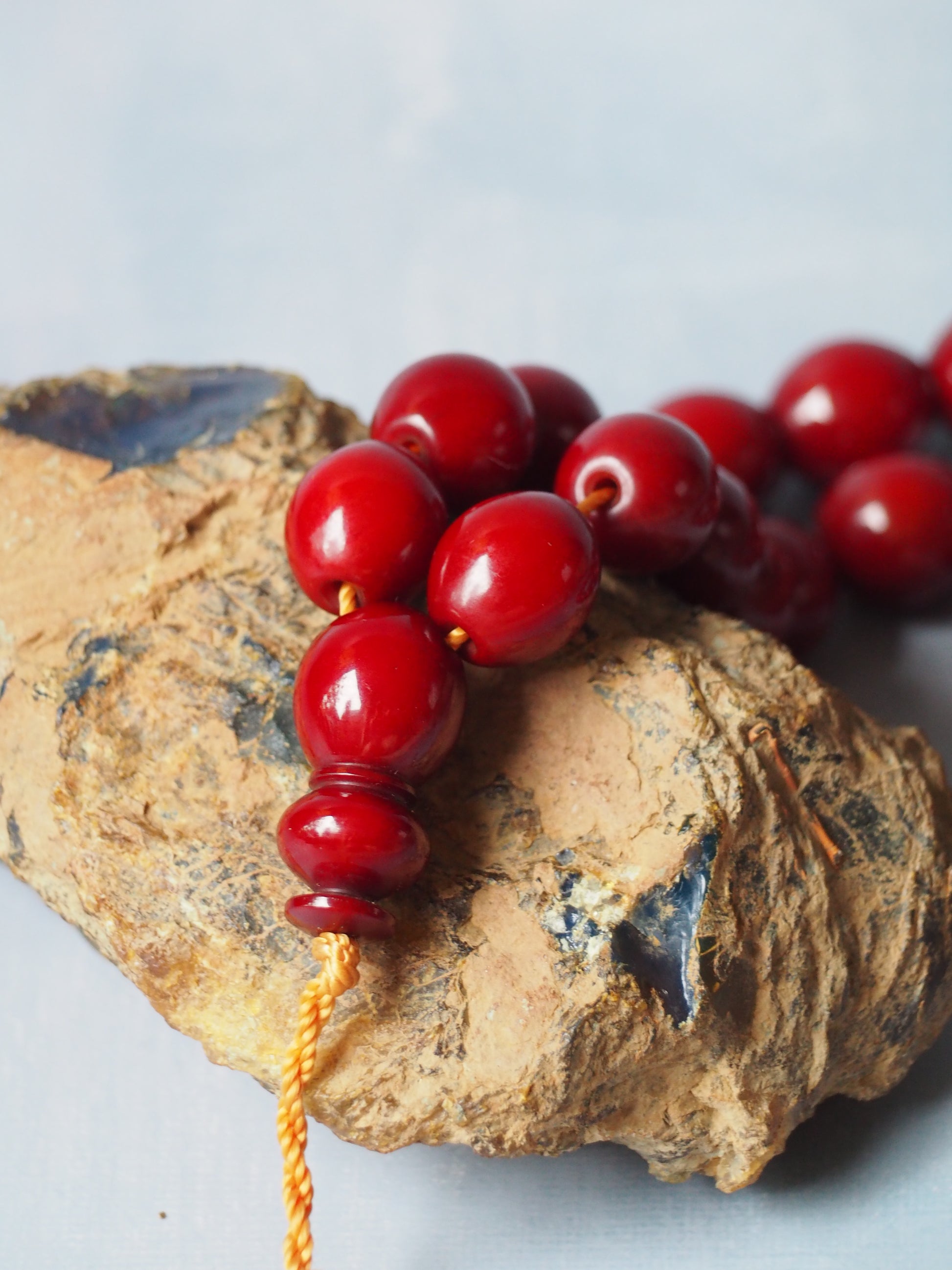 Old Agfhani Bakelite Rosary 33 Beads 92g Olive Shape