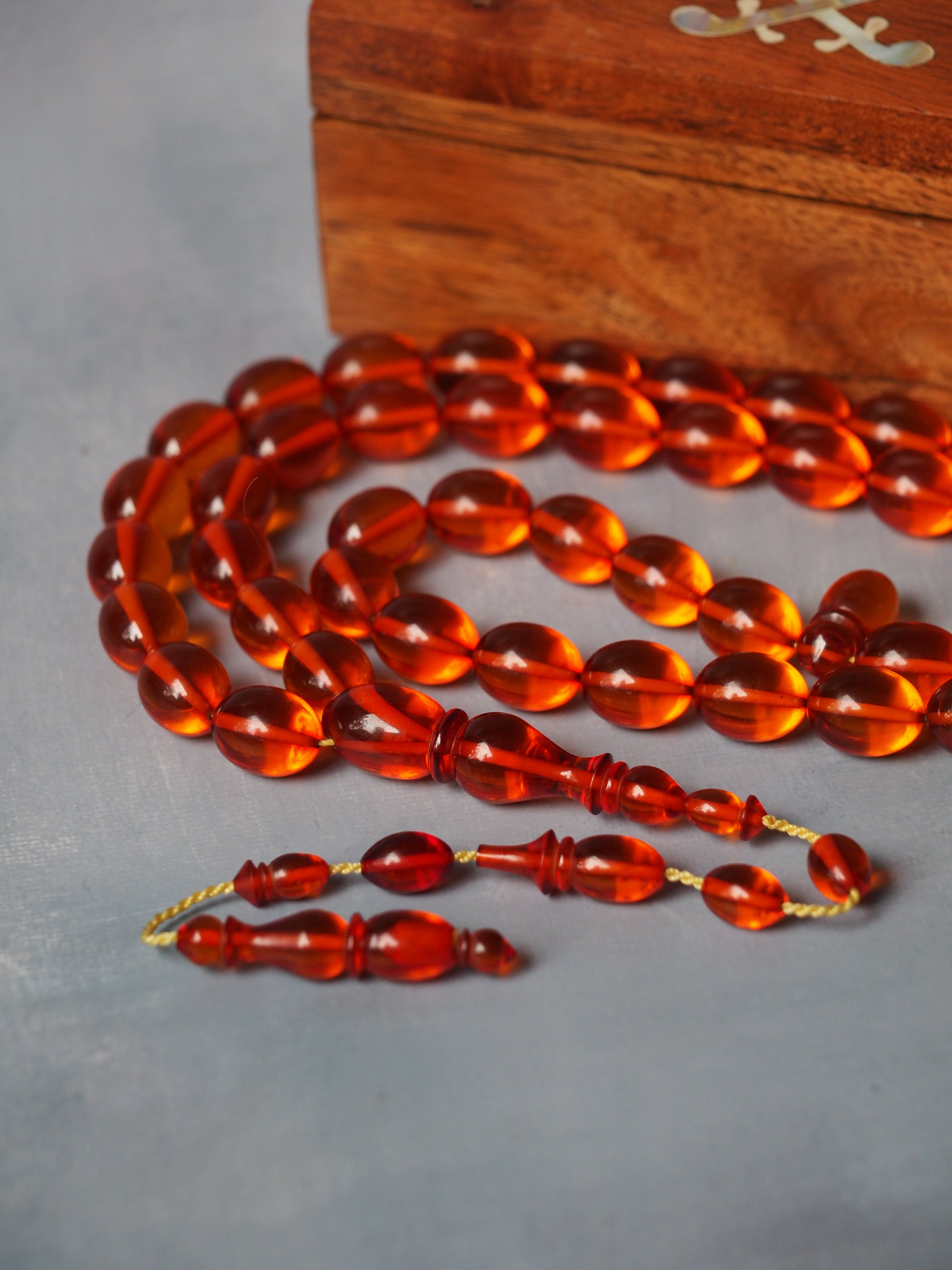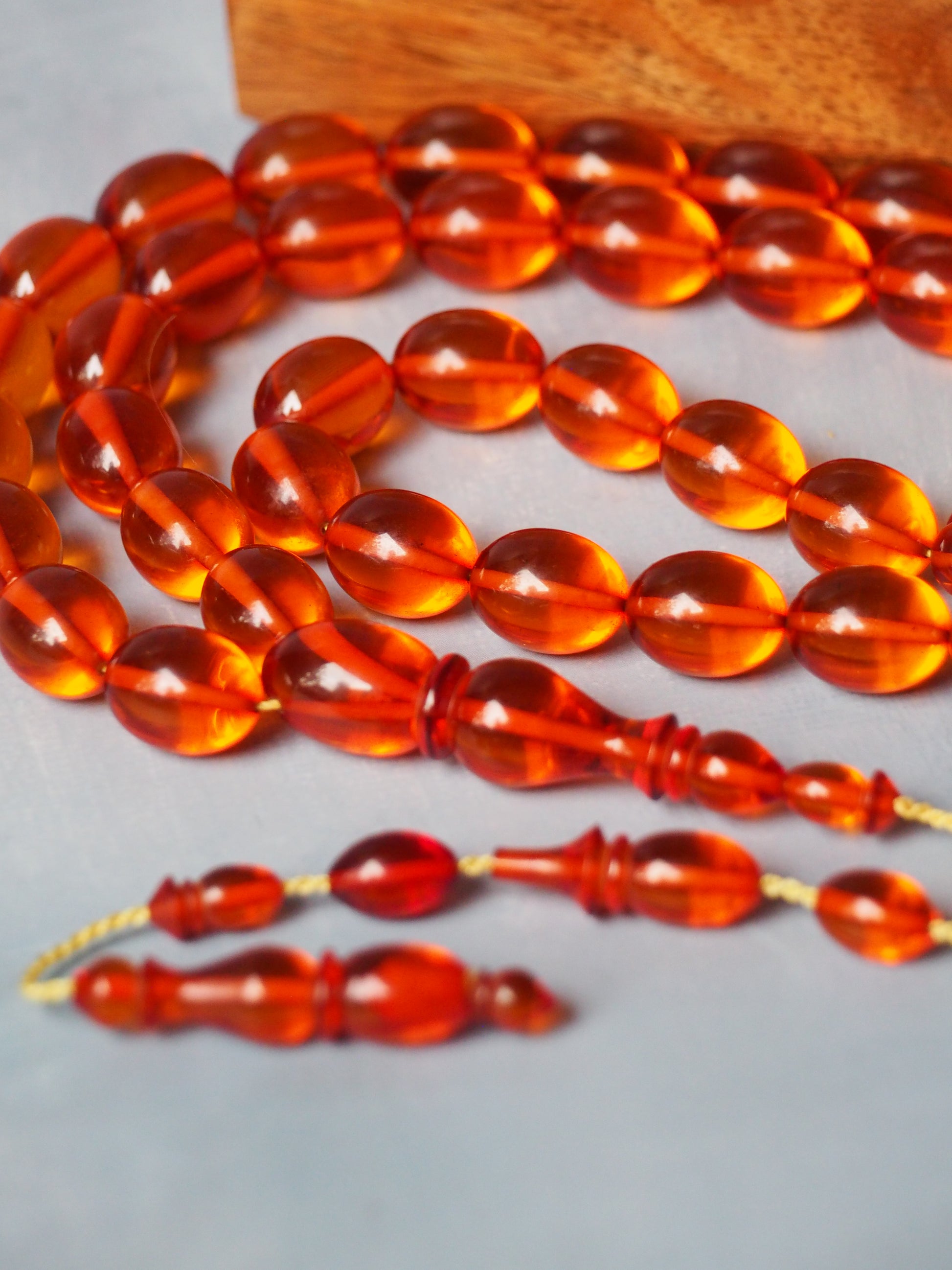 Orange Transparent Syrian Bakelite Rosary 45 Beads