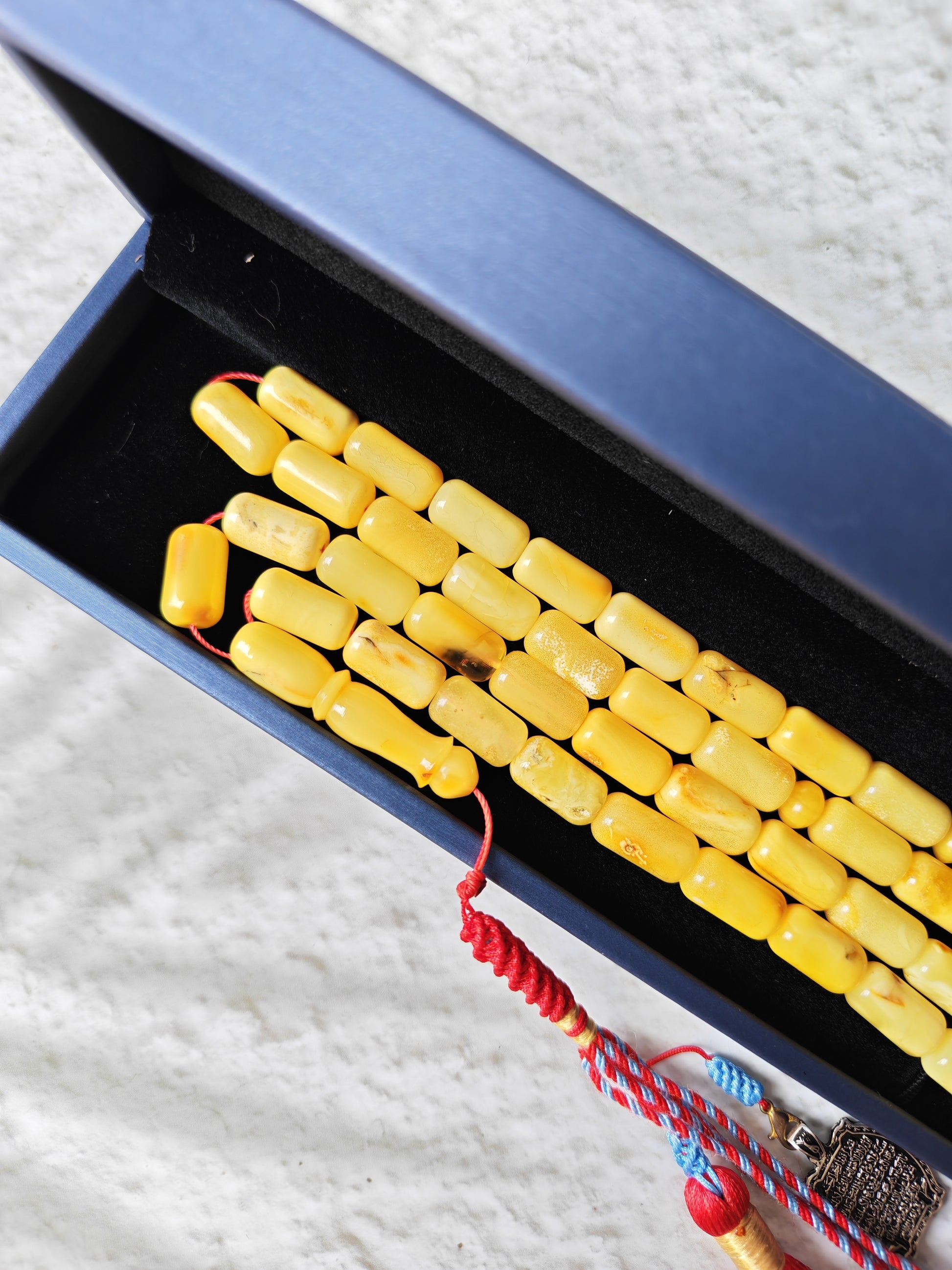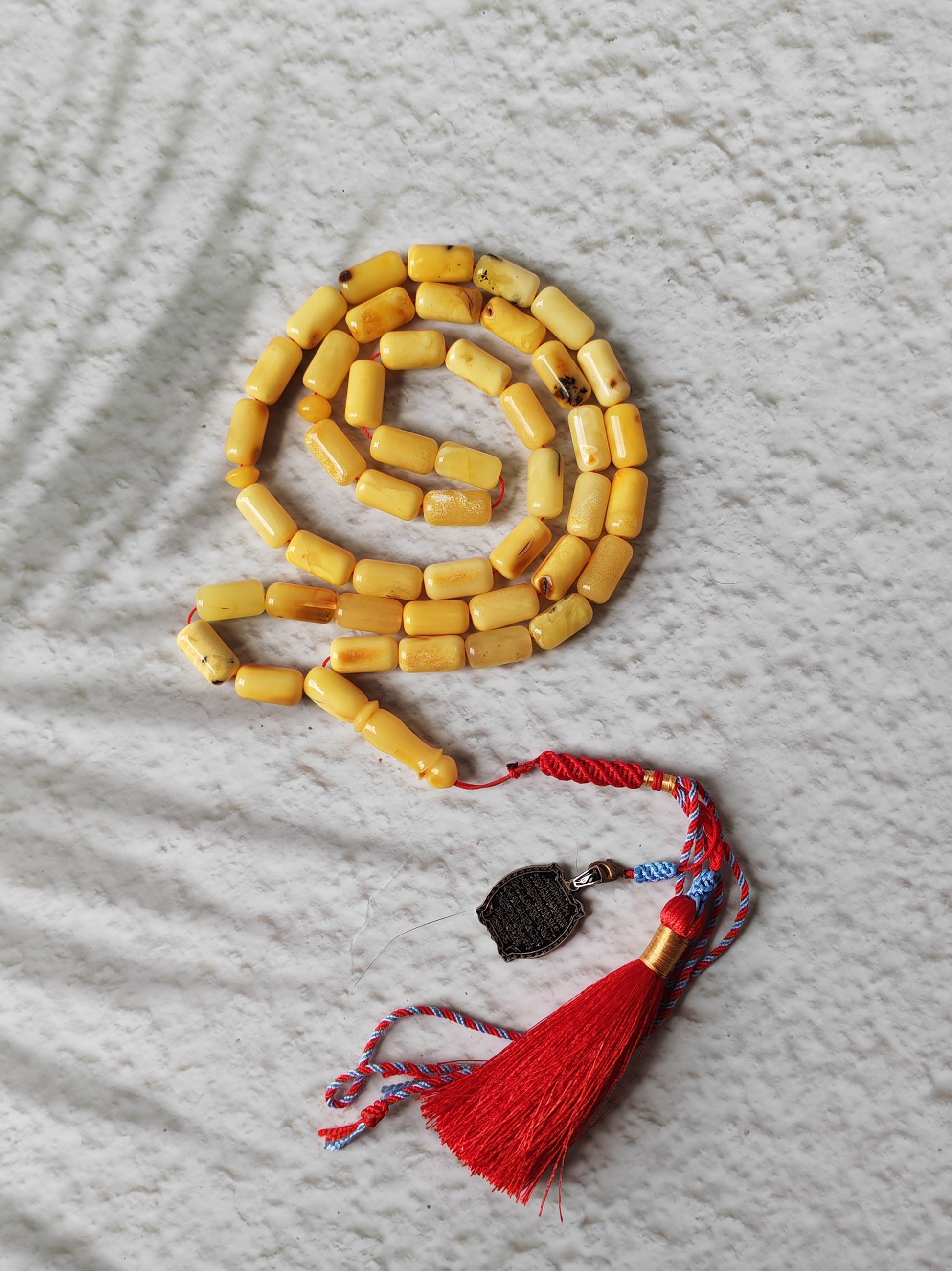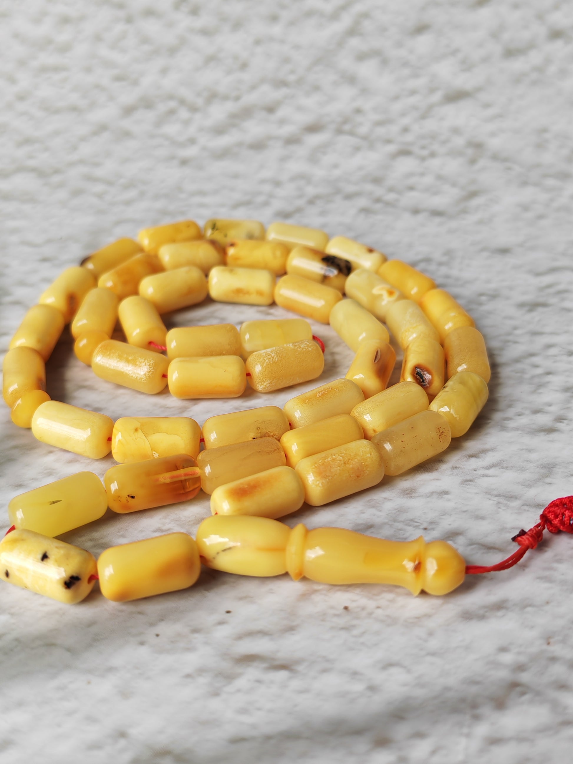 Raw Multicolor Amber Rosary – 45 Barrel Beads