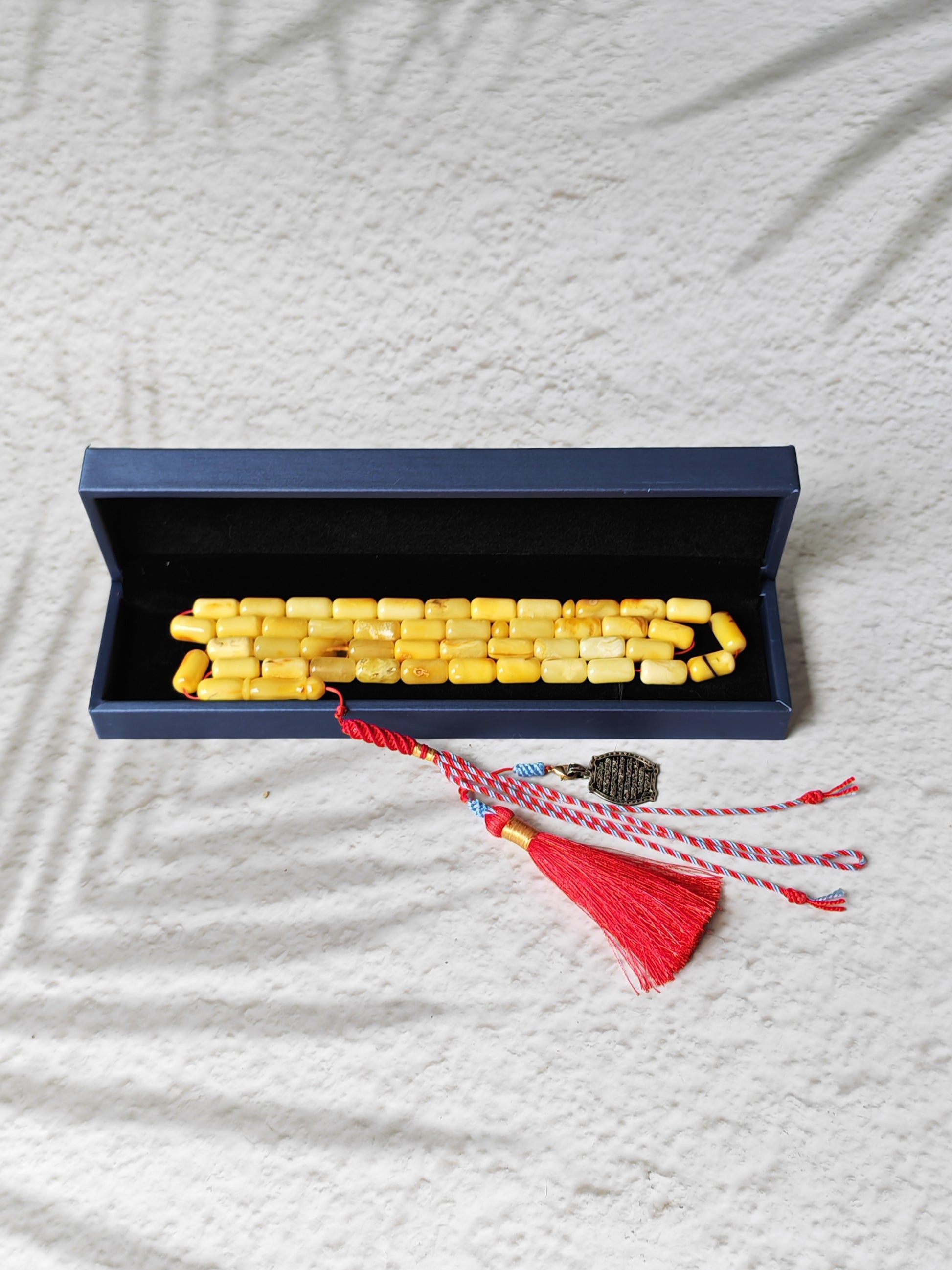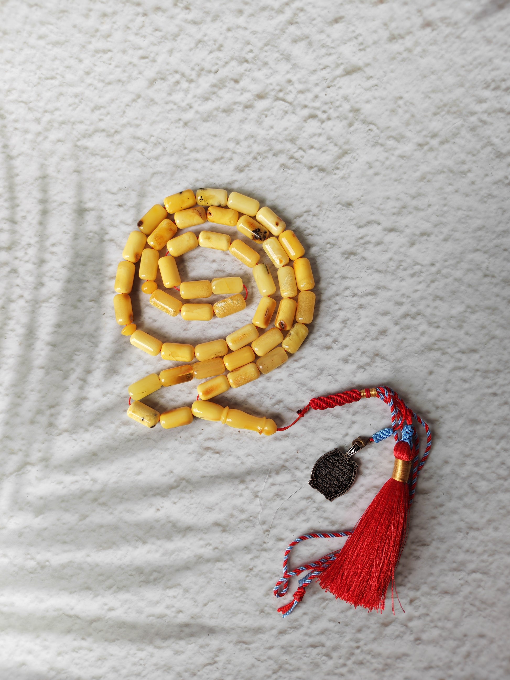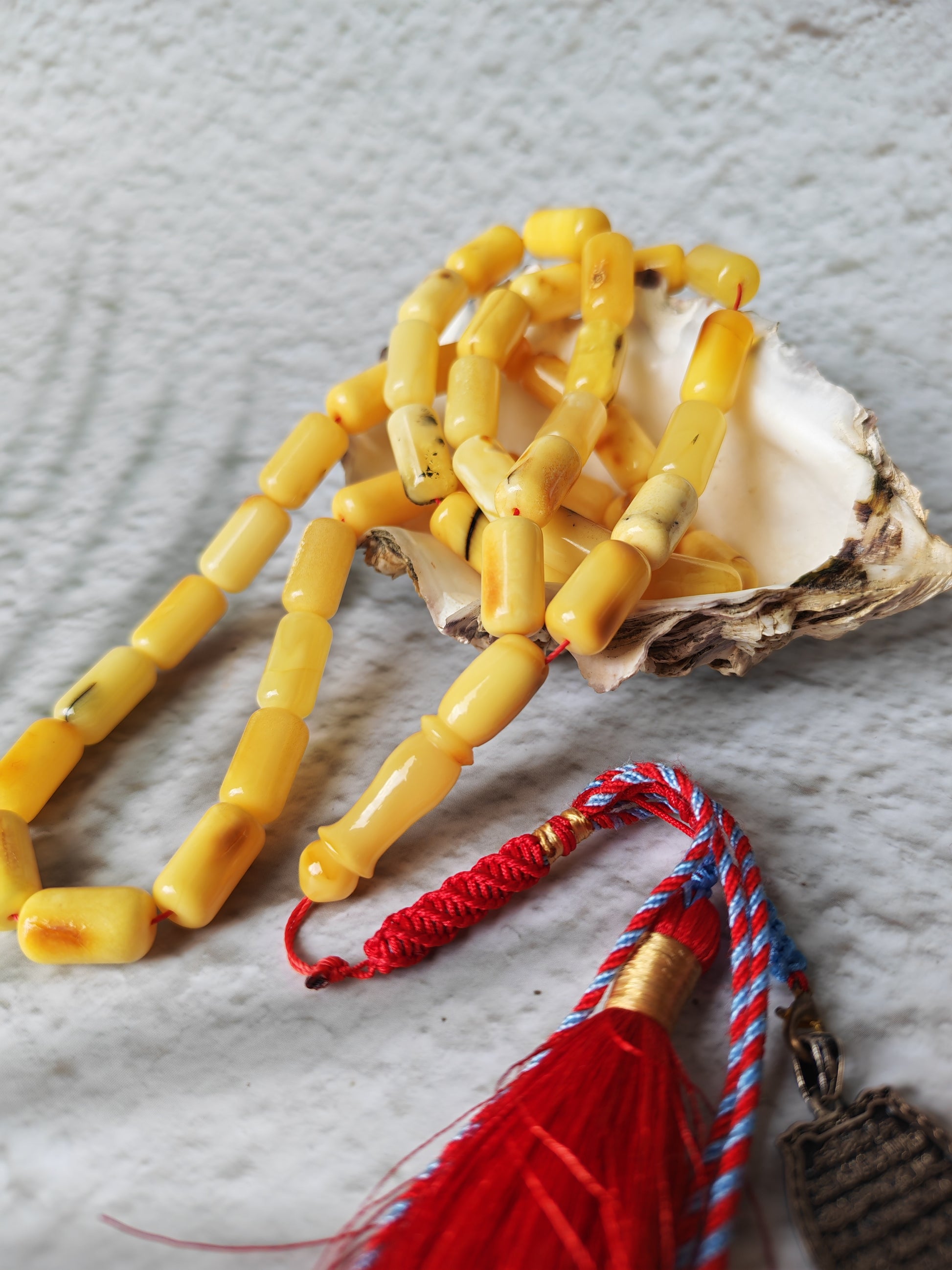 Raw Multicolor Amber Rosary – 45 Barrel Beads