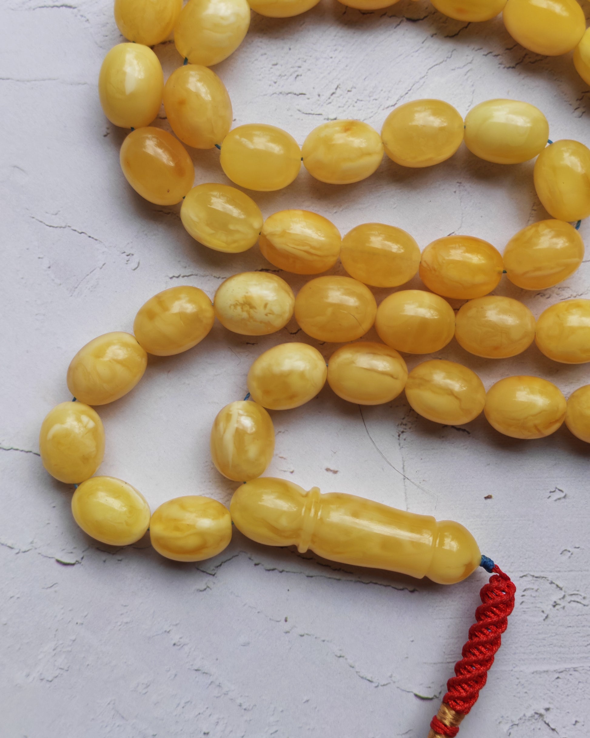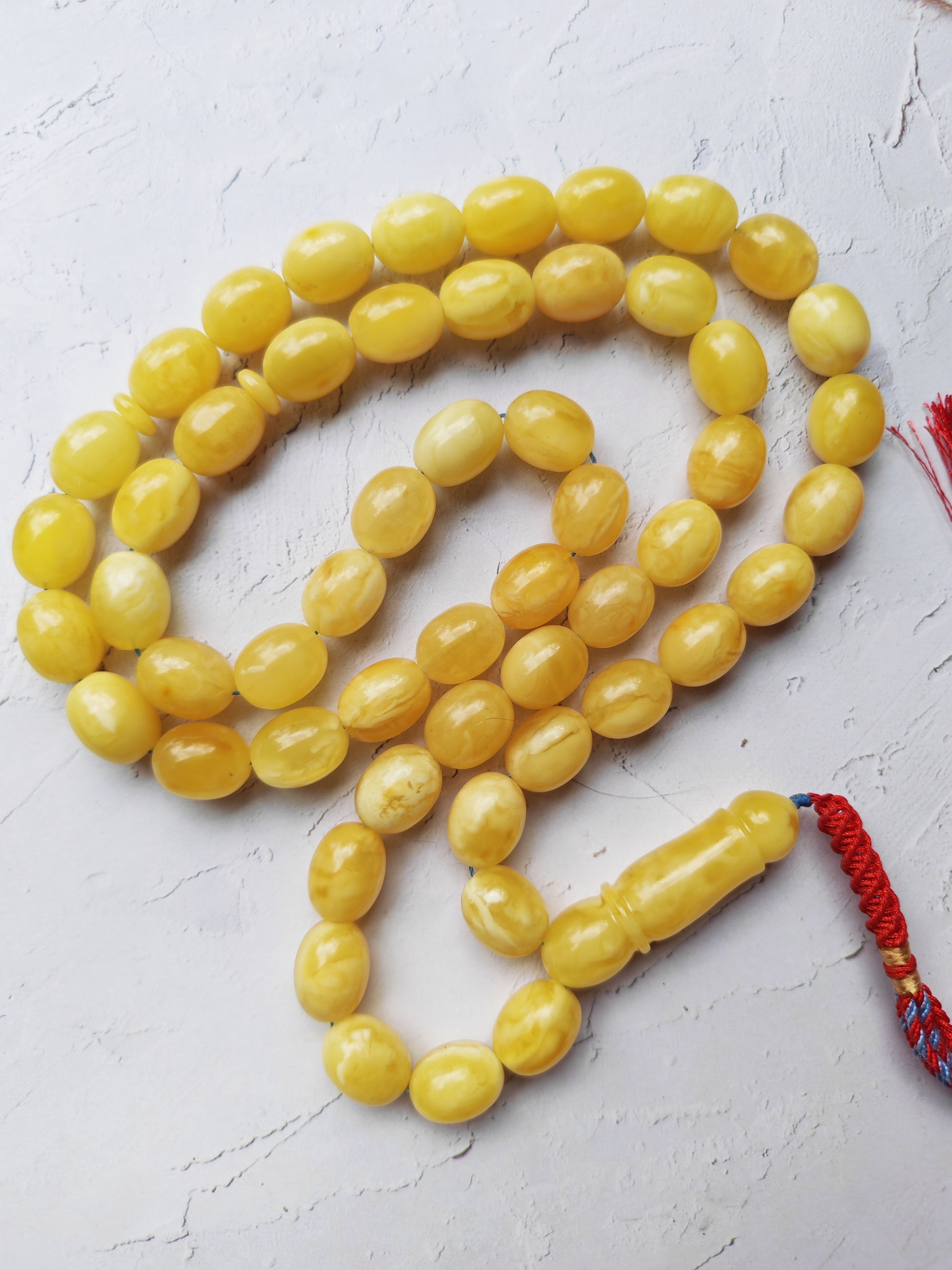 Super Baltic Amber Rosary | 55 Pigeon Egg–Shaped Beads, Butterscotch & Royal White