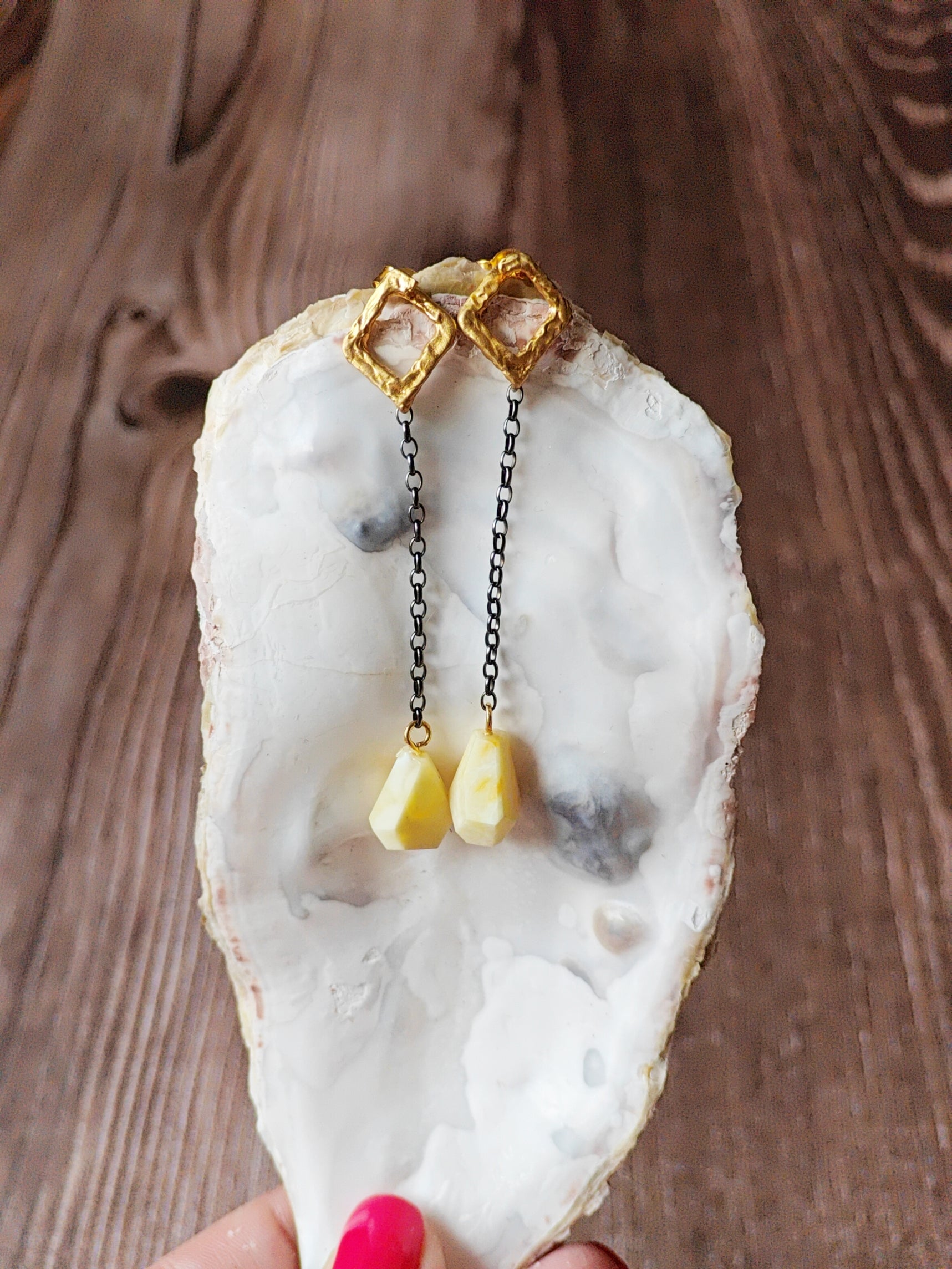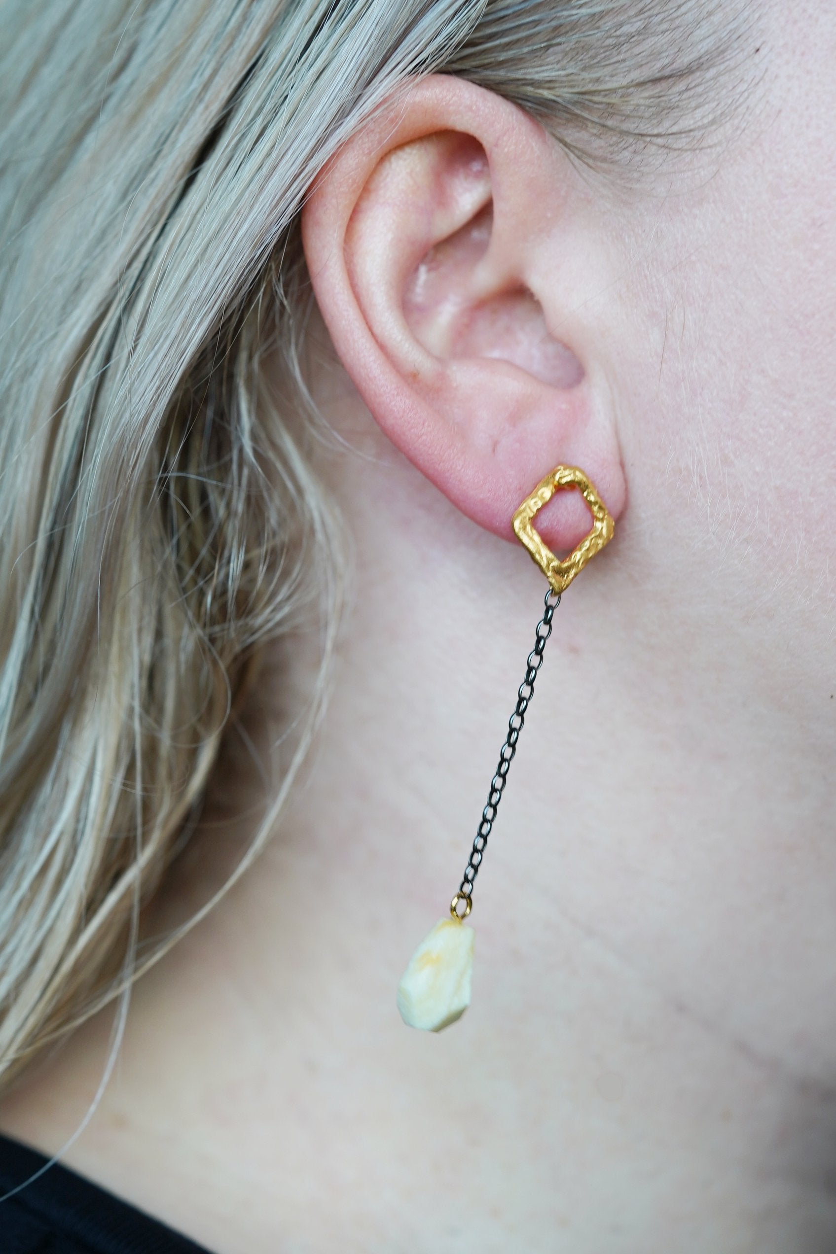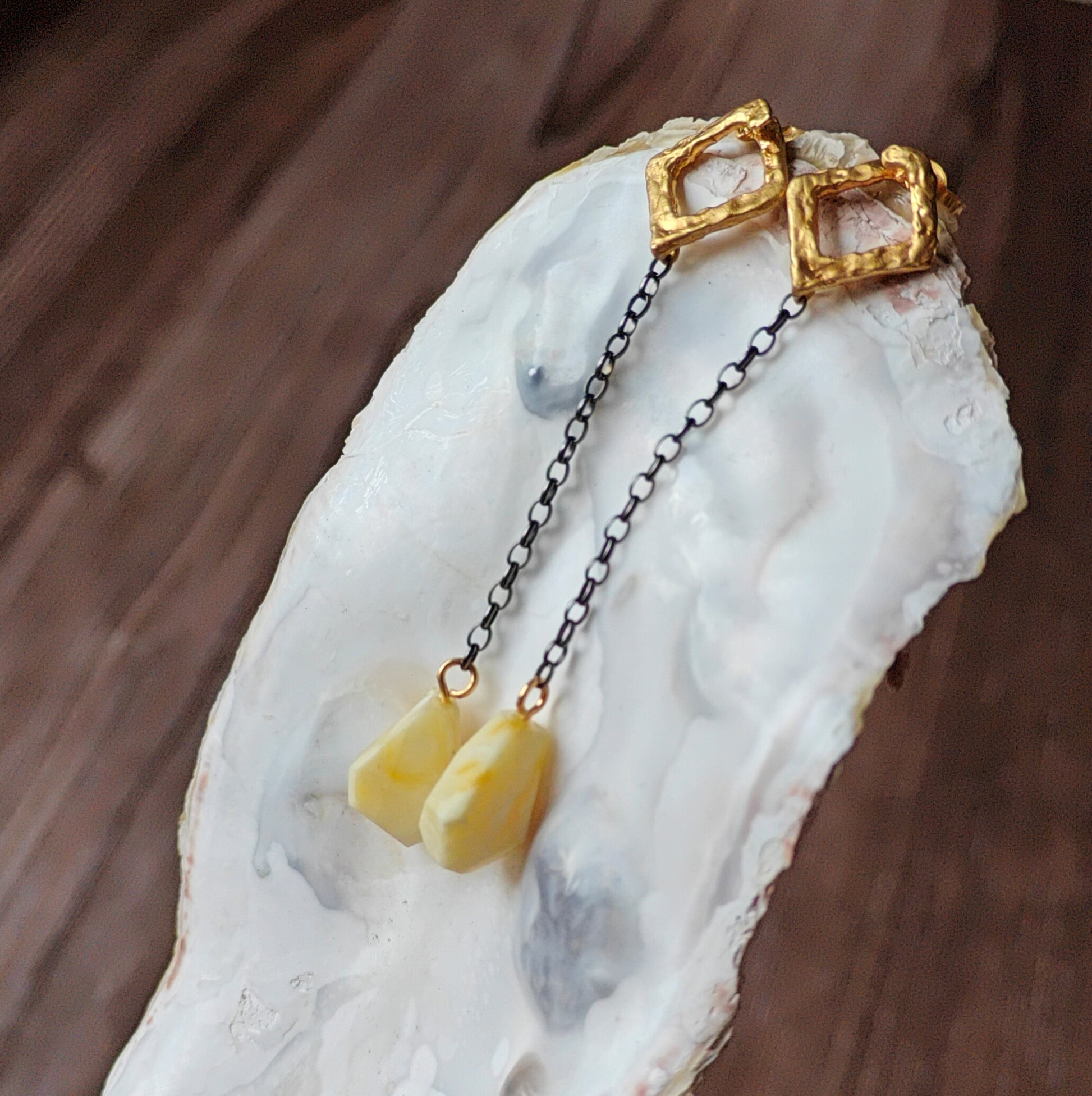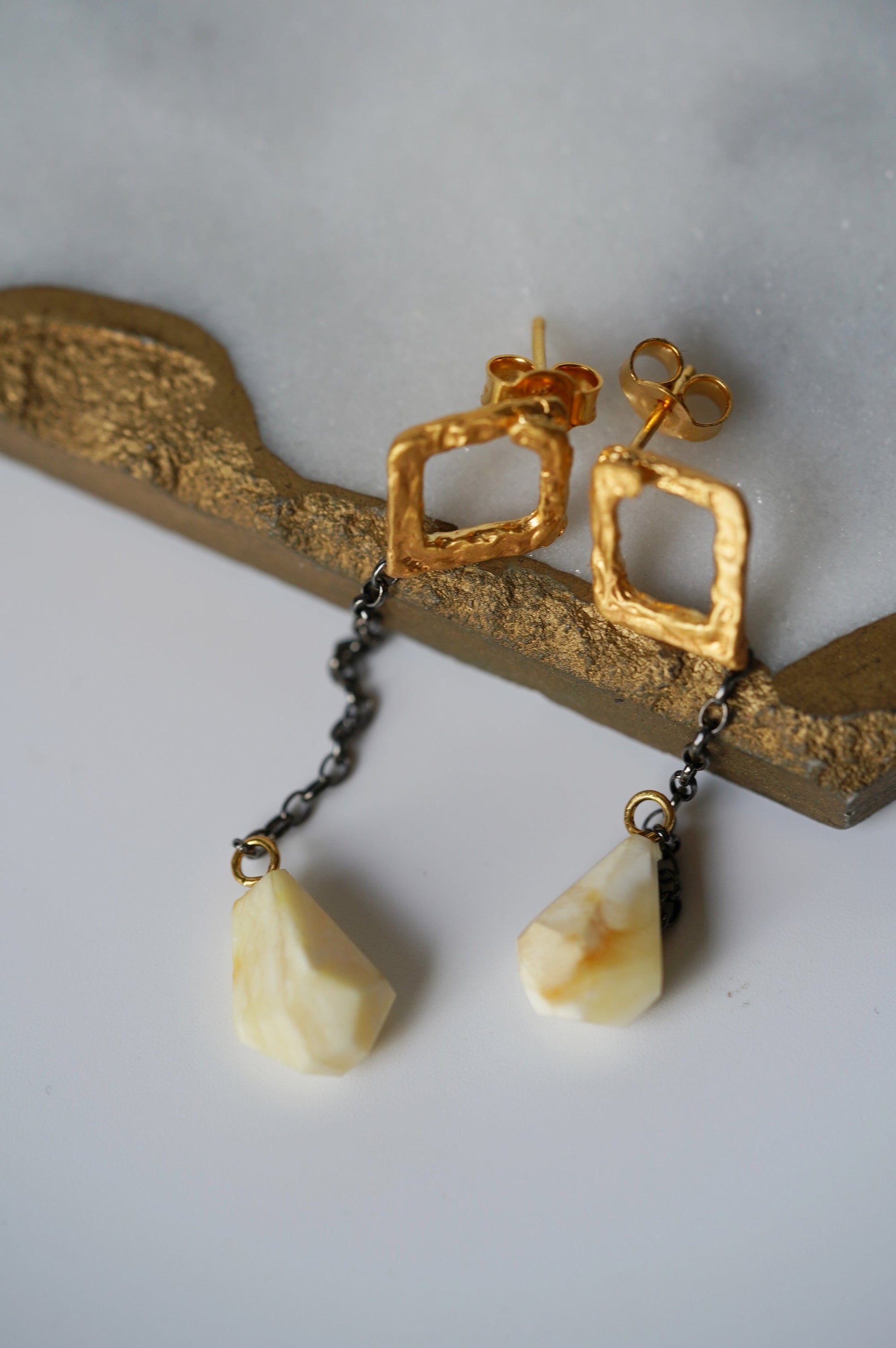 Geometric White Amber Dangling Earrings in 14K Gold Plated And Rhodium Plated Silver
