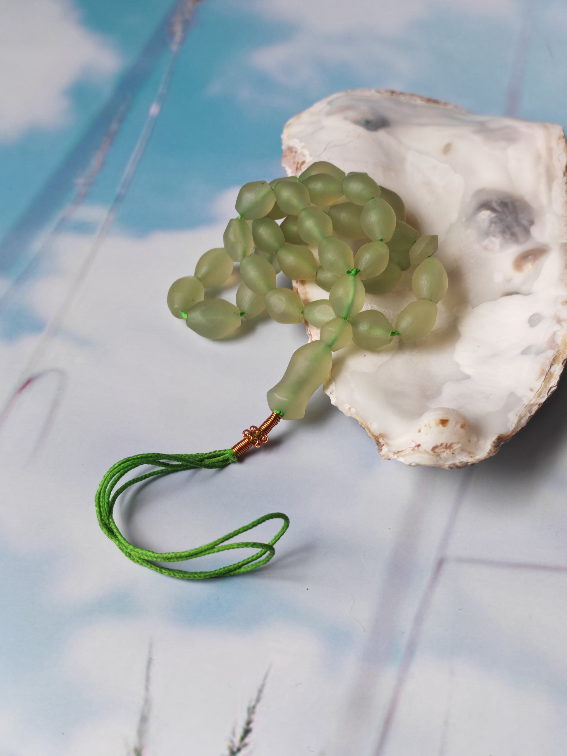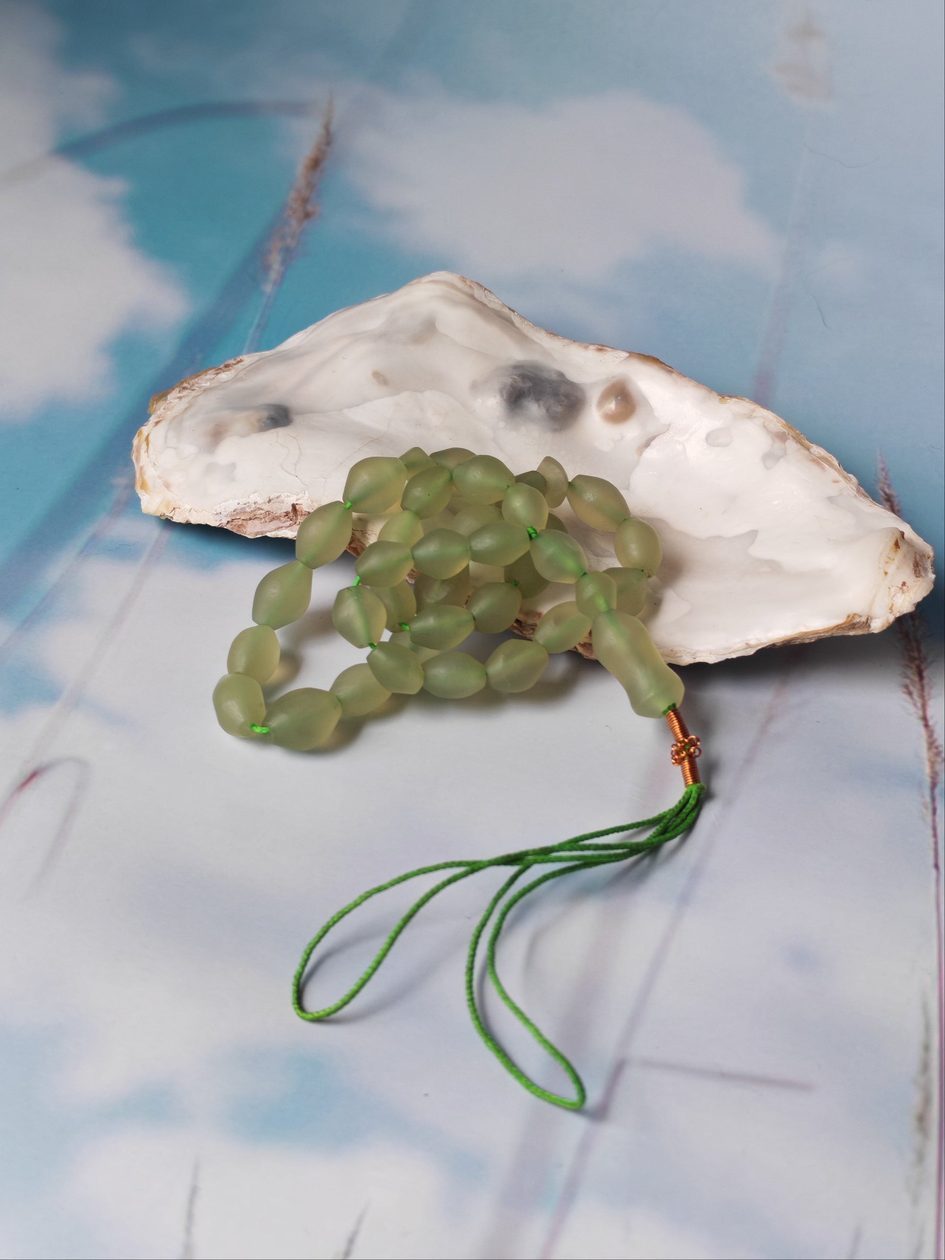 Natural Mint Green Shah Maqsood Tasbih 33 Beads Olive Shape