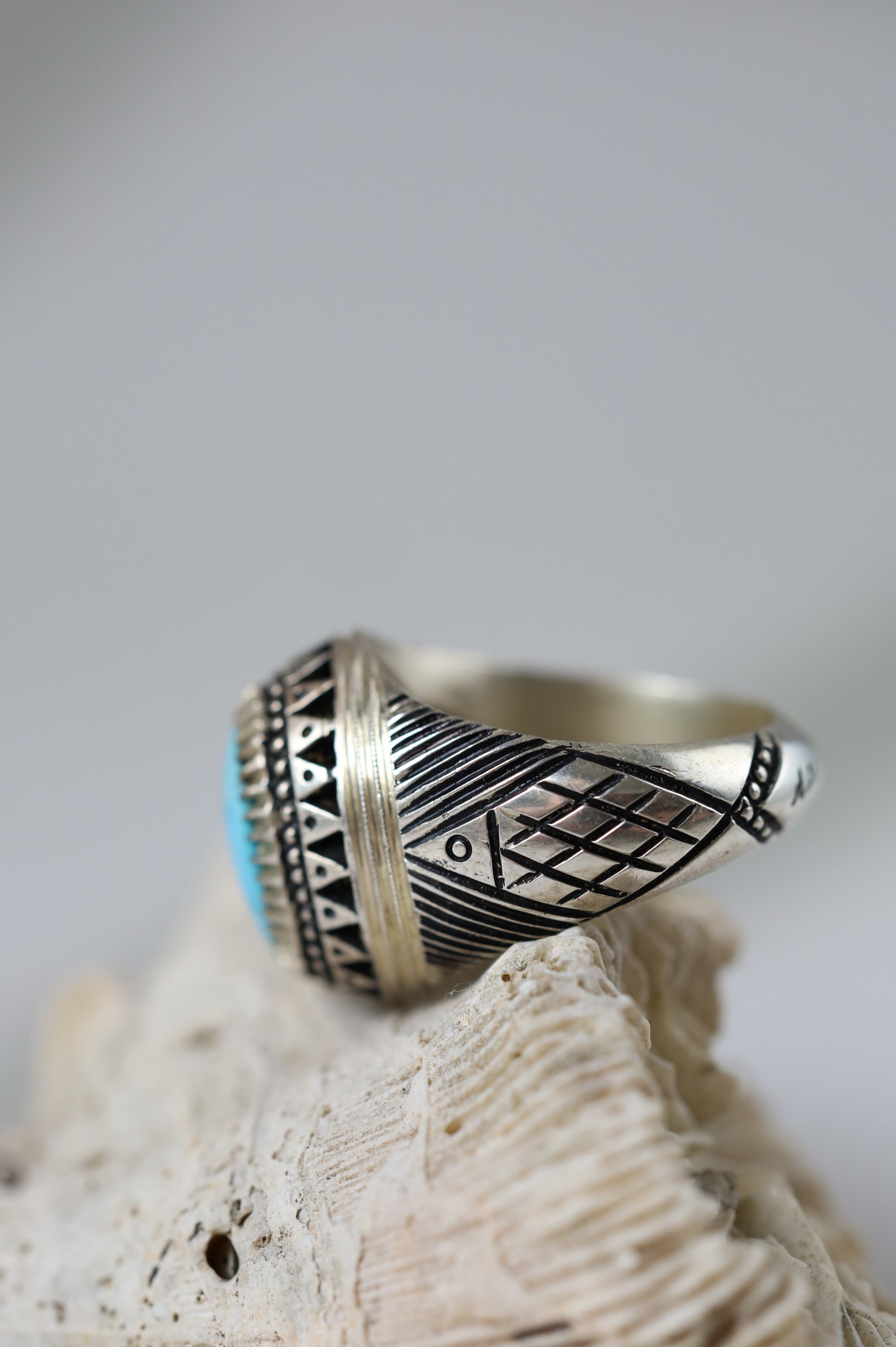 A refined ring set with natural Persian turquoise in an oval cut, framed in 925 sterling silver. The stone is small yet notably clear, with almost no inclusions and no cracks, giving it a clean, elegant appearance.