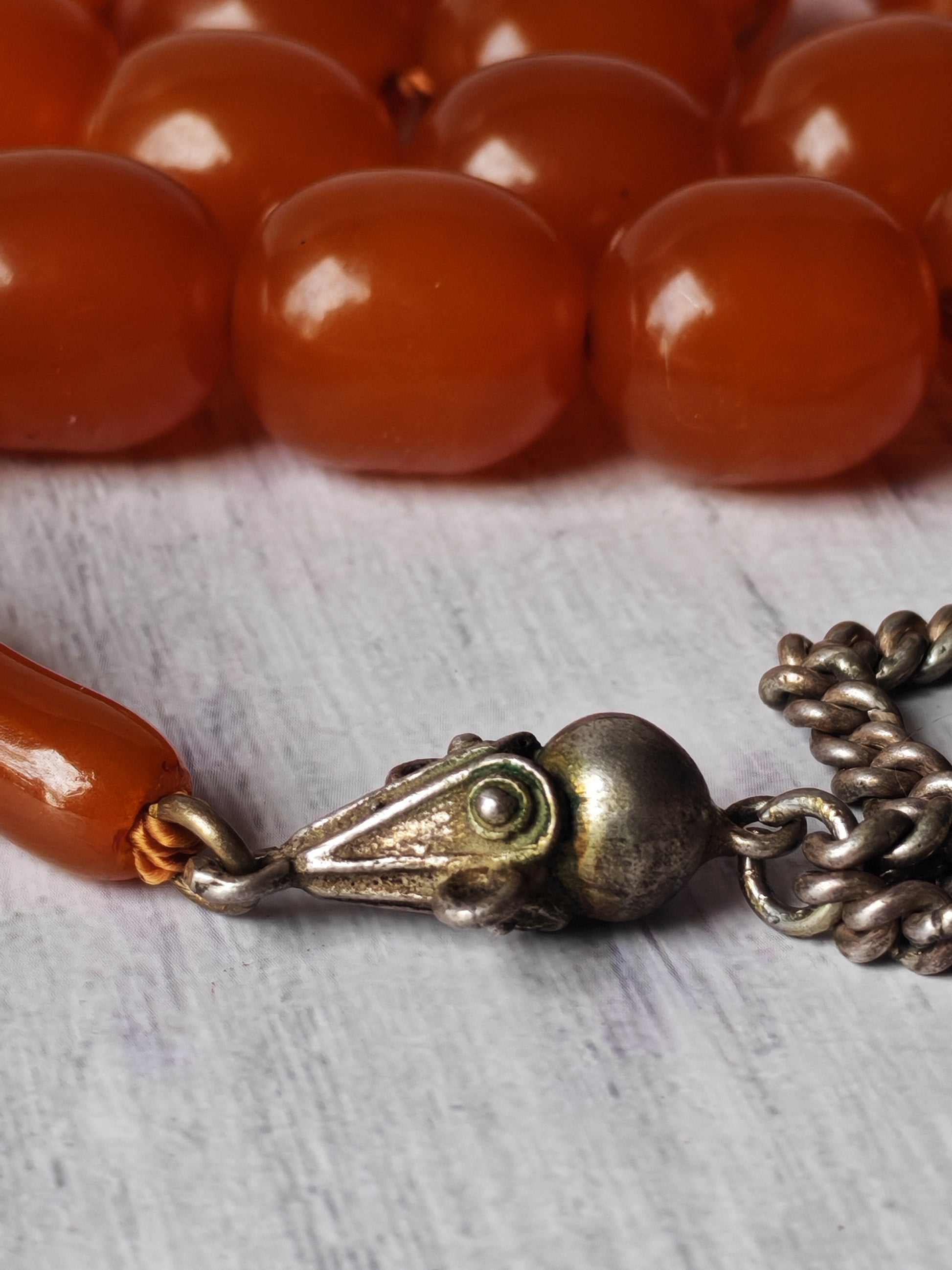 Antique German Bakelite Tasbih – Czech Craft | Deep Orange Honey Color | 33 Large Olive Beads | 126g