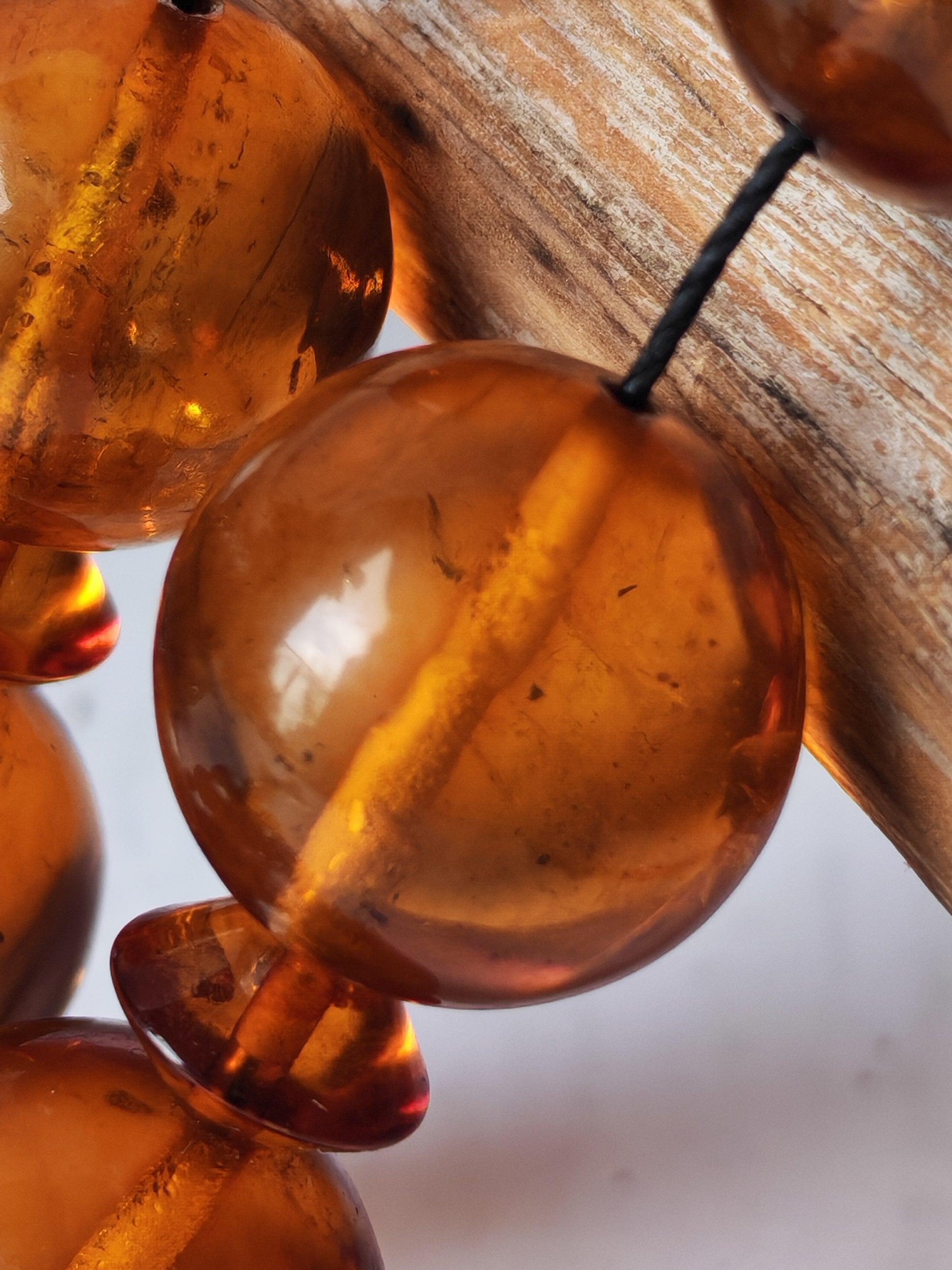 A powerful and highly collectible antique rosary crafted from melted Baltic amber originating from Kaliningrad, featuring impressive jumbo-sized beads with a strong visual presence. The amber displays a beautiful interplay of cognac and citron tones, enhanced by natural aging and the melting process, giving each bead depth, character, and individuality.