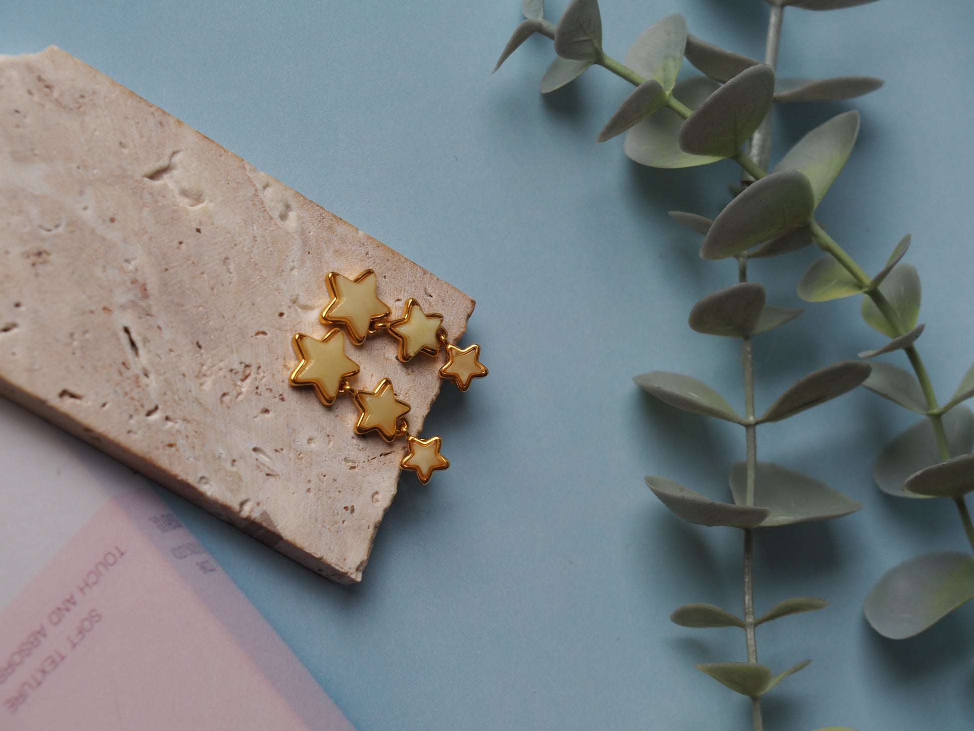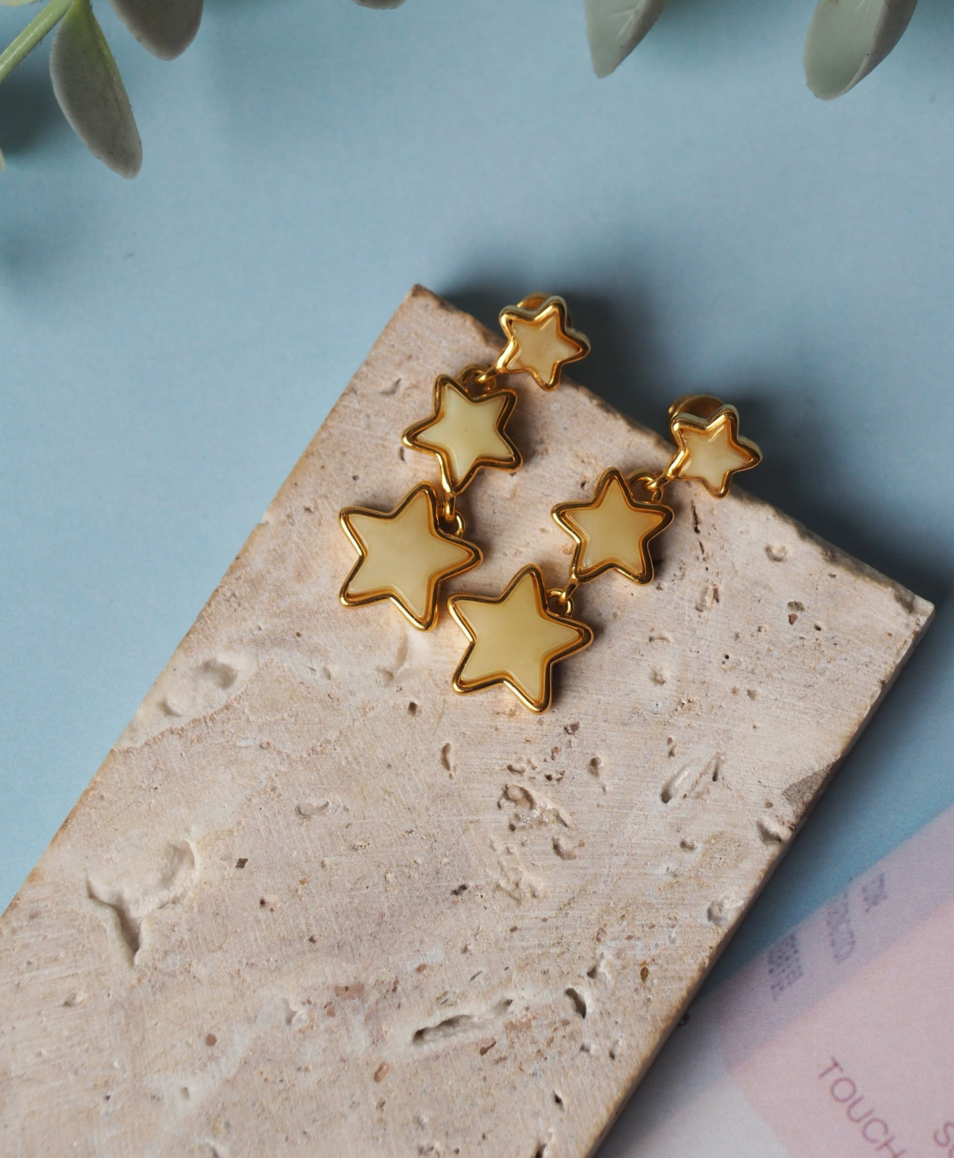 Butterscotch Studded Three Stars Amber Earrings Gold Pleated