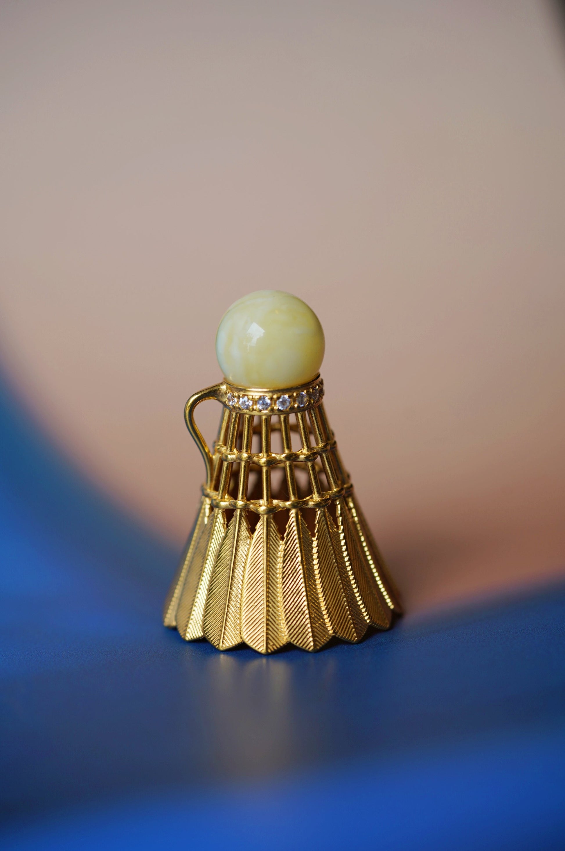 100% Natural Amber. Royal White Color. Shape - Feather Shuttlecock.