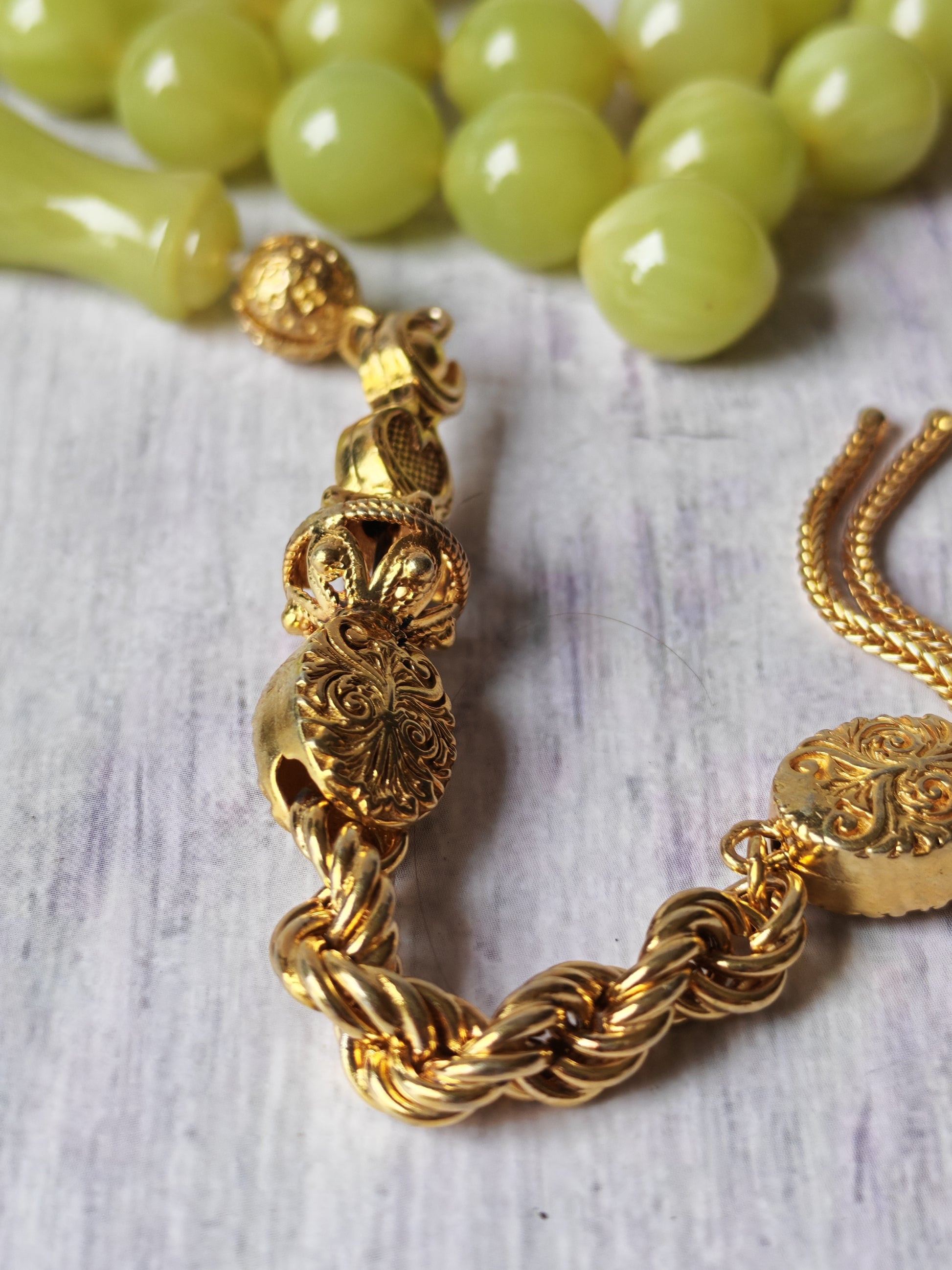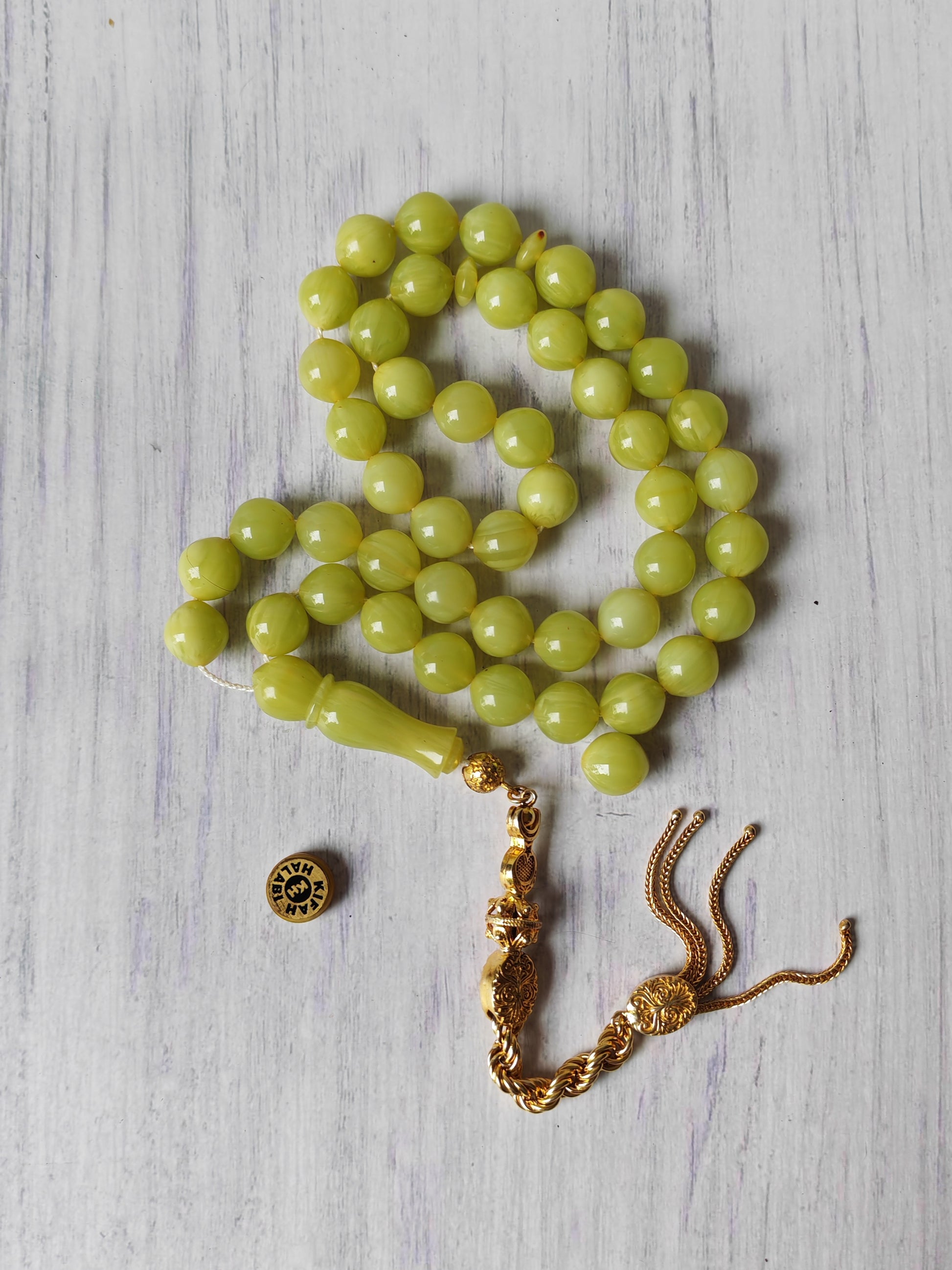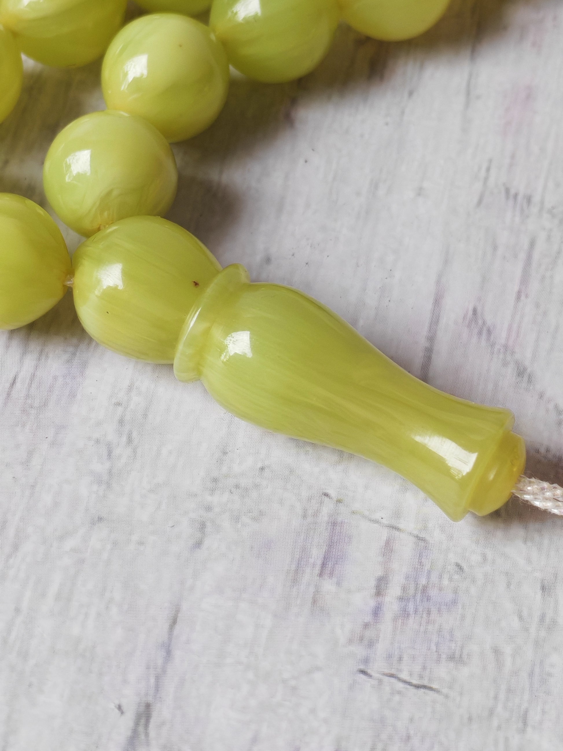 Light Lime Green German Bakelite Tasbih by Kifah Halabi – 45 Istanbul-Shaped Beads