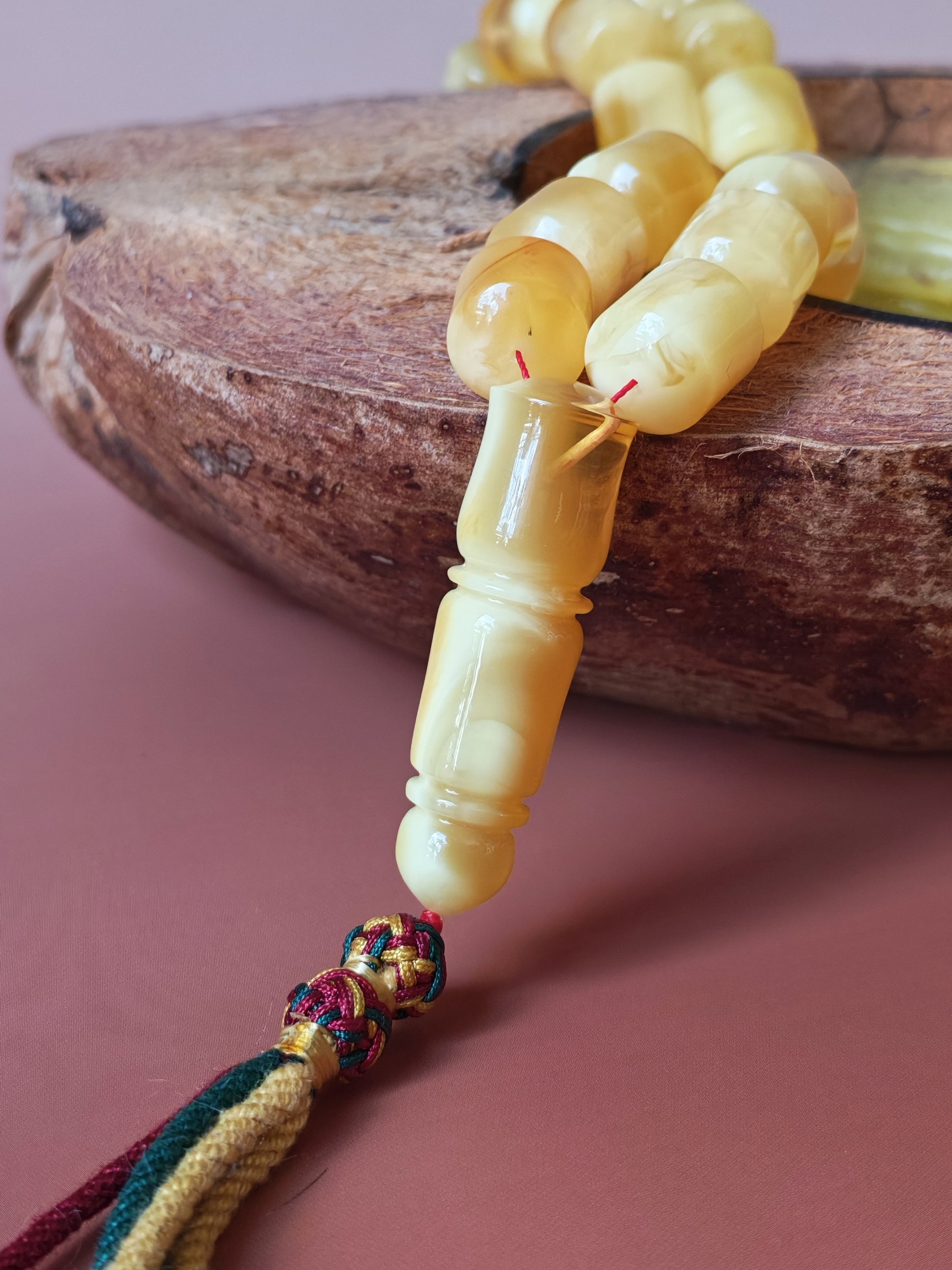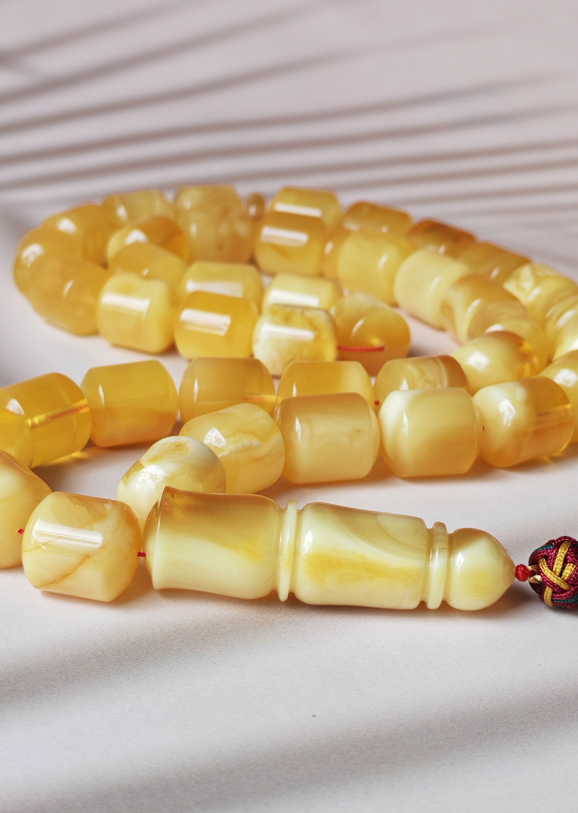 This unique jumbo rosary exudes presence and sophistication — a statement piece meant for connoisseurs who value the exceptional beauty of natural amber in its purest form.
