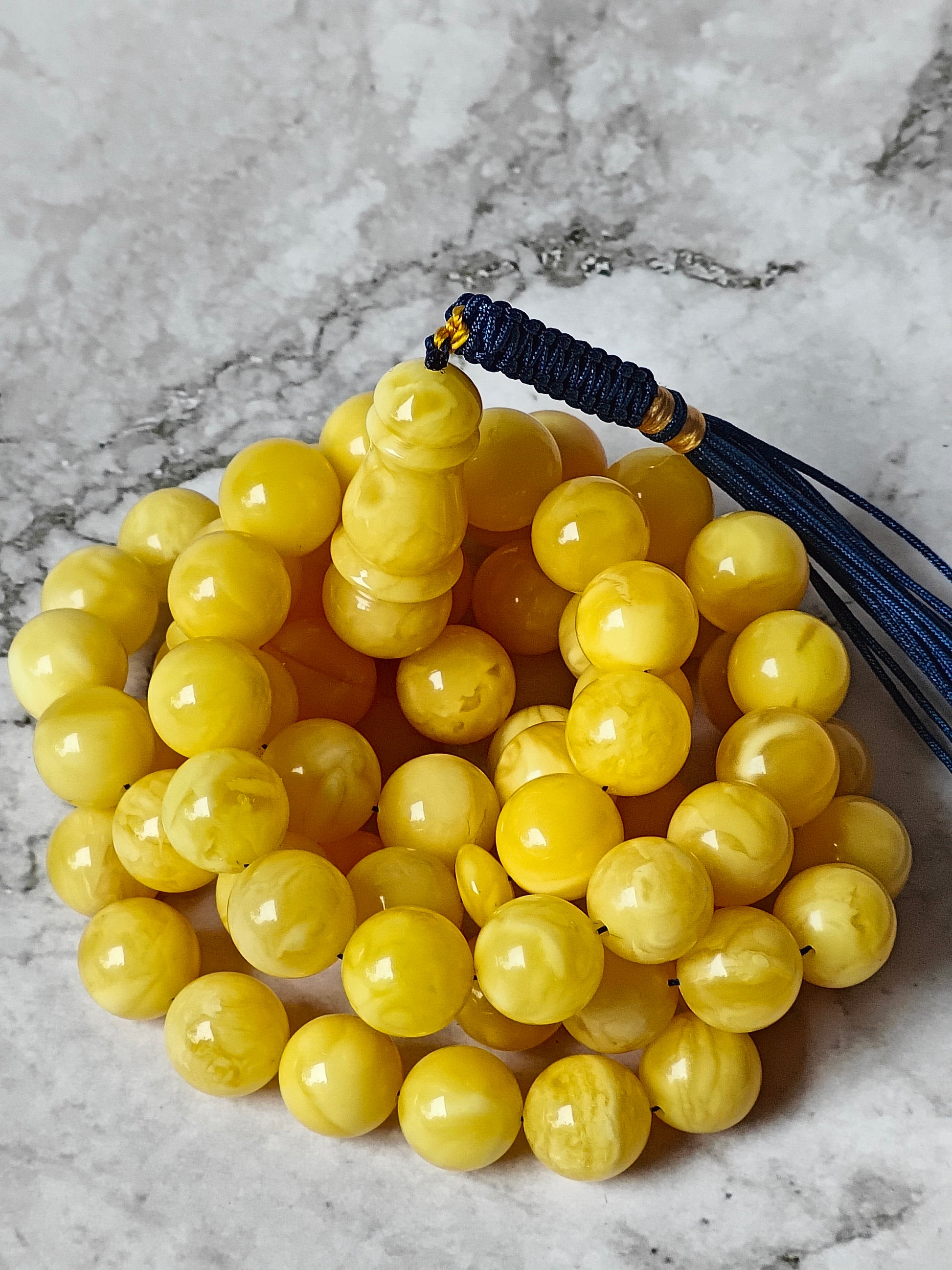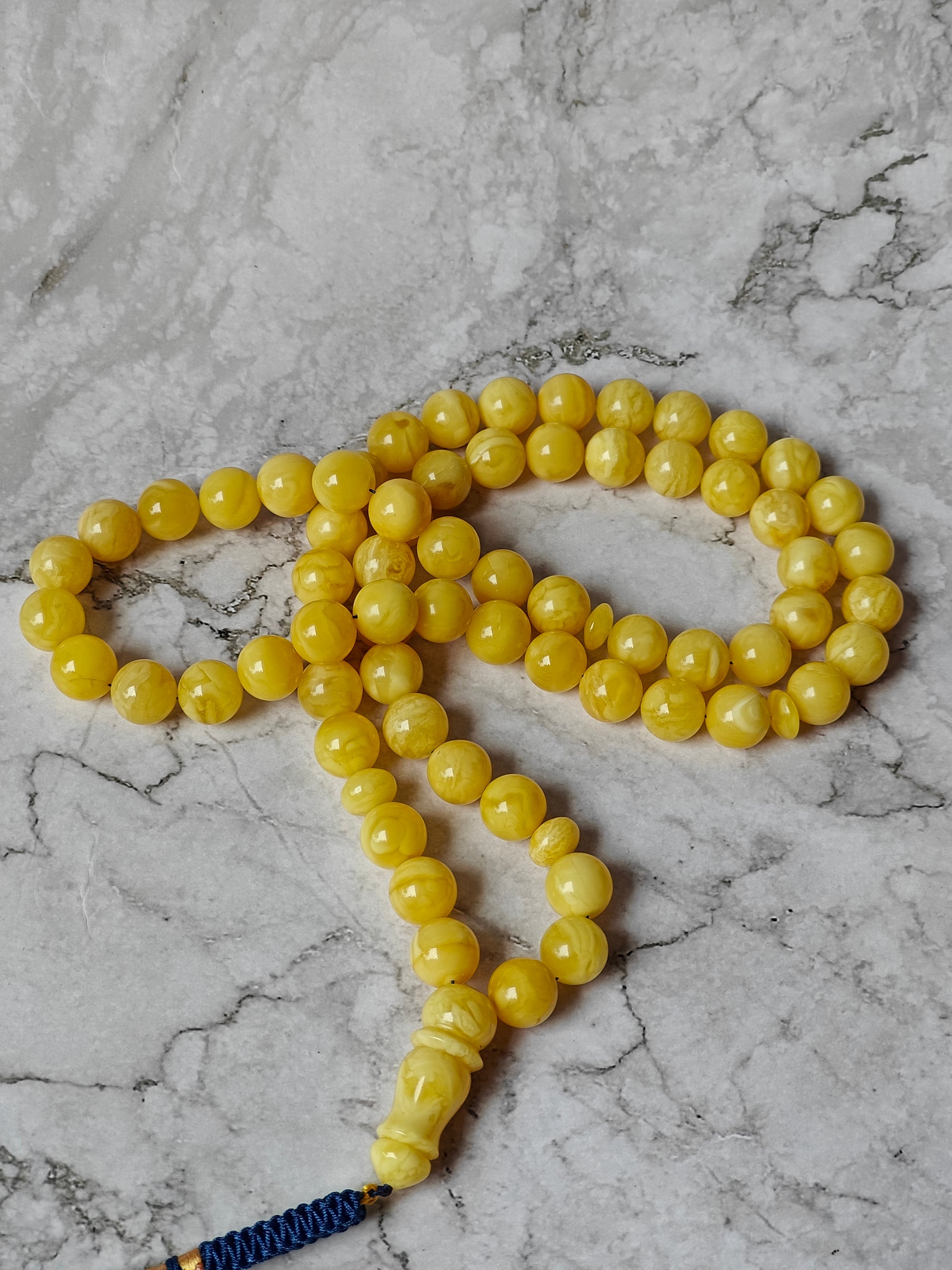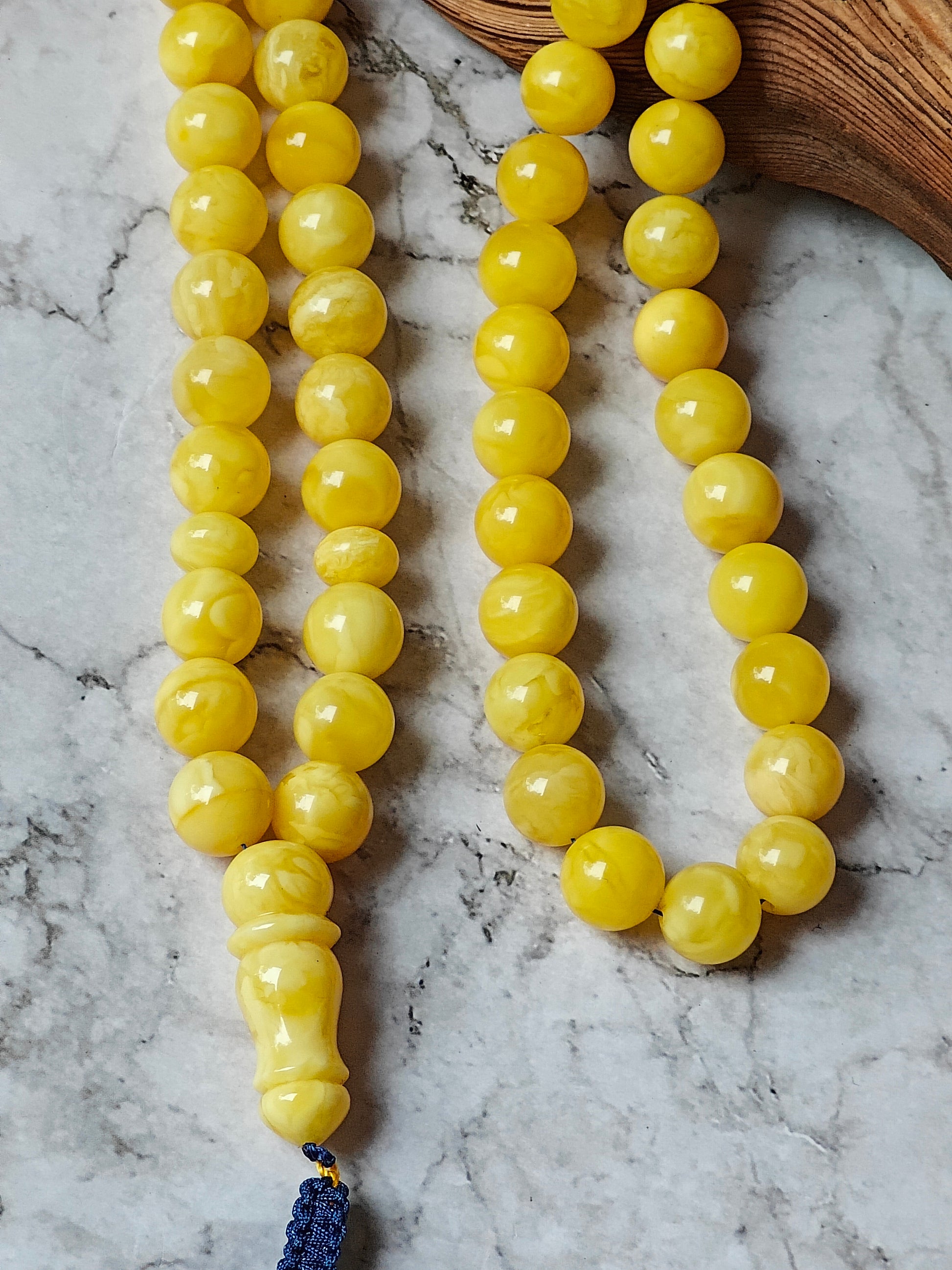 Natural Butterscotch Amber Rosary with Royal White Inclusions 67 Beads