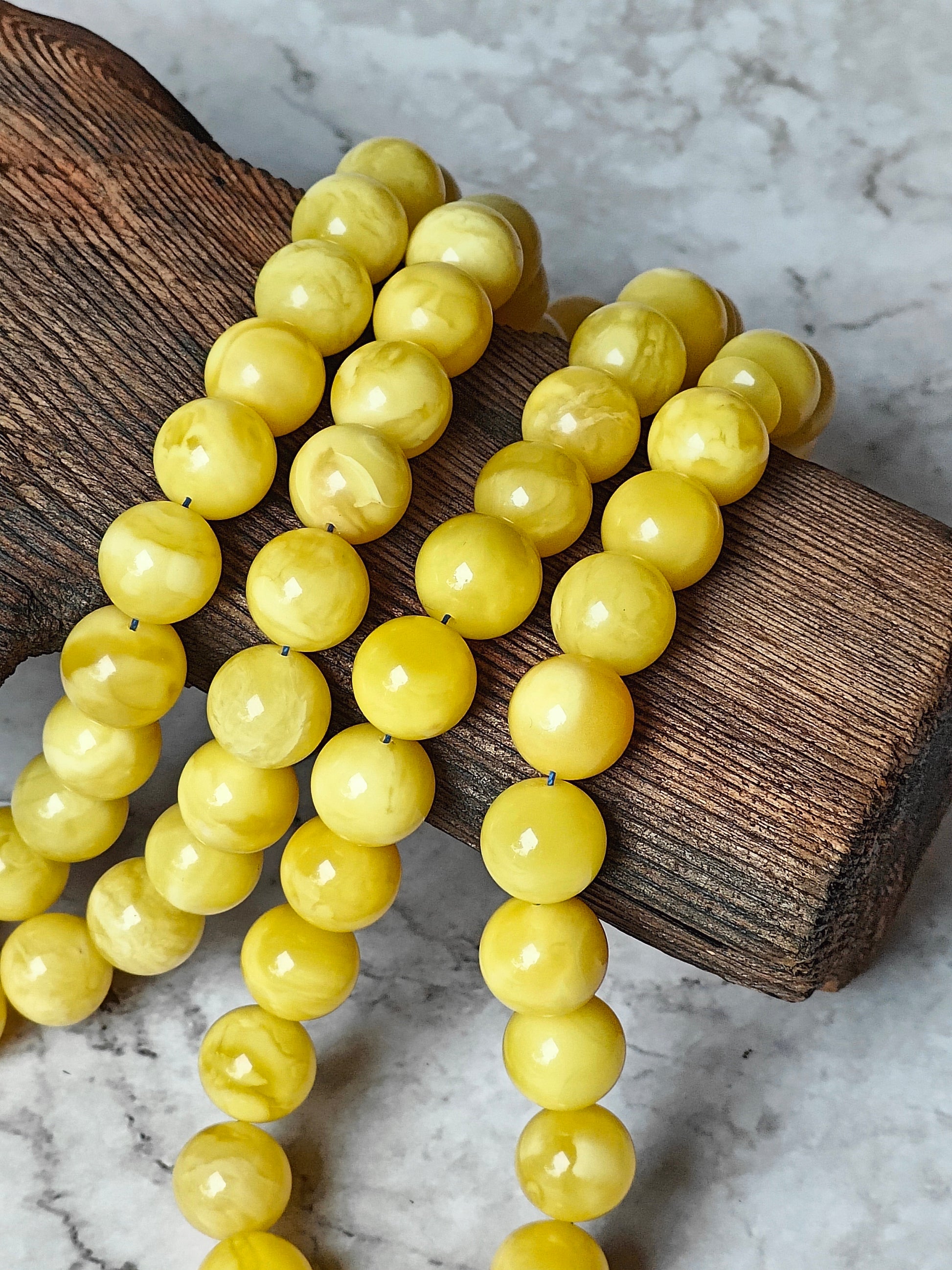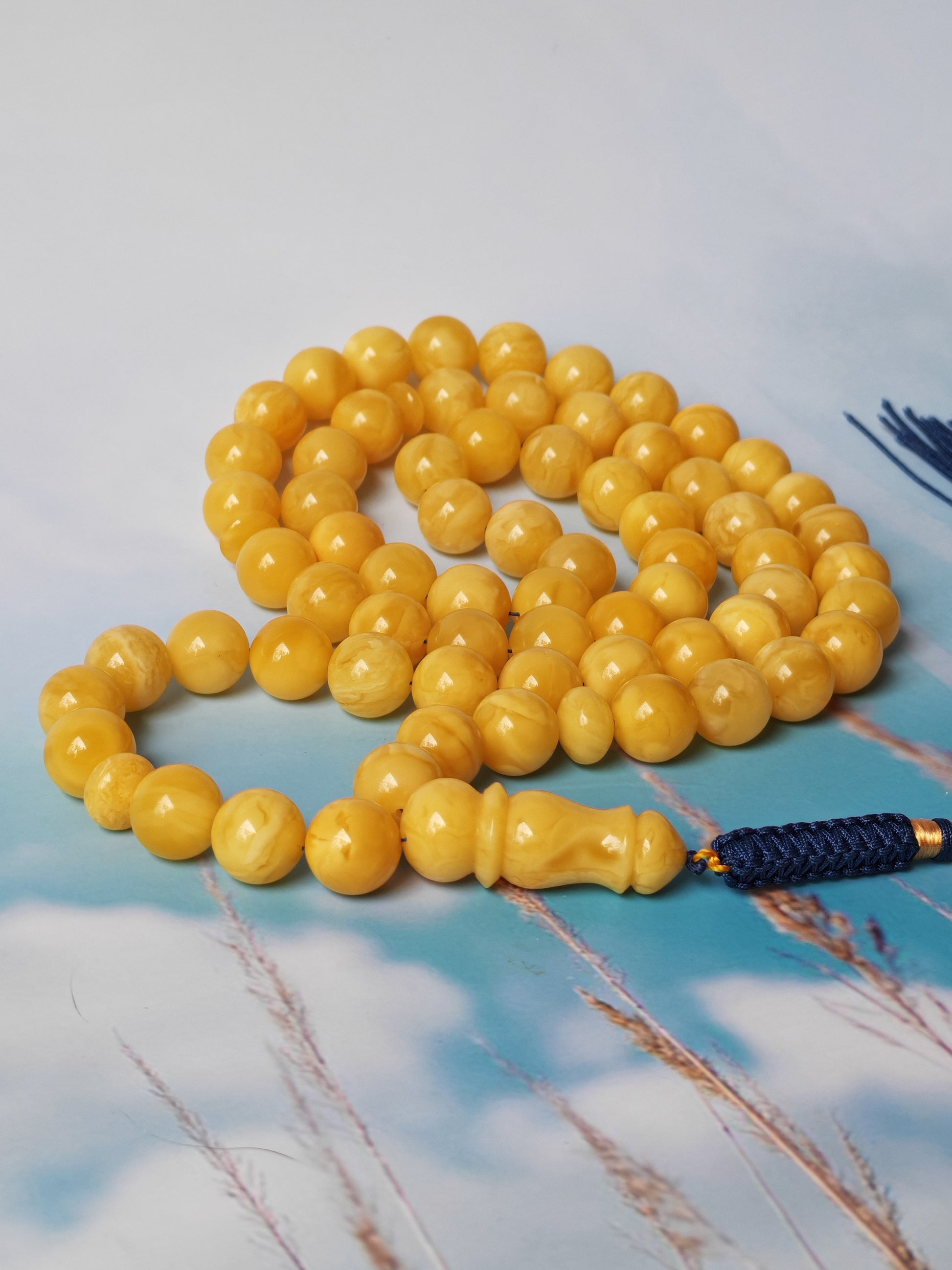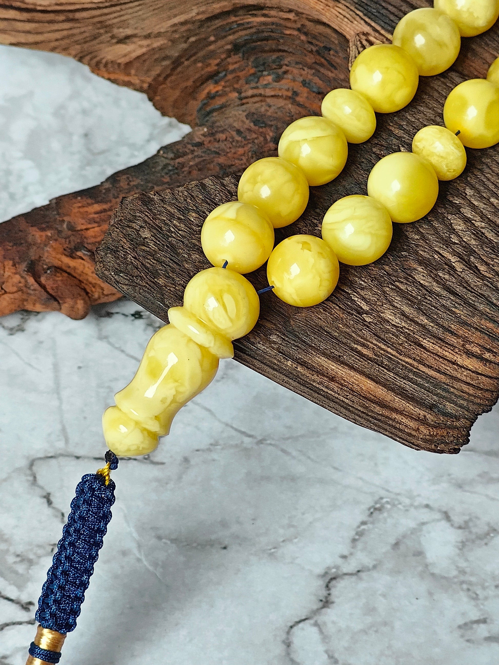 Natural Butterscotch Amber Rosary with Royal White Inclusions 67 Beads