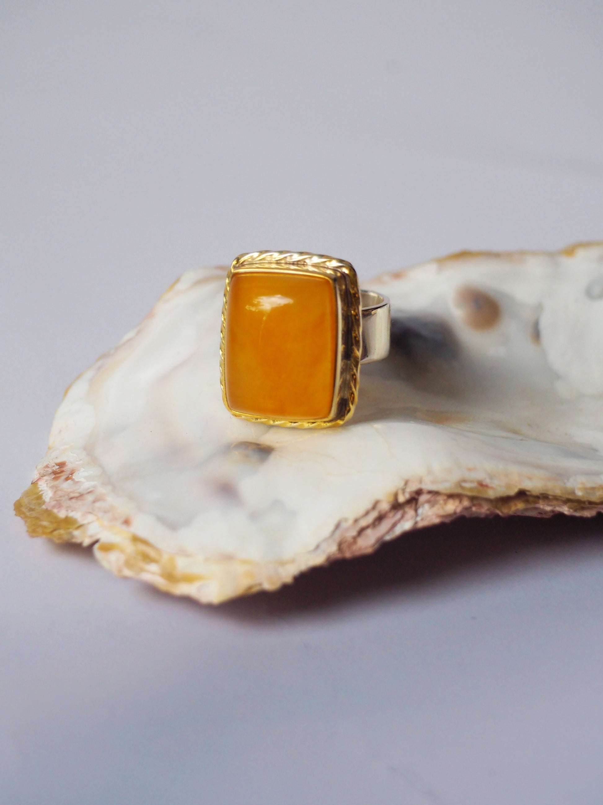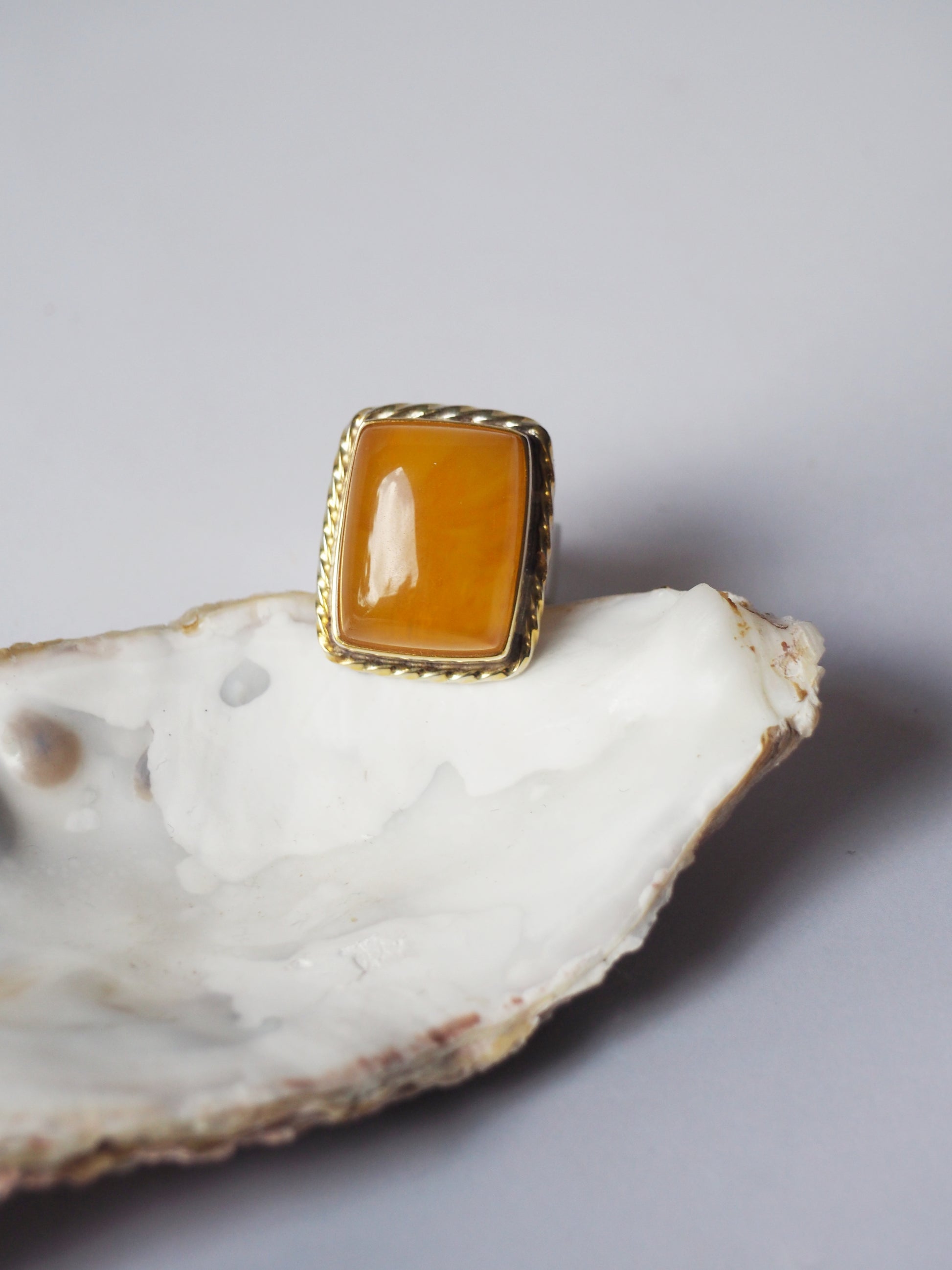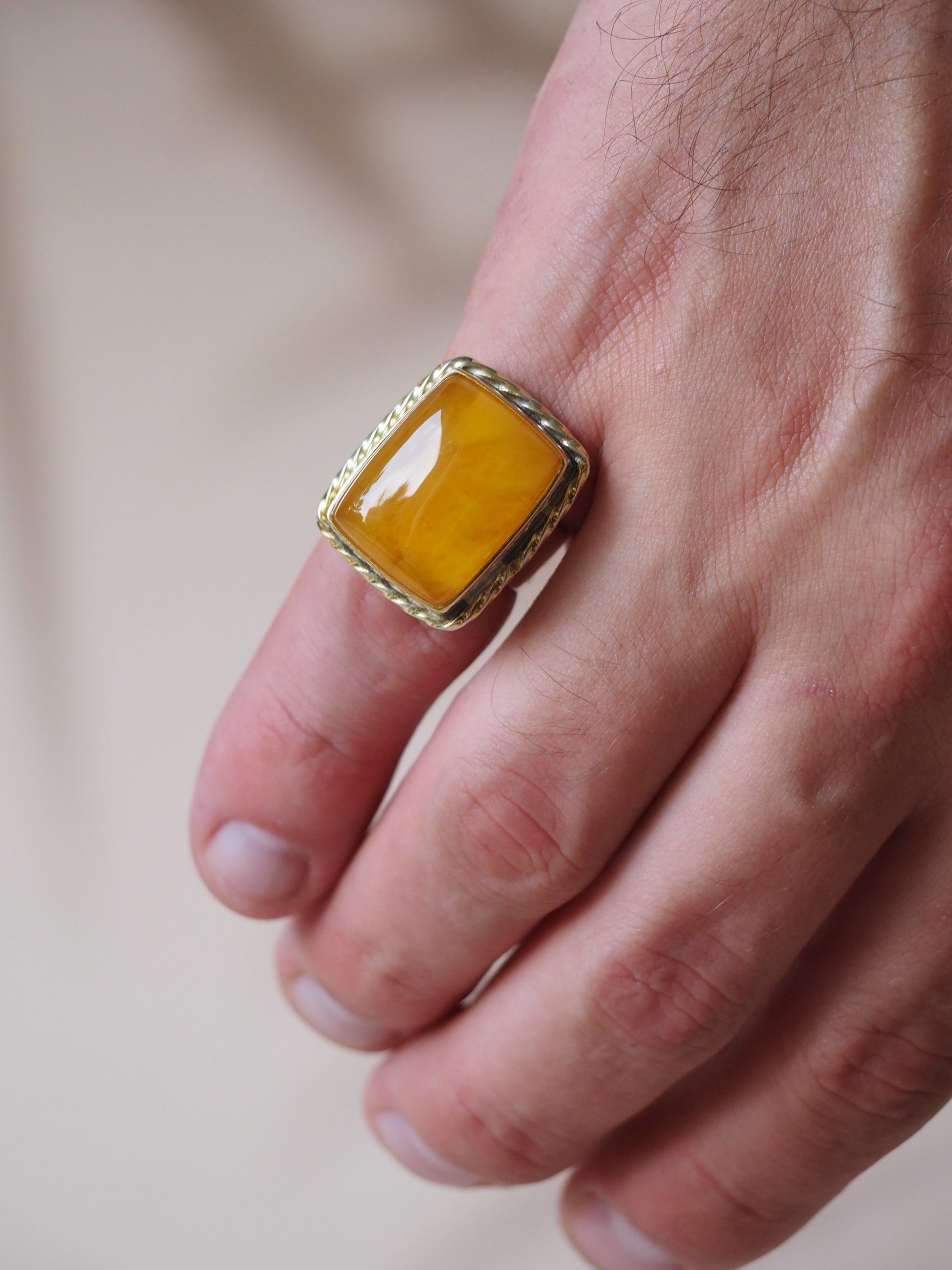 Rectangular Honey Amber Ring