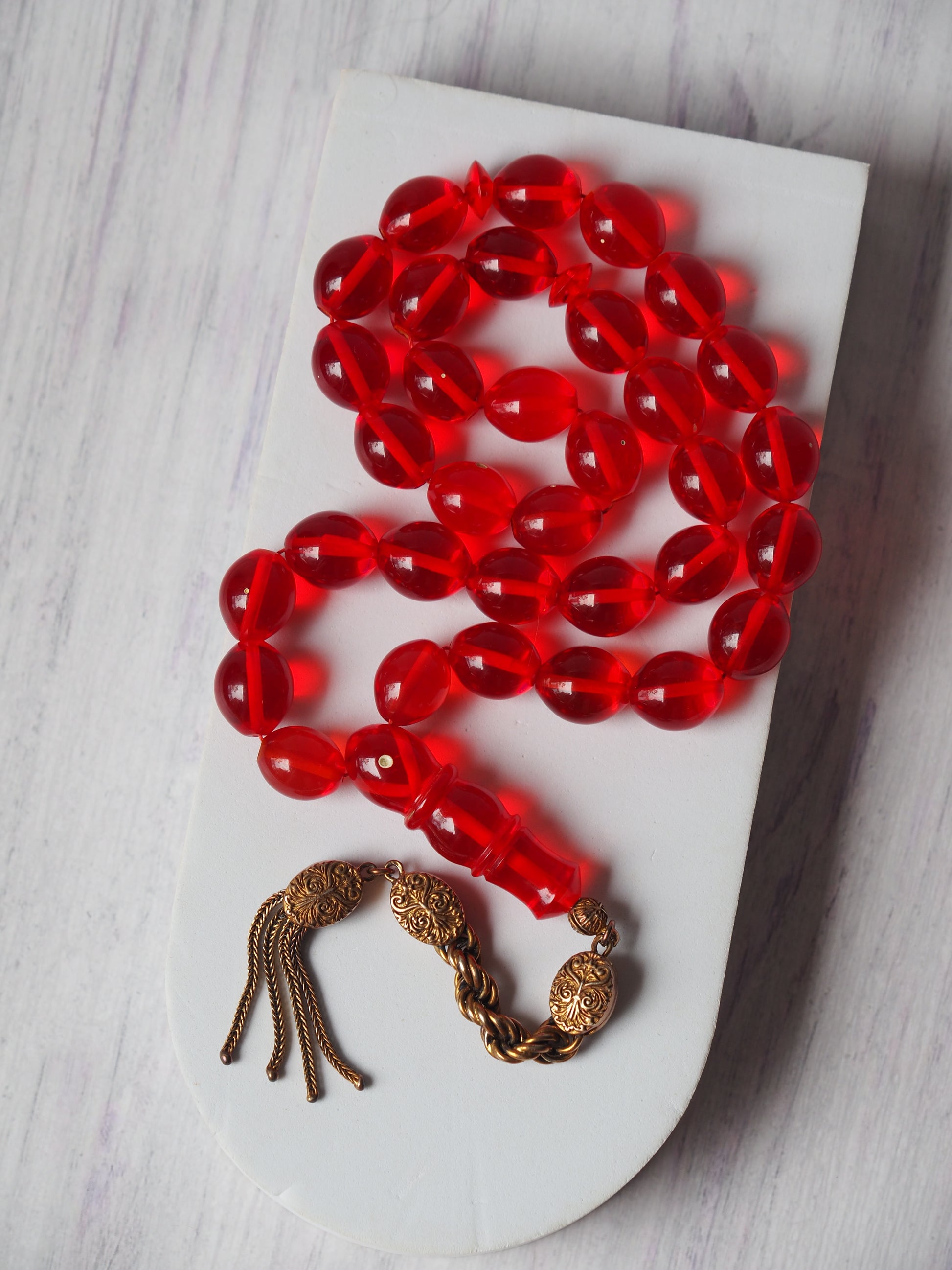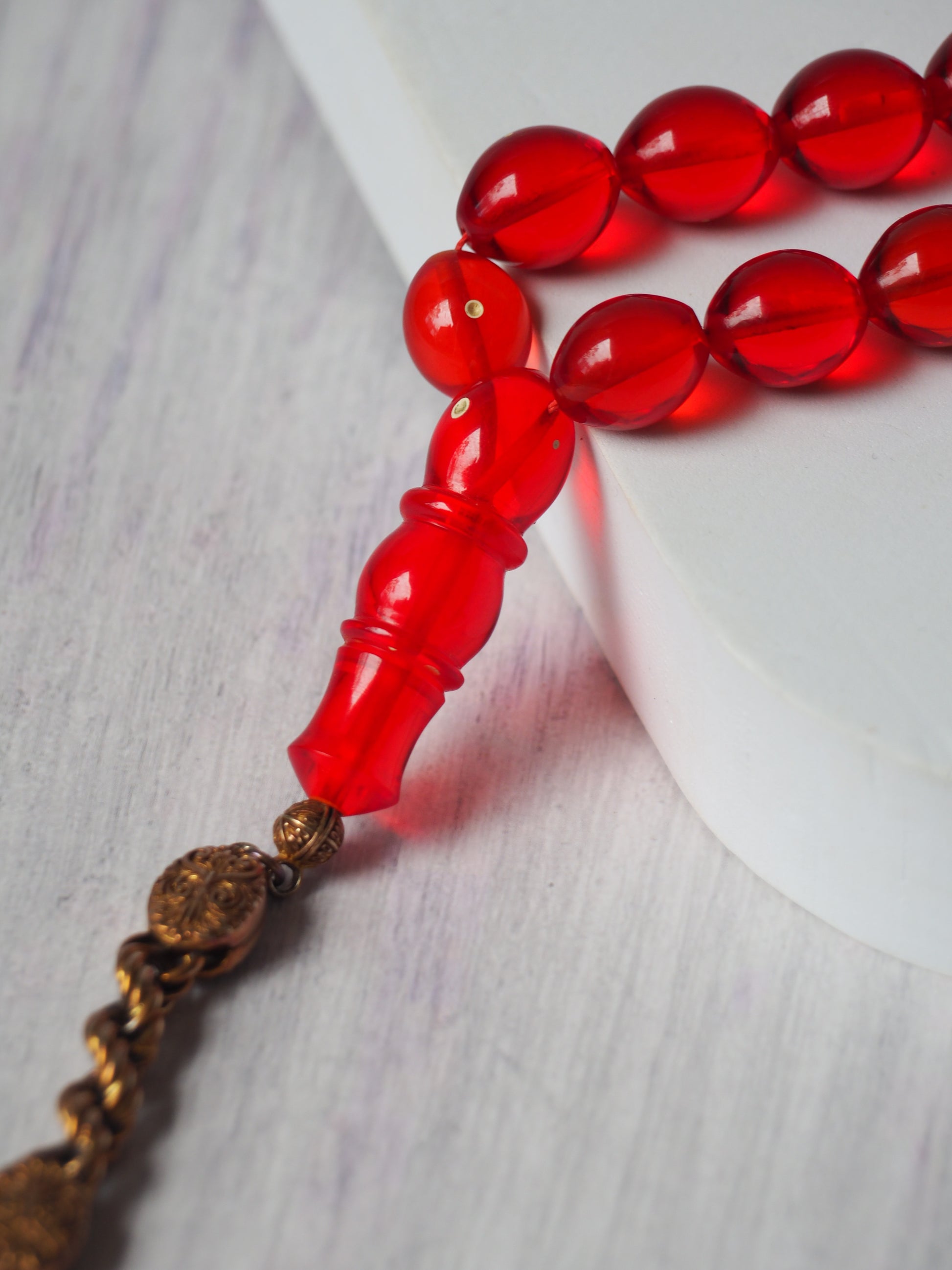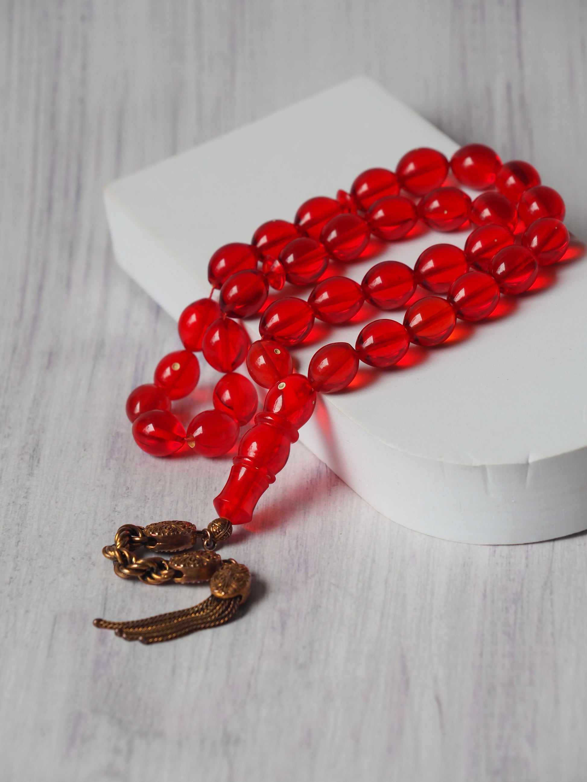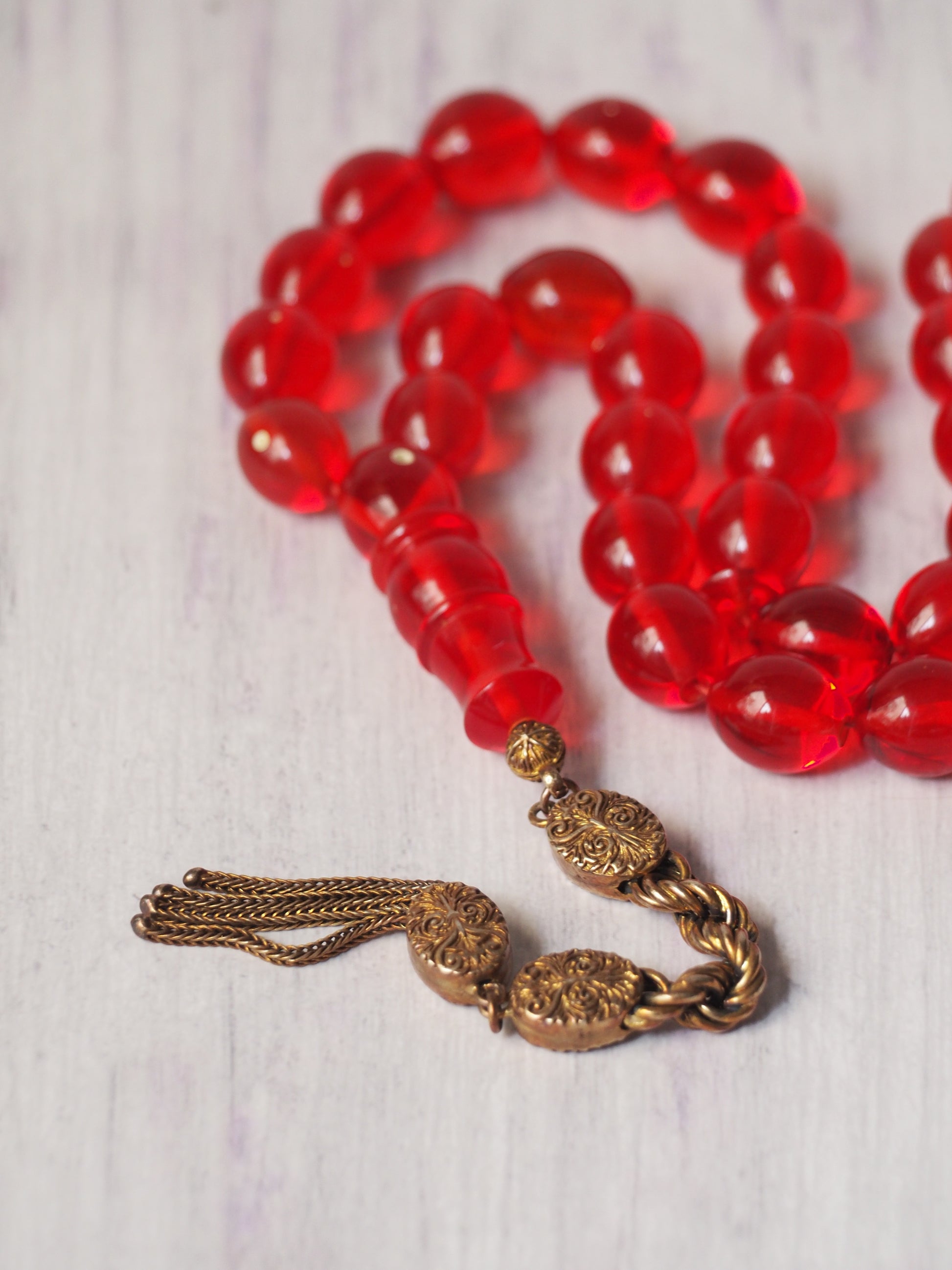 Red Olive Shaped Bakelite Rosary 33 Beads