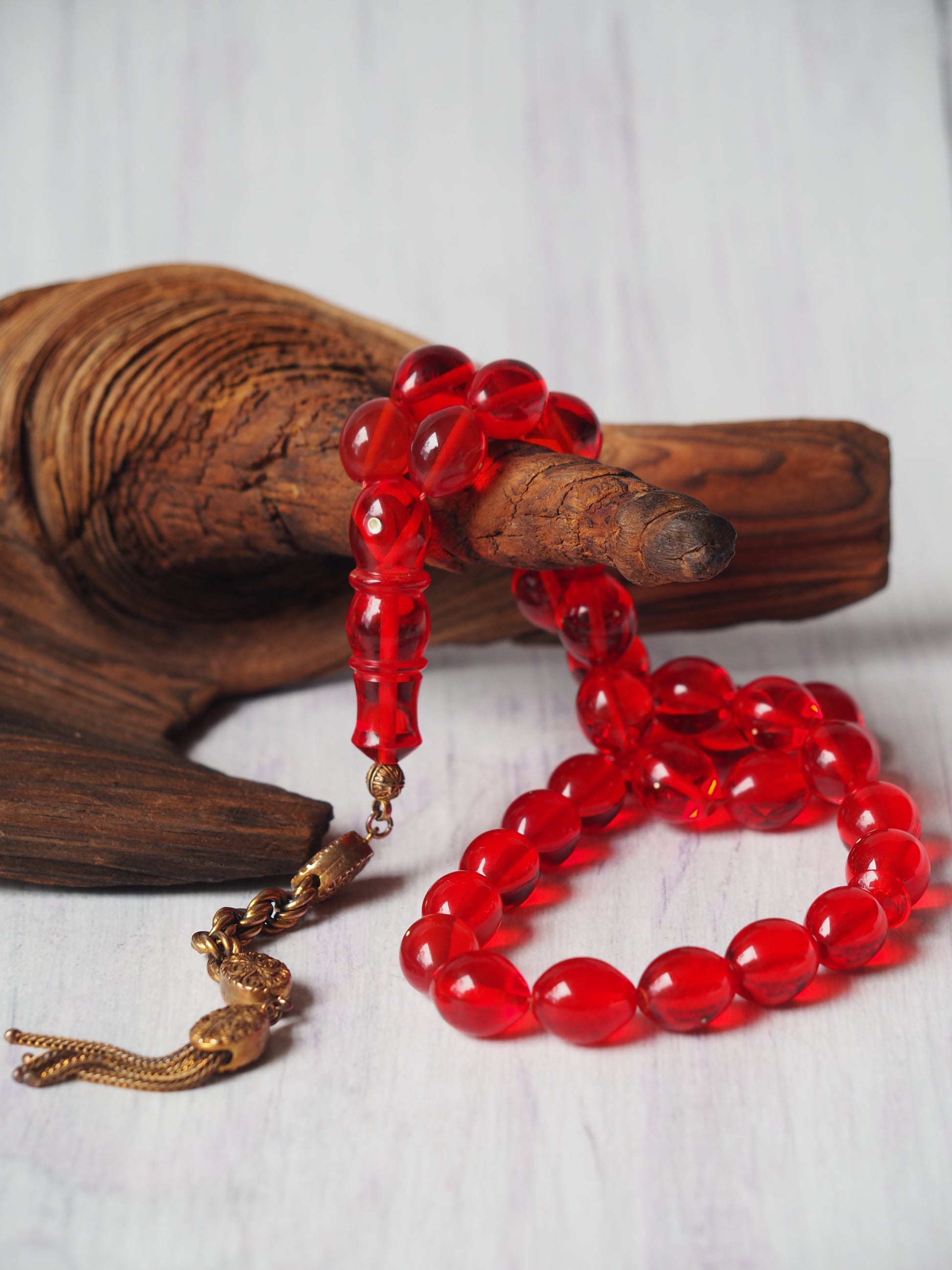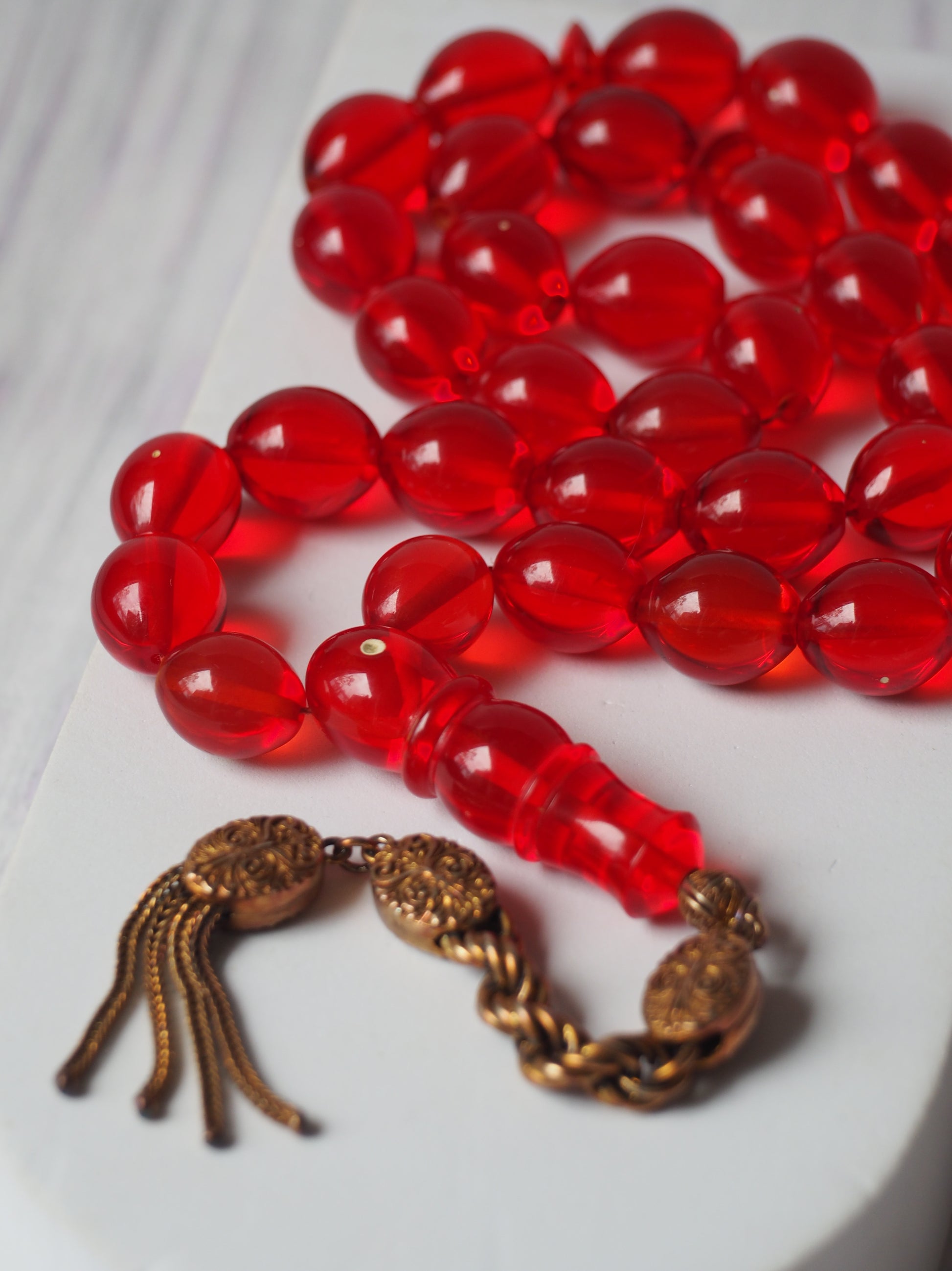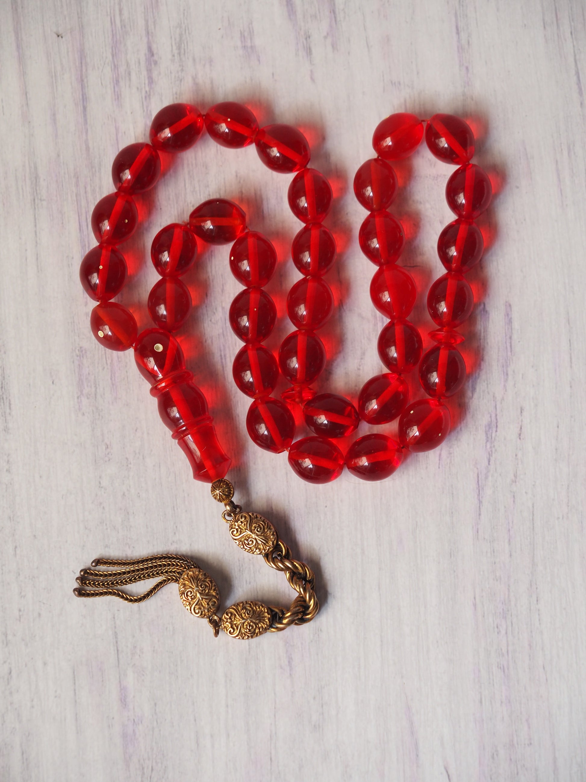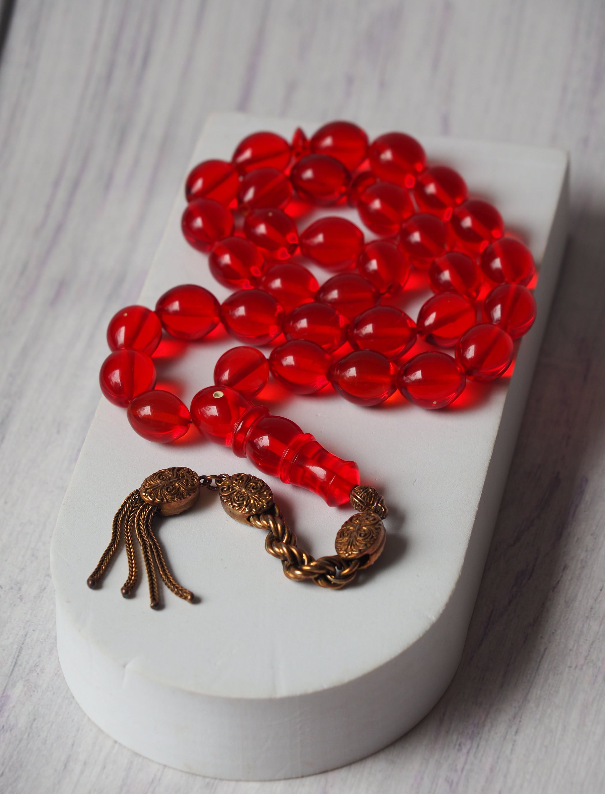 Red Olive Shaped Bakelite Rosary 33 Beads