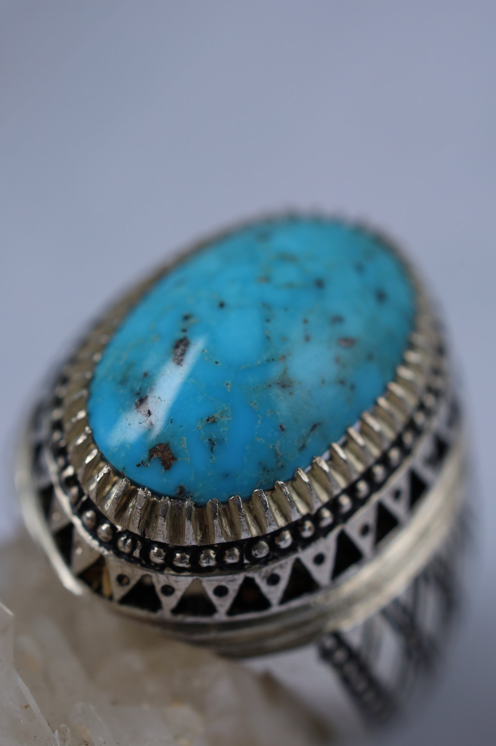 Large Persian Turquoise Ring in 925 silver – Neyshabur Stone | Handcrafted