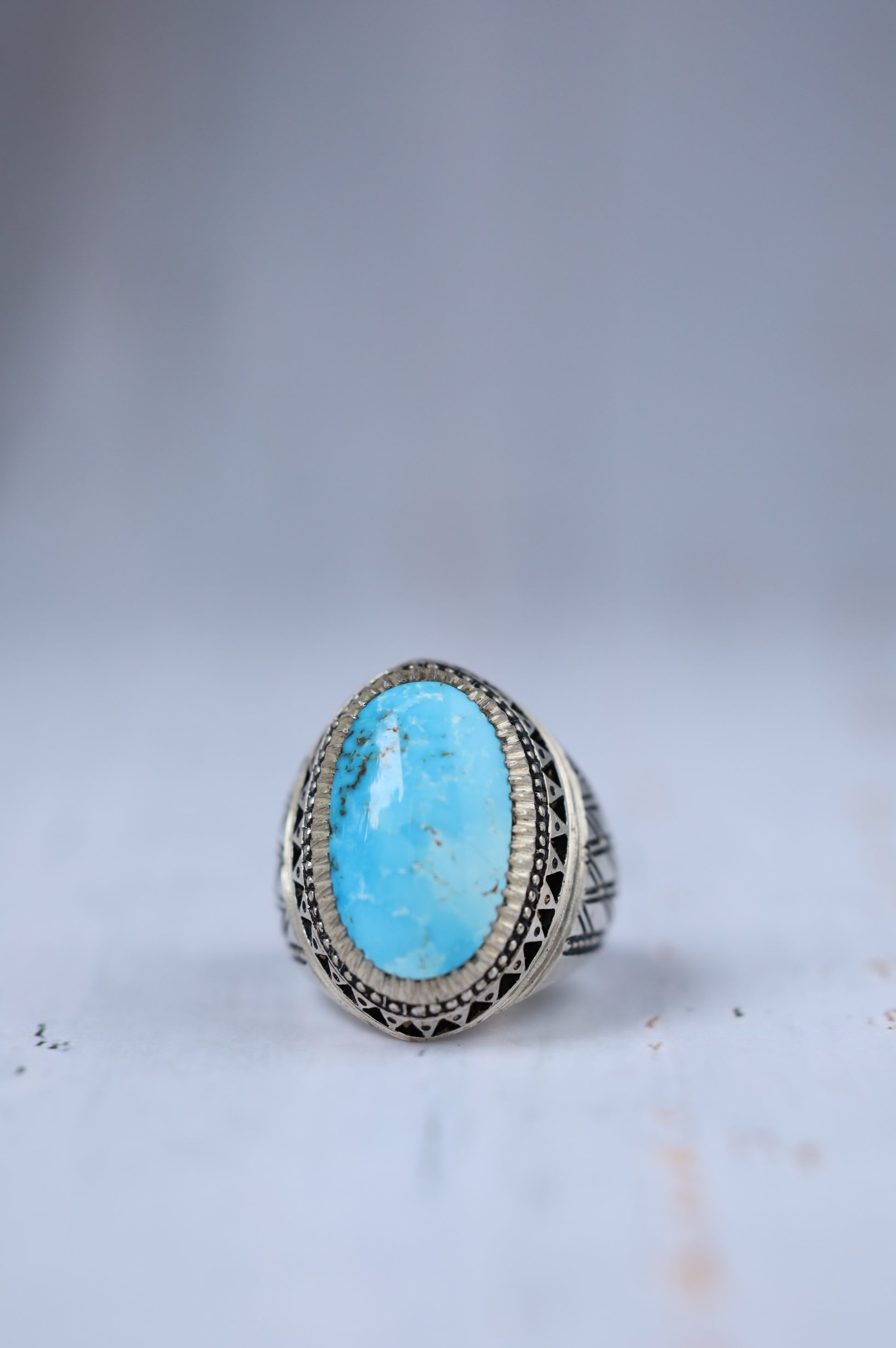 Large Persian Turquoise Ring in Silver – Neyshabur | Handcrafted by Rafiee