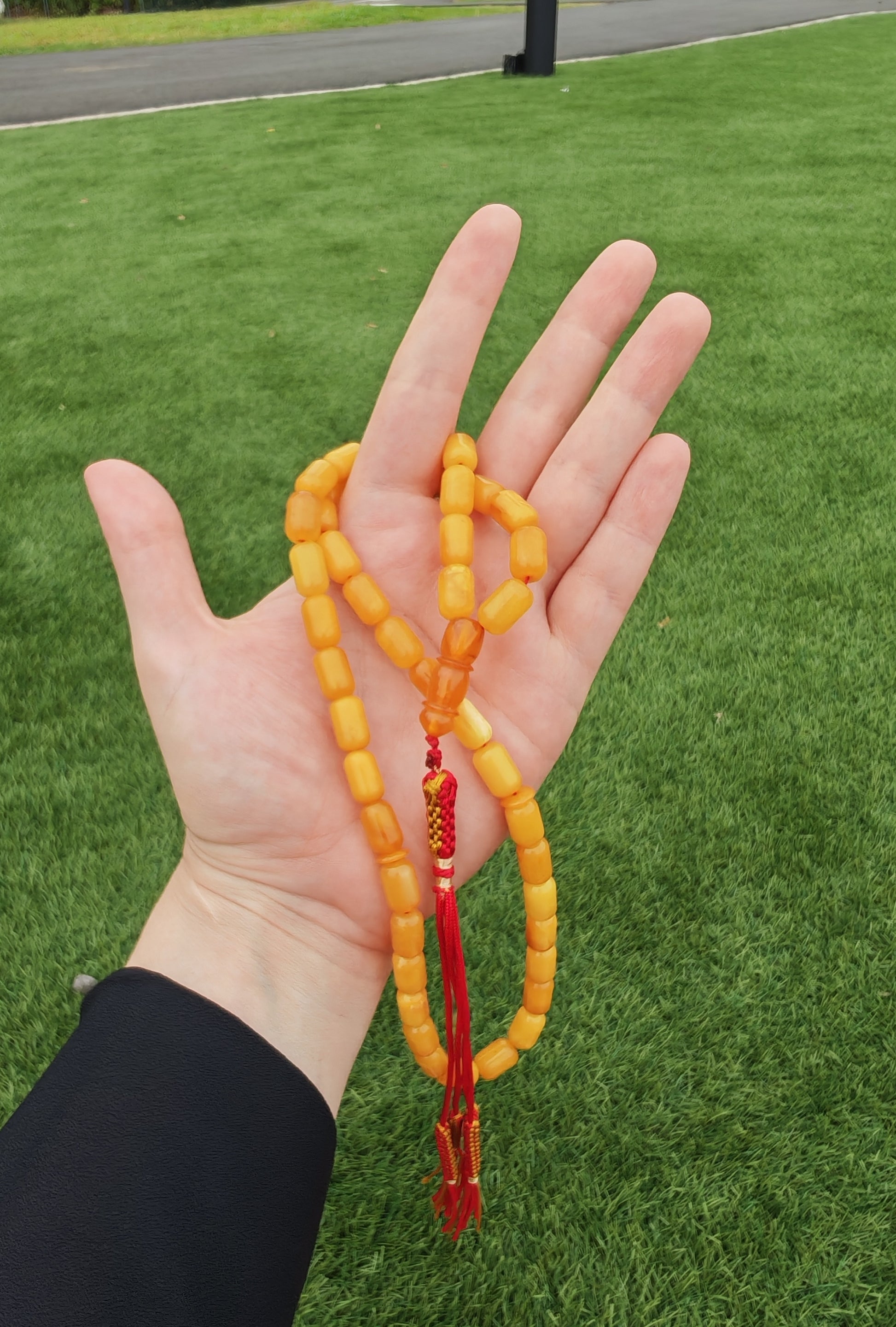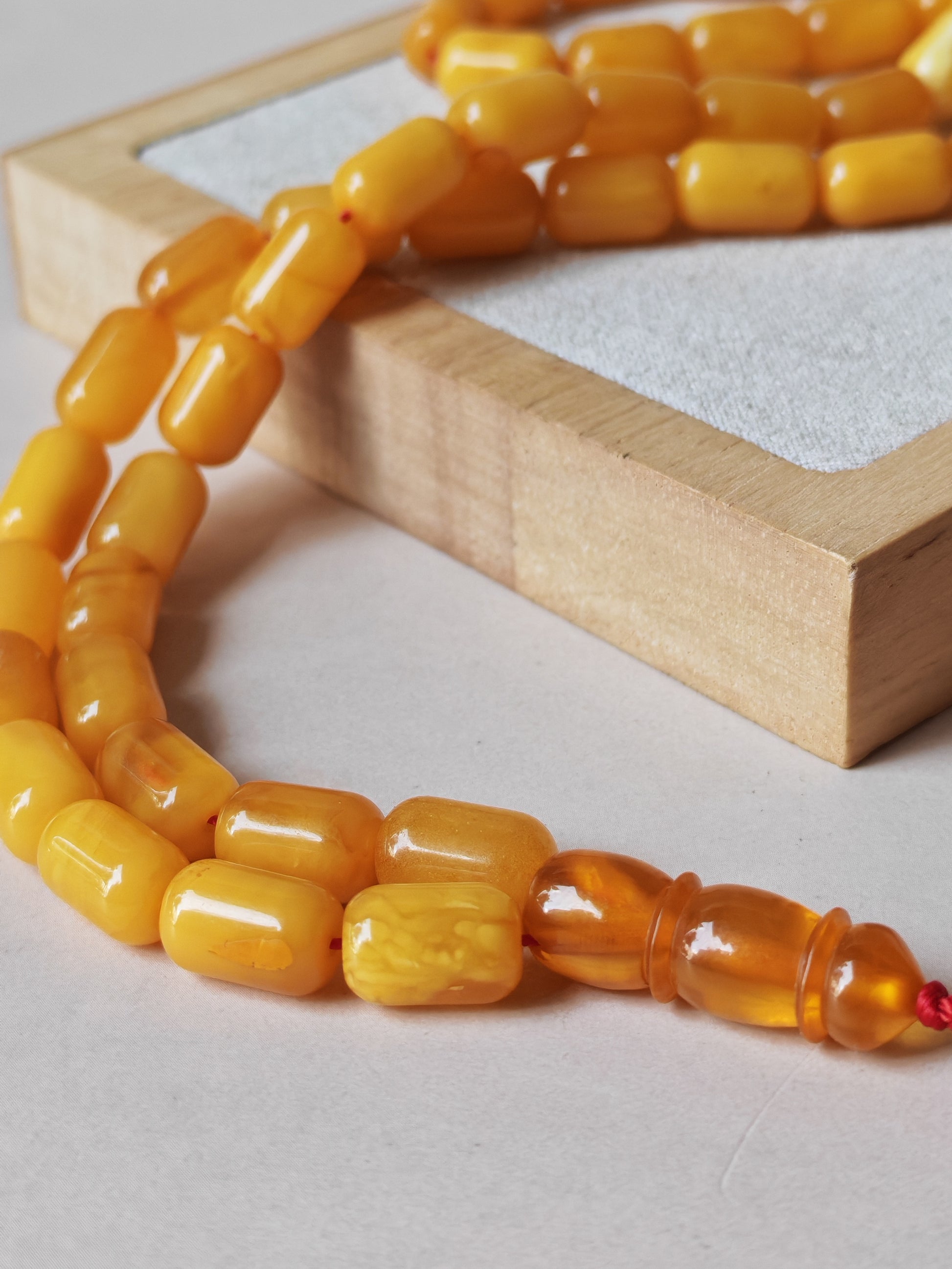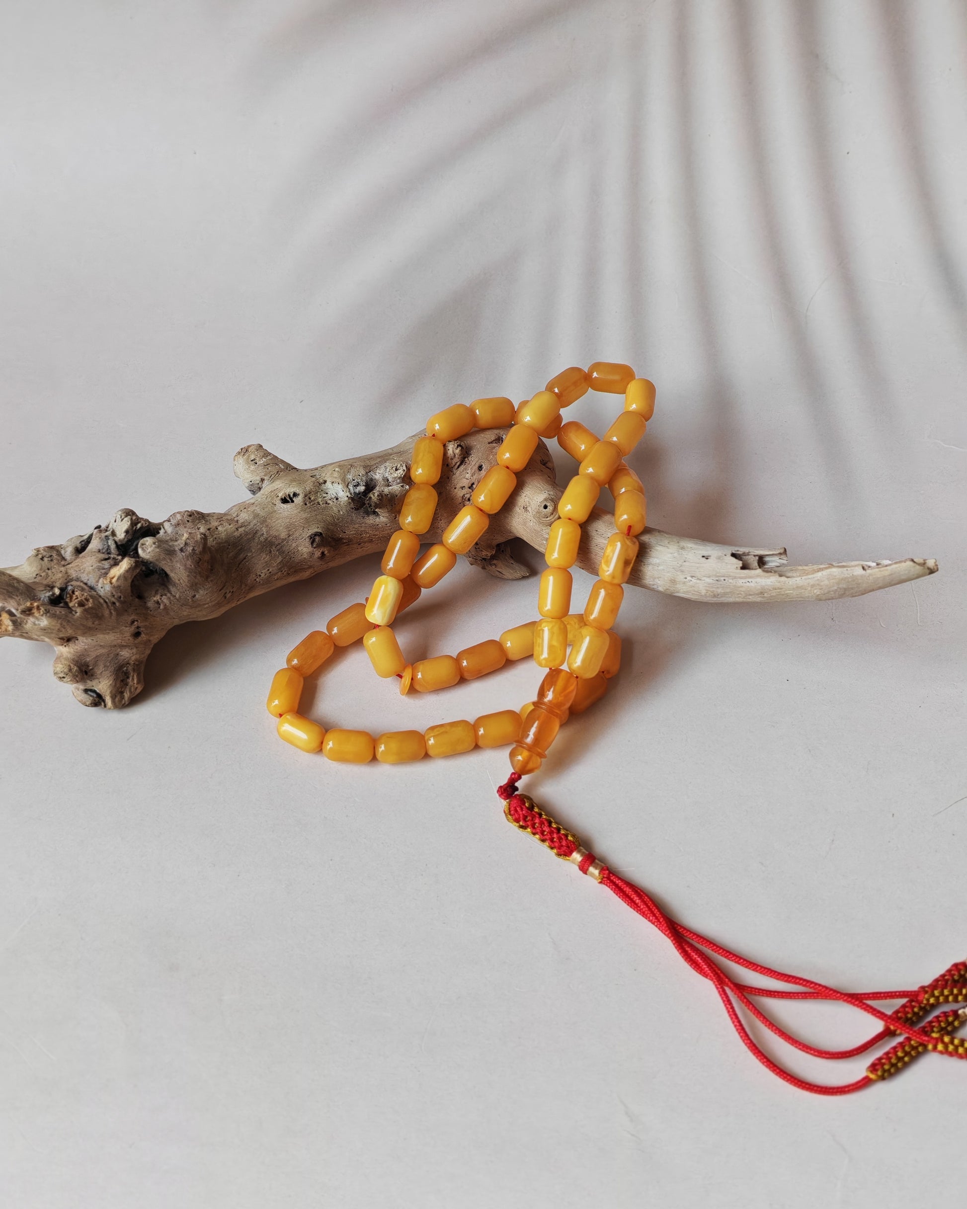 The piece is completed with a transparent aged butterscotch imam, gently contrasting with the beads while maintaining a cohesive, refined look. Lightweight and perfectly proportioned, this rosary is designed for comfortable everyday use, combining vintage warmth with practical elegance.