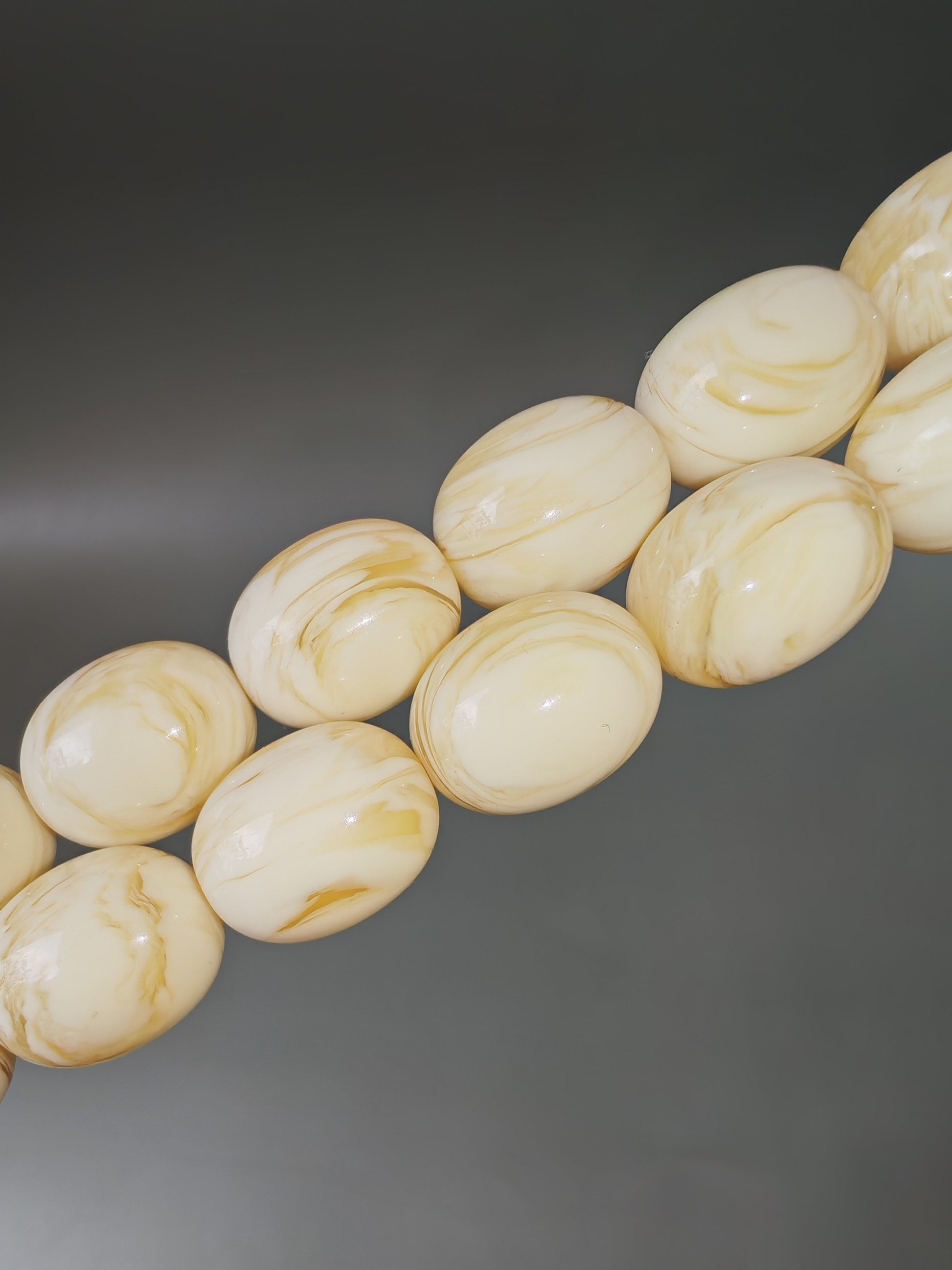 A refined 33-bead tasbih crafted from authentic French Galalith, a prized vintage material known for its silky texture and timeless elegance. The original cylinder pipe beads are distinguished by their white body streaked with vivid yellow “tornado” veins, creating a captivating natural pattern unique to each piece. Elegant in form and rich in character, Tornado Veins embodies the harmony of French craftsmanship and classic design—an exquisite addition to any refined collection.